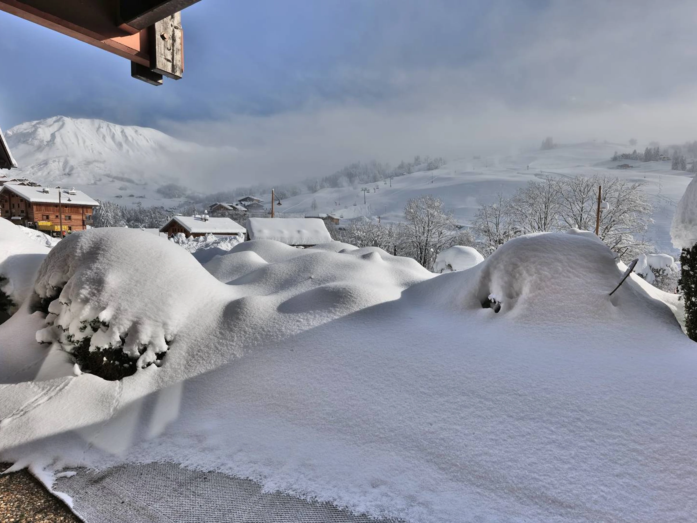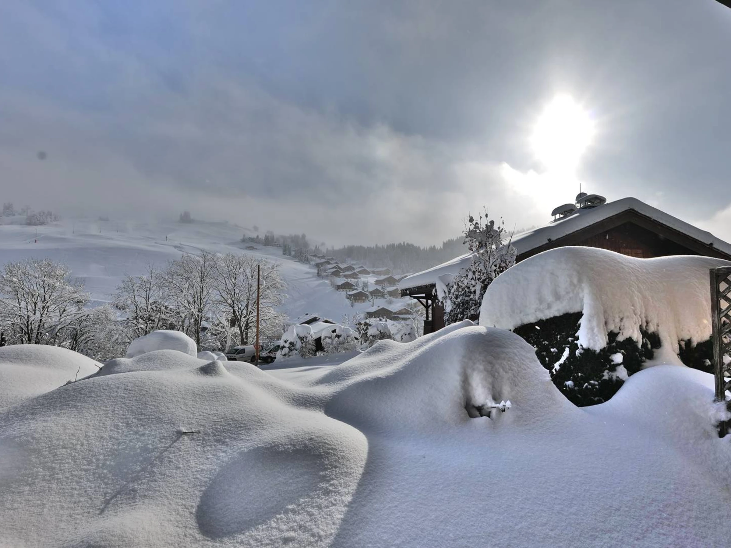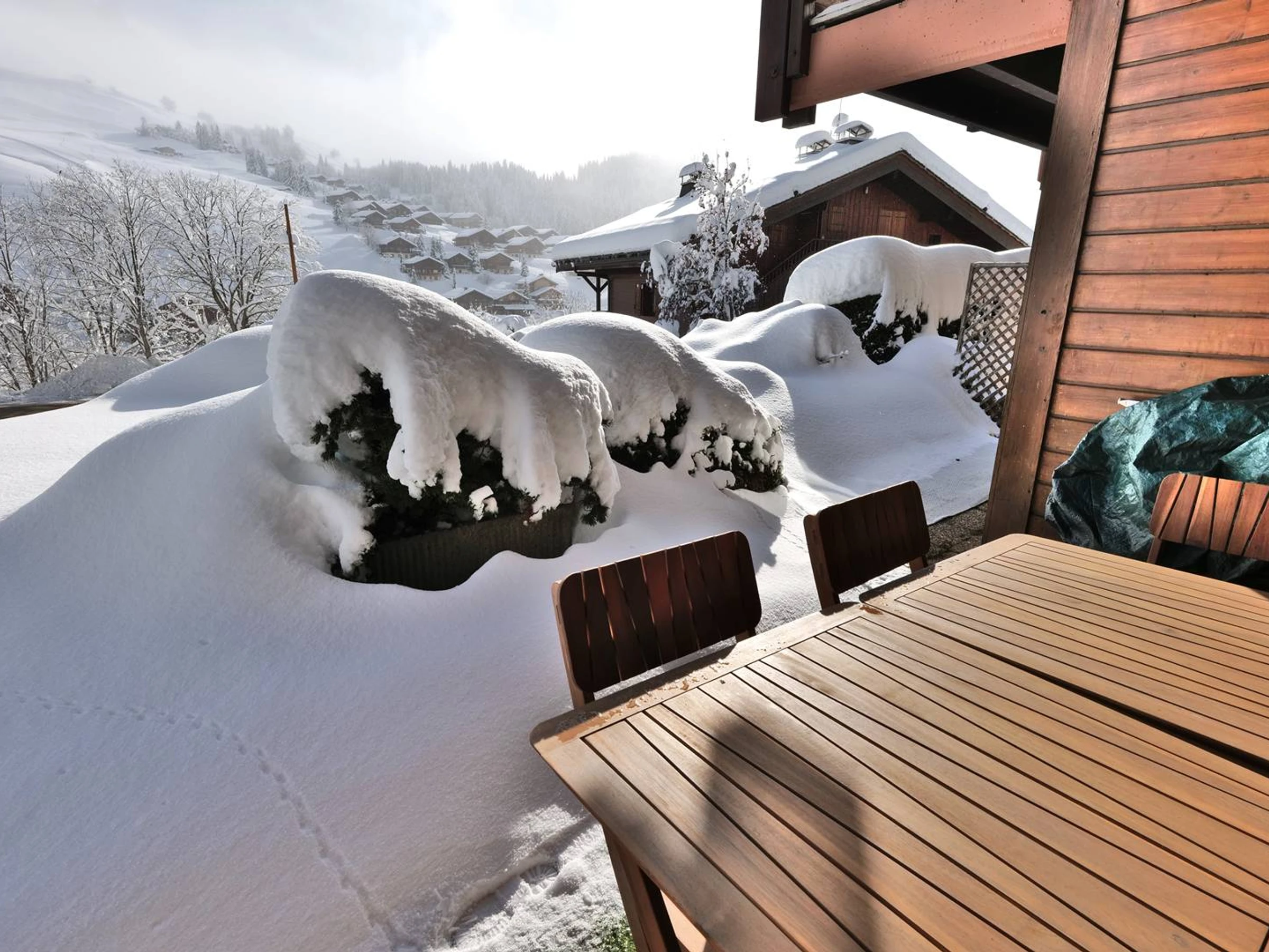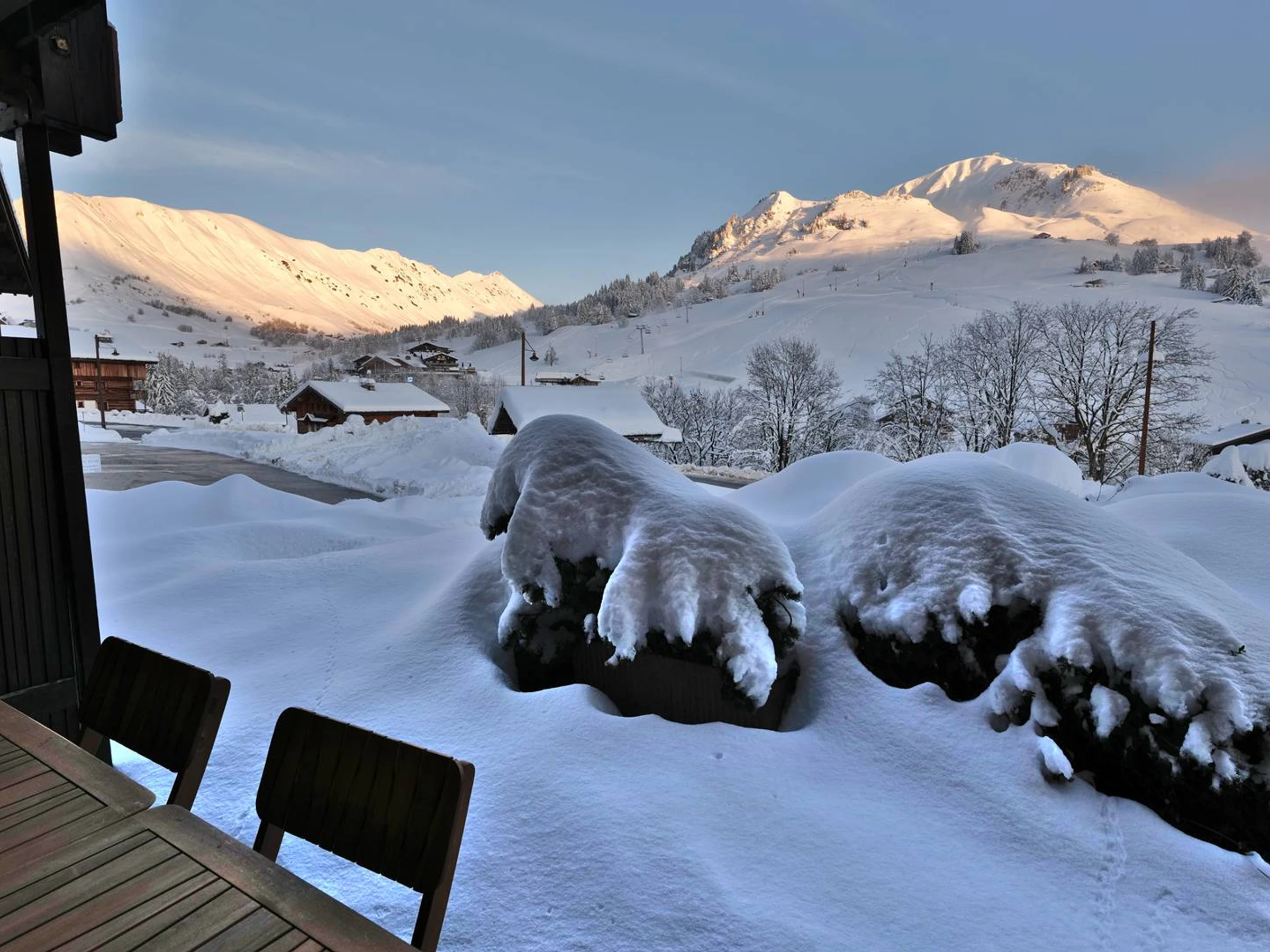 Eine große, nach Südosten ausgerichtete Terrasse mit atemberaubendem Blick auf den Mont Lachat und das Skigebiet.
