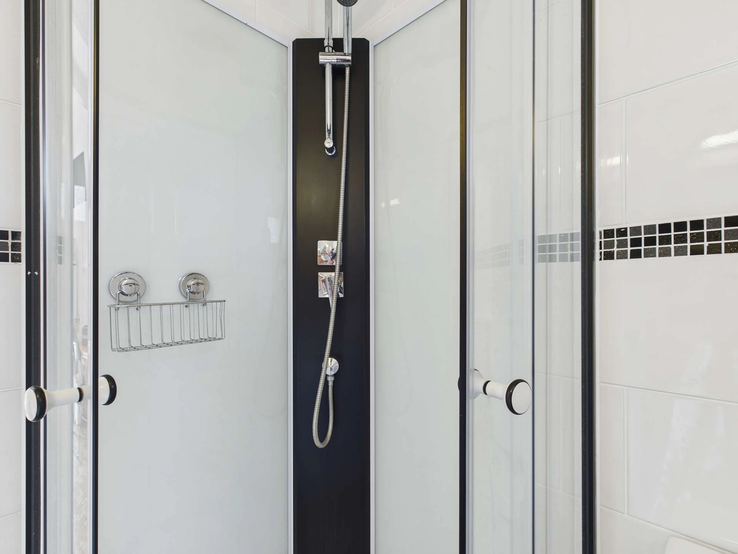 Es besteht aus: Eingangsbereich, Duschbad mit WC, offener Einbauküche, Schlafsofa „RAPIDO“ und Flachbildfernseher.
