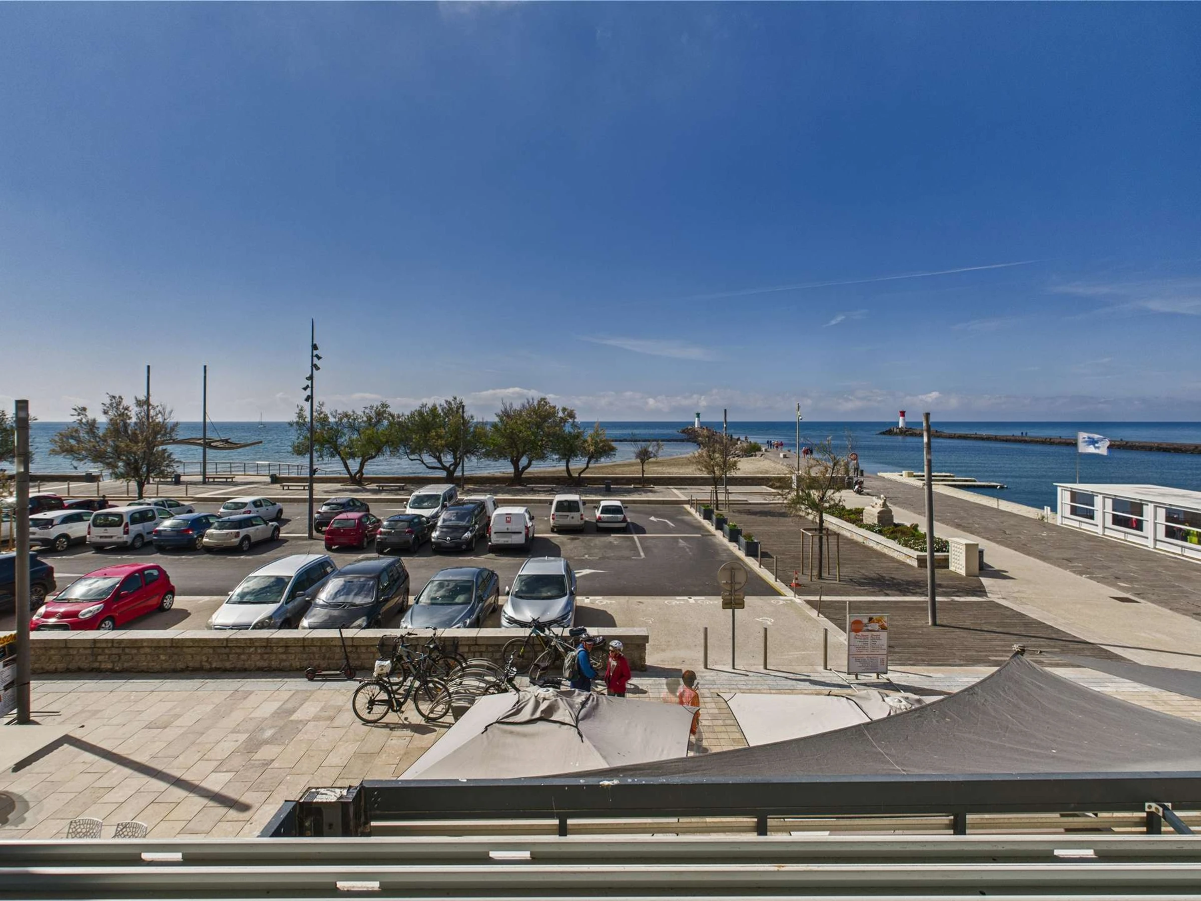 Panoramablick aufs Meer. Der Strand ist 40 Meter entfernt, die Geschäfte im Ortszentrum und der Markt 150 Meter.