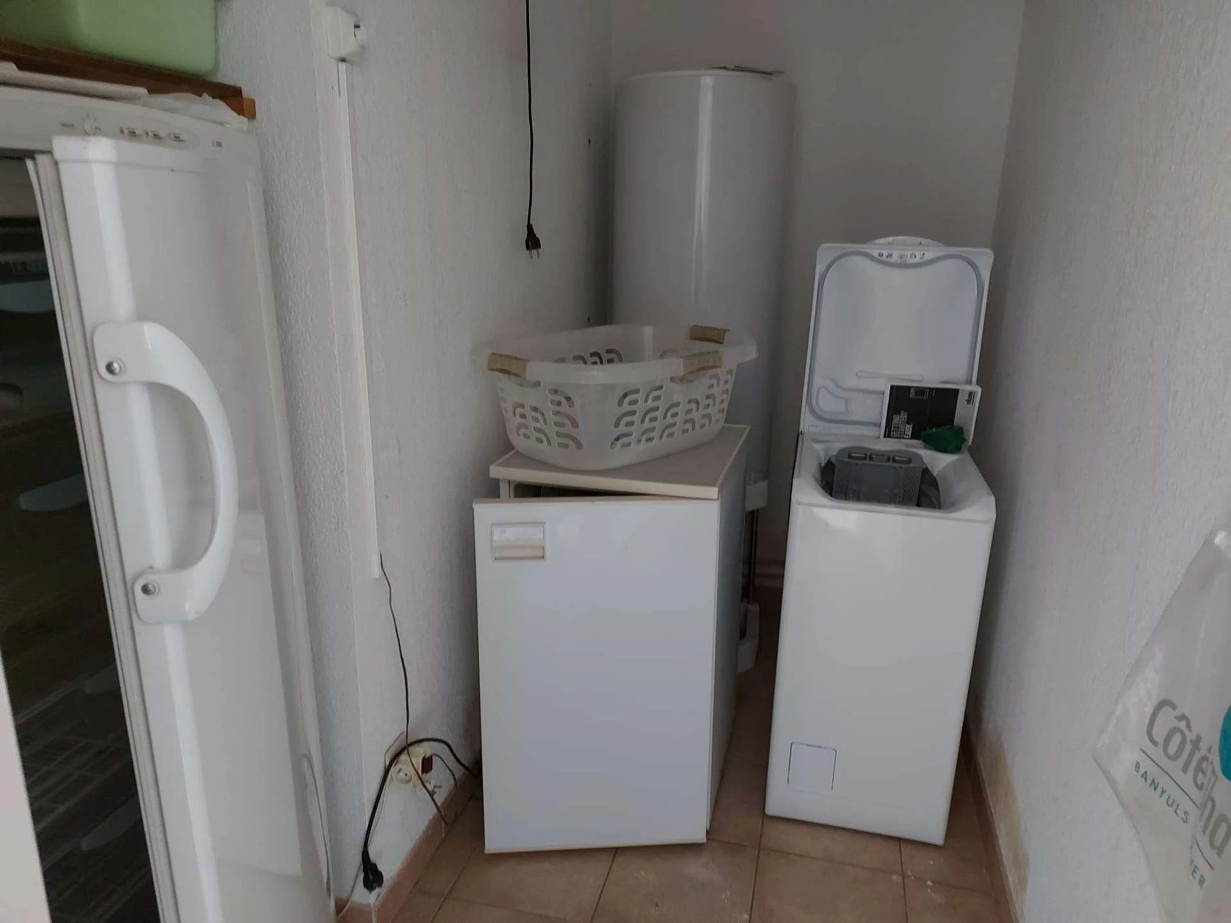 Eingang zum Wohnzimmer mit Sitzecke und Schlafcouch (2 Schlafplätze), Flachbildfernseher, elektrischen Jalousien und offener Einbauküche (Geschirrspüler, Backofen, Mikrowelle, Kühl-/Gefrierschrank, 3-Platten-Cerankochfeld, Dunstabzugshaube); Abstellraum mit kleinem Kühlschrank, kleinem Gefrierschrank und Waschmaschine; ein Schlafzimmer mit Doppelbett (140 cm) und Kleiderschrank; ein Schlafzimmer mit zwei Einzelbetten (90 cm) und Kleiderschrank; Duschbad; separates WC. Zwei Terrassen, je 20 m²!