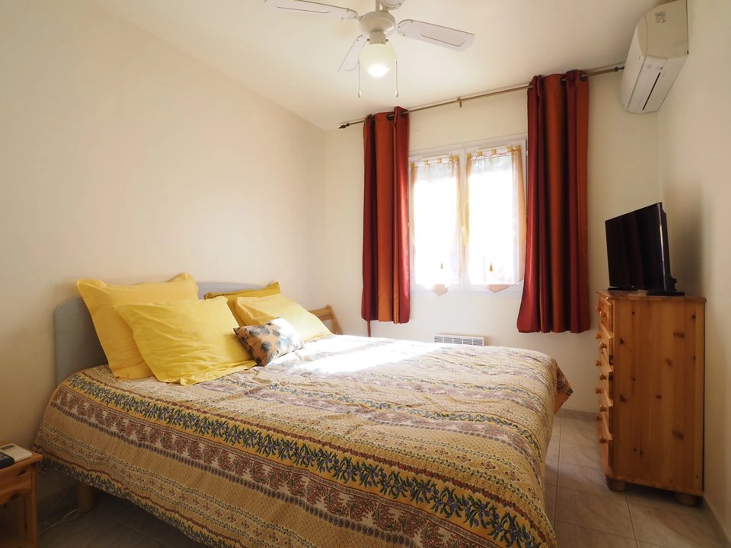 Drei Schlafzimmer mit Queensize-Betten (160 cm), Kleiderschränken, Klimaanlage und Fernseher.