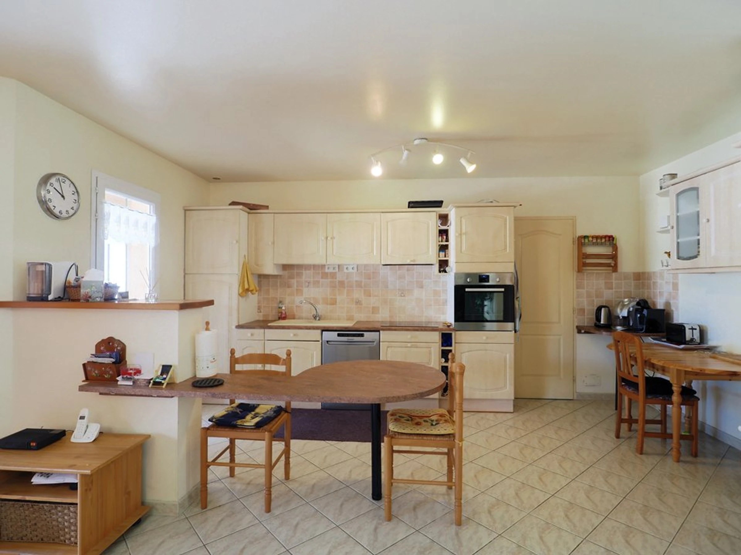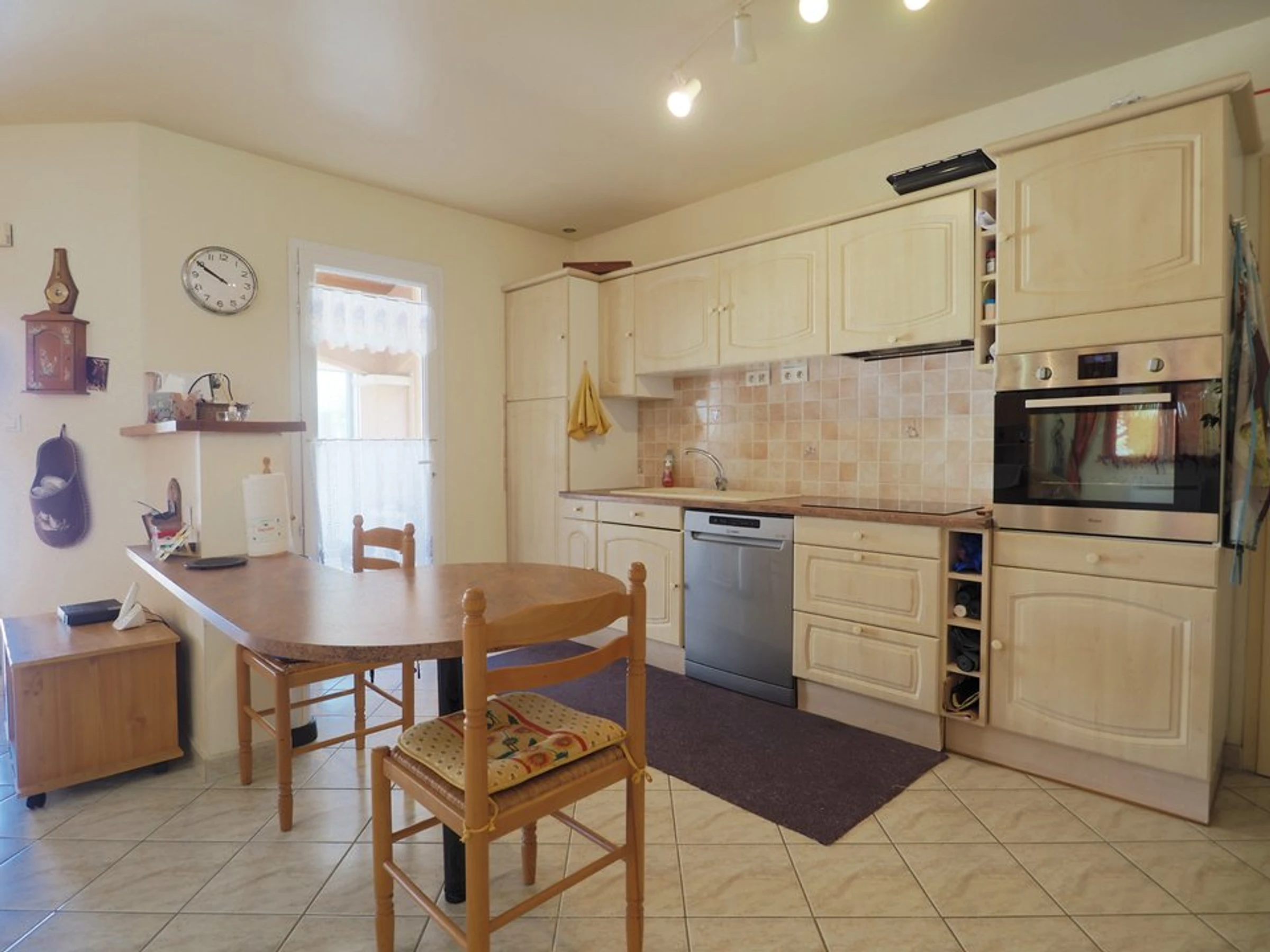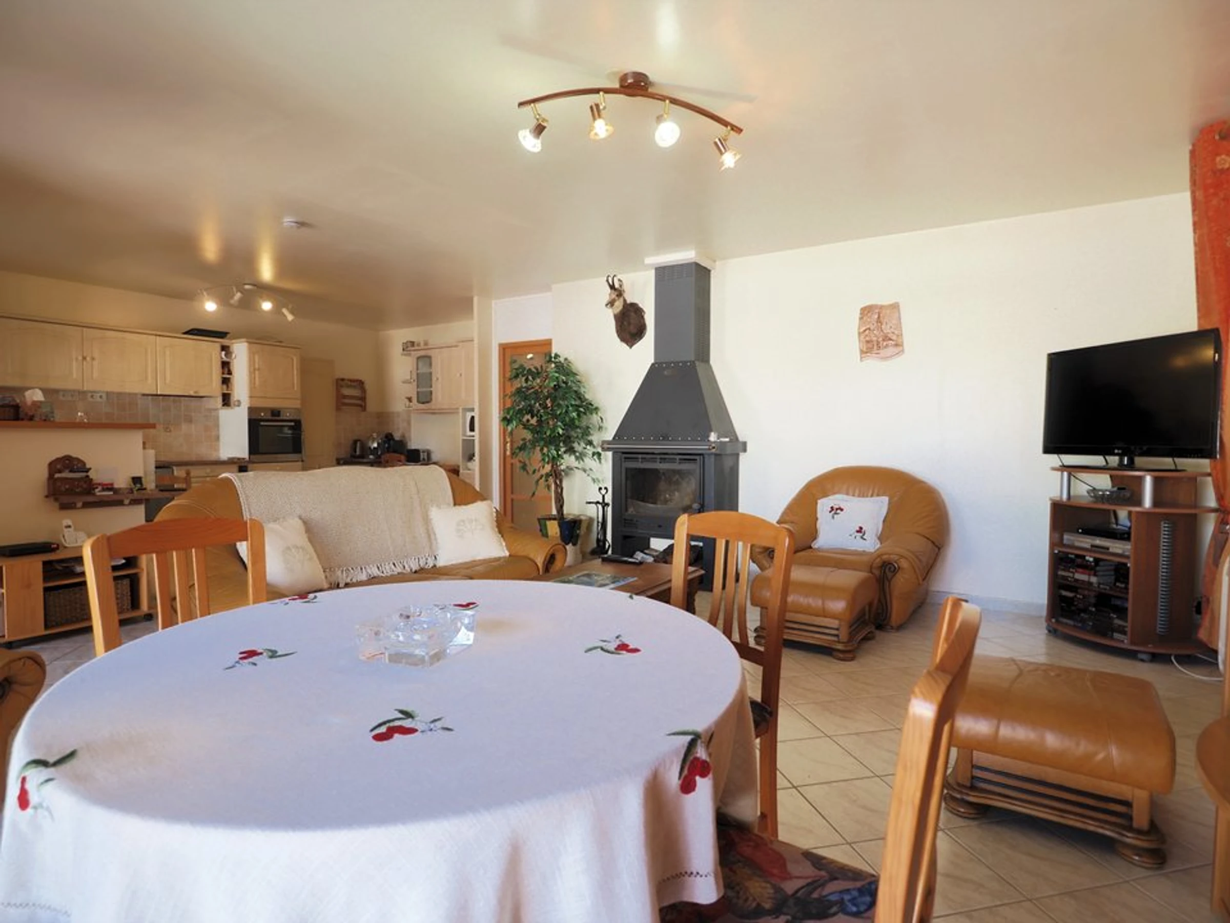 Sie erwartet ein großes Wohnzimmer mit Veranda, ideal für ein gemütliches Frühstück, und eine voll ausgestattete offene Küche mit Kühlschrank, Backofen, Mikrowelle, Geschirrspüler, Kaffeemaschine etc. Zwei Grillplatten stehen Ihnen ebenfalls zur Verfügung.