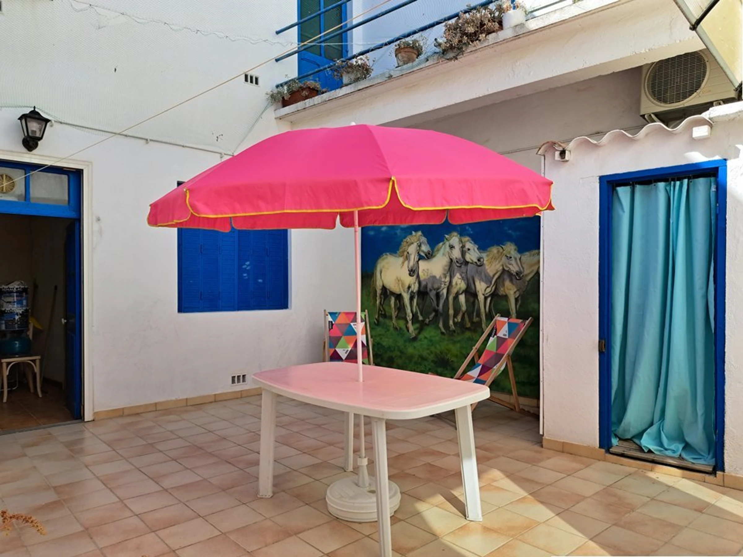 Entdecken Sie dieses klimatisierte Fischerhaus im Herzen von Le Grau-Roi. Sie betreten das Haus durch eine wunderschöne alte Tür. Rechts befindet sich ein Wohnzimmer, das in eine voll ausgestattete Küche mit einem großen Esstisch übergeht – perfekt für gesellige Stunden mit Freunden und Gästen.