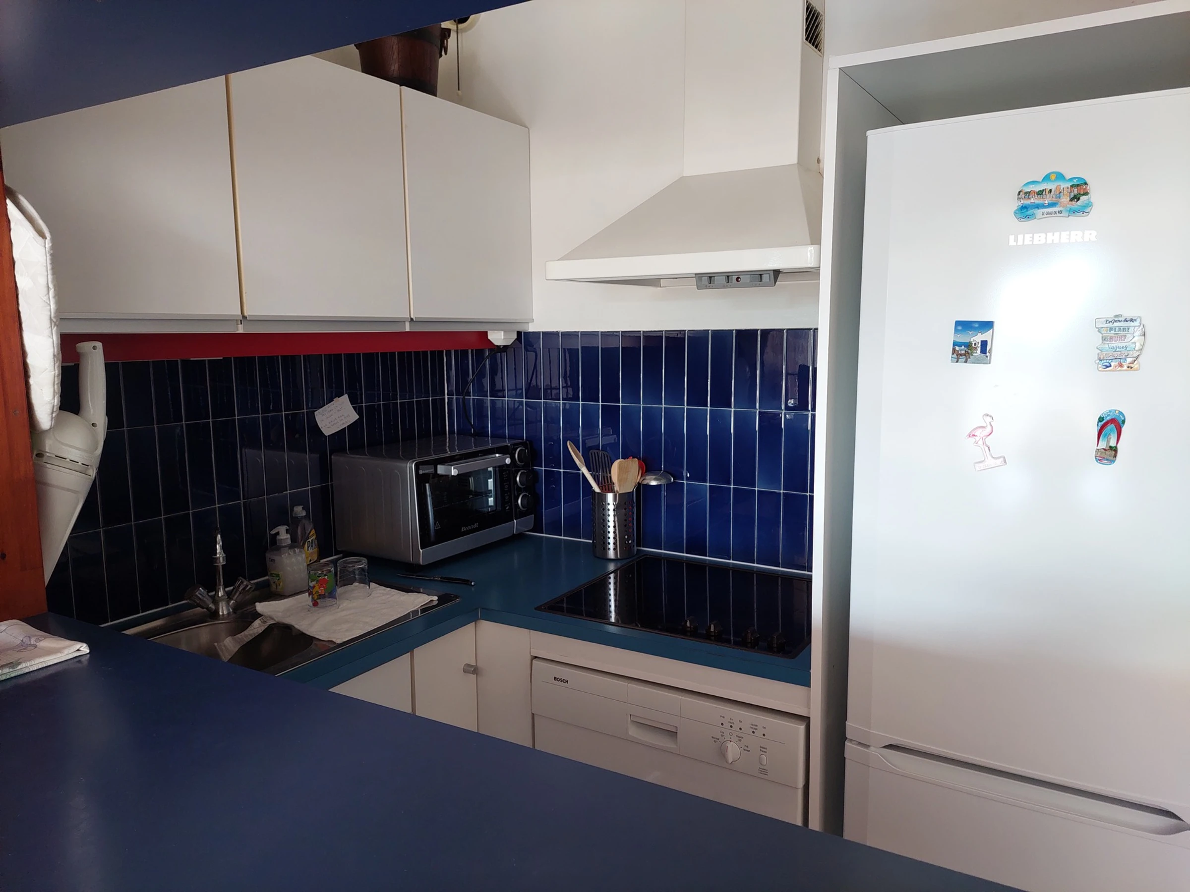 - Kochnische: großer Kühlschrank, Backofen, 3-Platten-Kochfeld, 2 Kaffeemaschinen (1 Senseo + 1 Filterkaffeemaschine), Geschirrspüler.