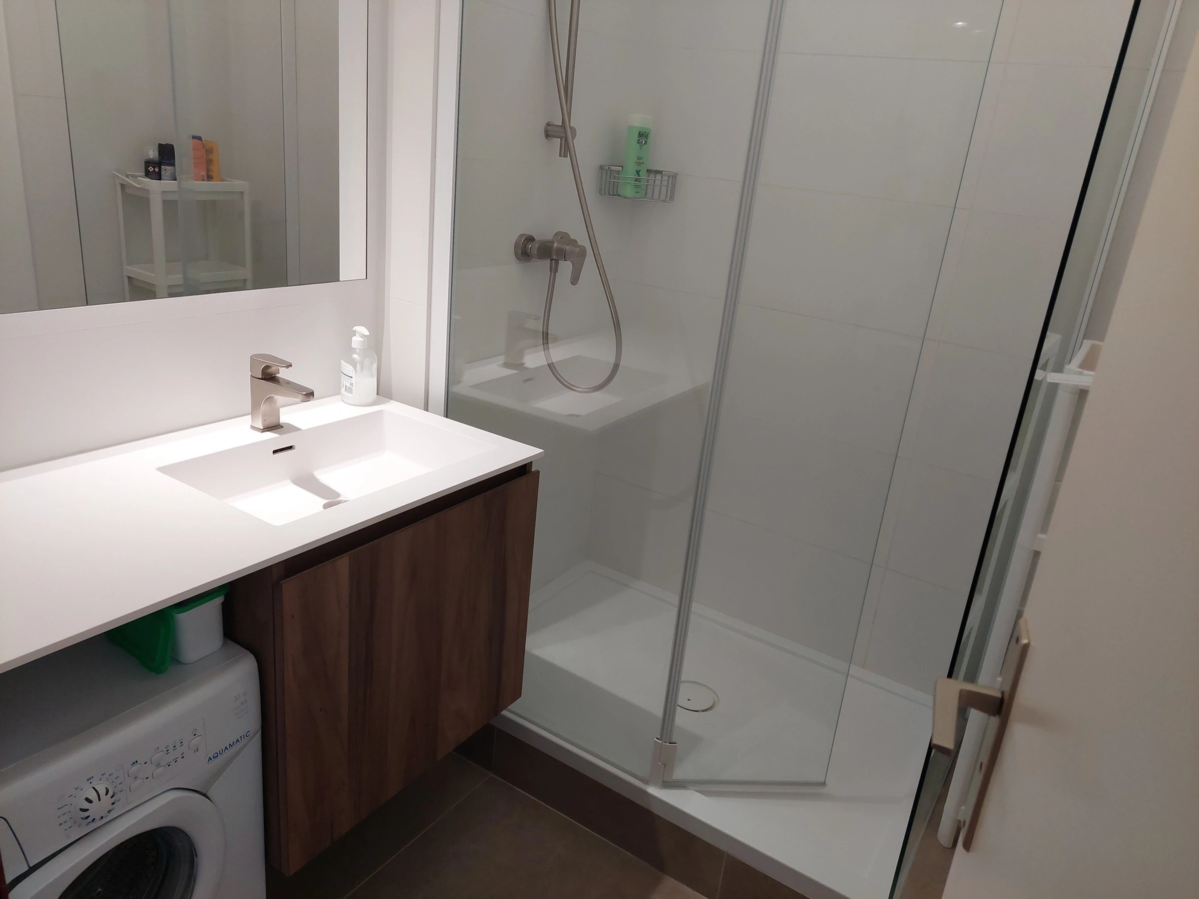 - Neu renoviertes Badezimmer: ebenerdige Dusche, Waschtisch, Waschmaschine.