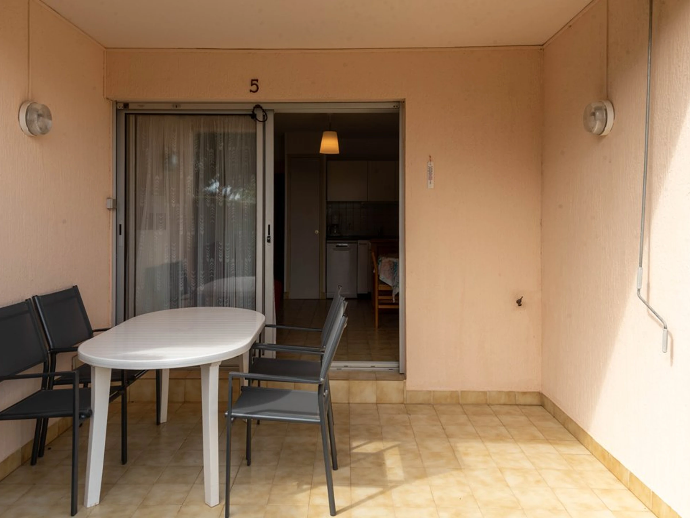 Der Eingang führt über einen kleinen 20 m² großen Garten und eine 6 m² große Loggia mit Sonnenschirm und Essbereich im Freien. Das Wohnzimmer ist mit einer voll ausgestatteten Küchenzeile (Kühlschrank mit Gefrierfach, Mikrowelle, Backofen, Waschmaschine, Geschirrspüler und Kochfeld) ausgestattet. Im Wohnzimmer befindet sich ein Schlafsofa. Außerdem gibt es ein separates WC, ein kleines Badezimmer, ein Schlafzimmer mit einem 140 x 190 cm großen Bett, Ventilatoren, einen Fernseher und einen nummerierten Parkplatz. Der Strand von Saint Clair ist 550 m entfernt. Optionale Extras, die vor Anreise gebucht werden müssen: Handtuchset (3 Handtücher): 16 €; Bettwäscheset: 16 €; Endreinigung: 70 €