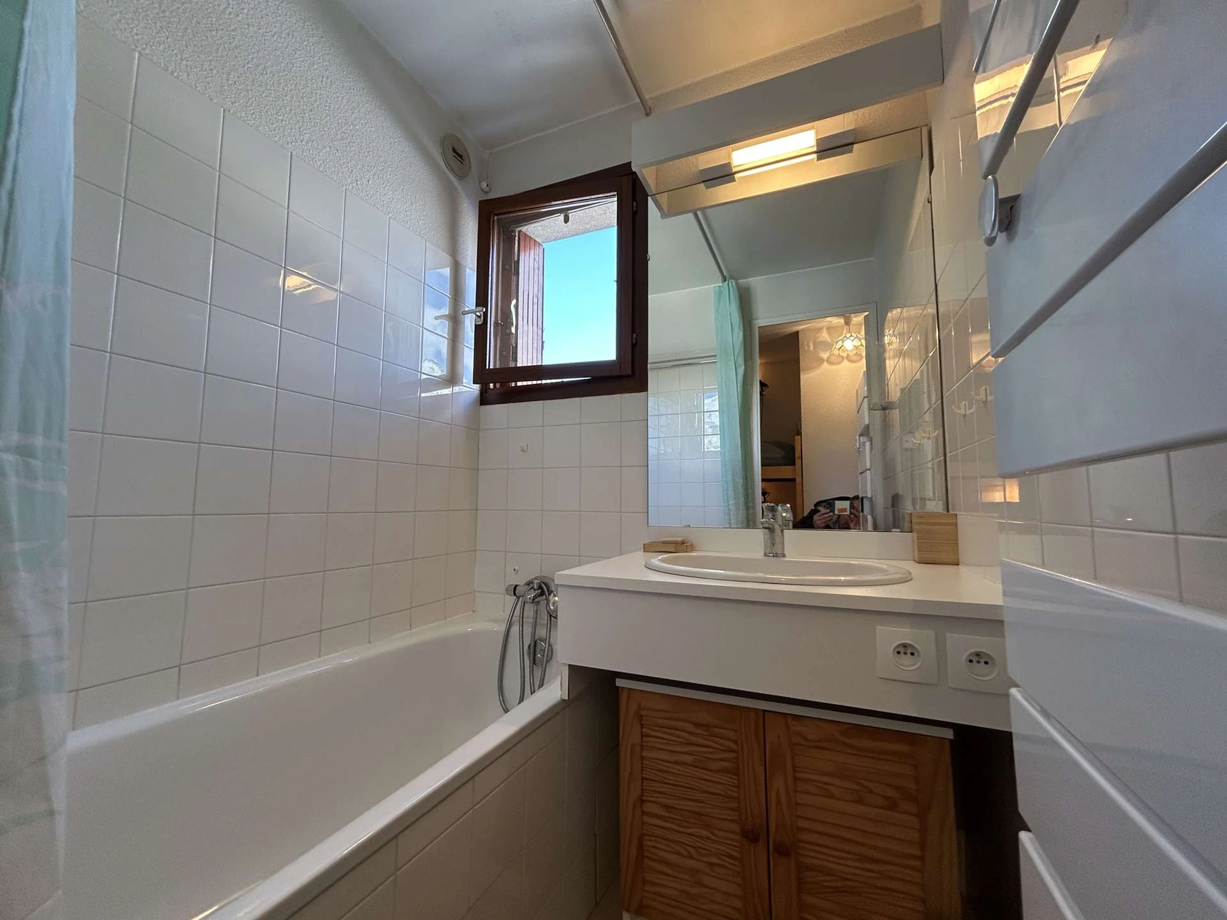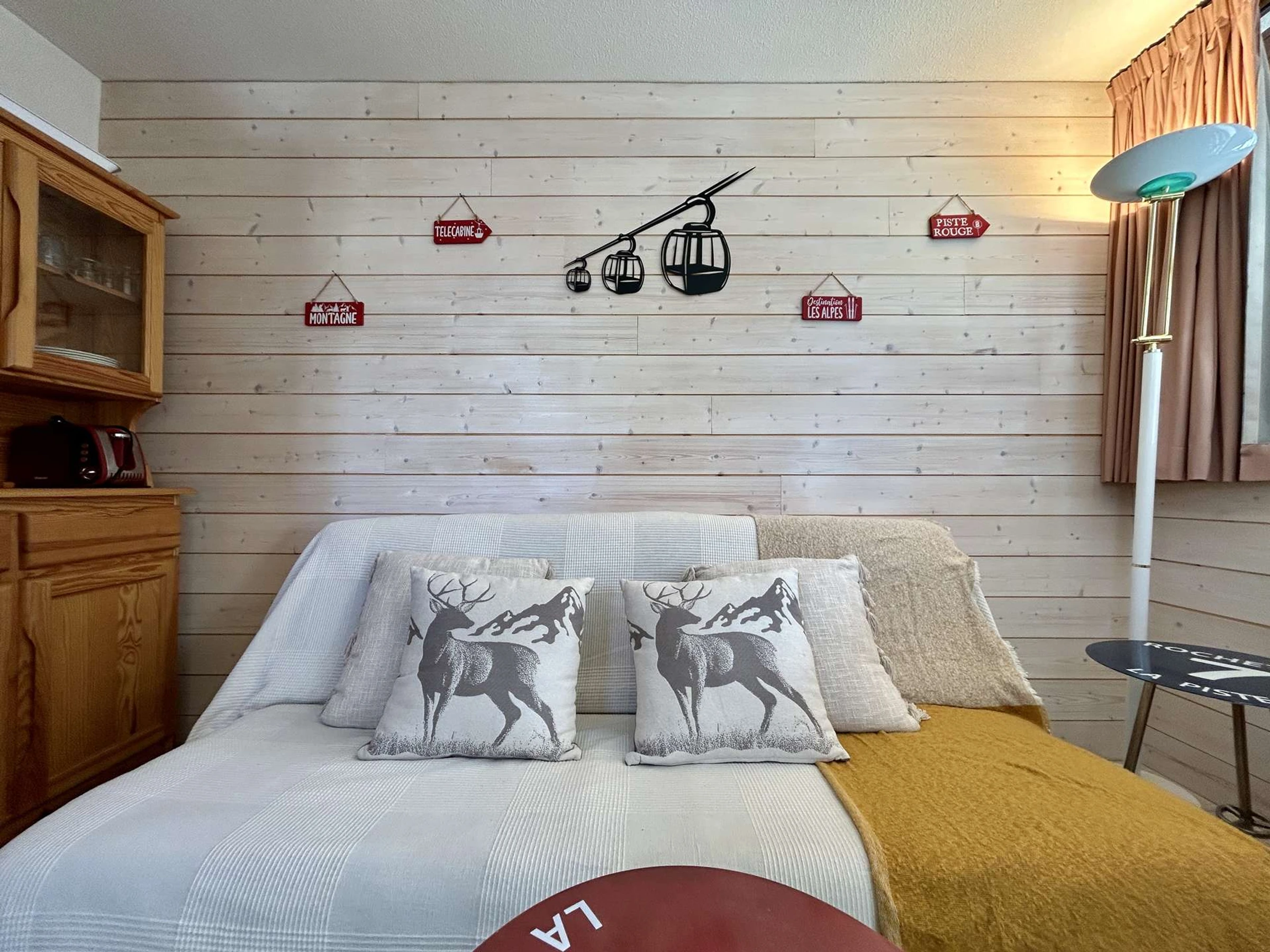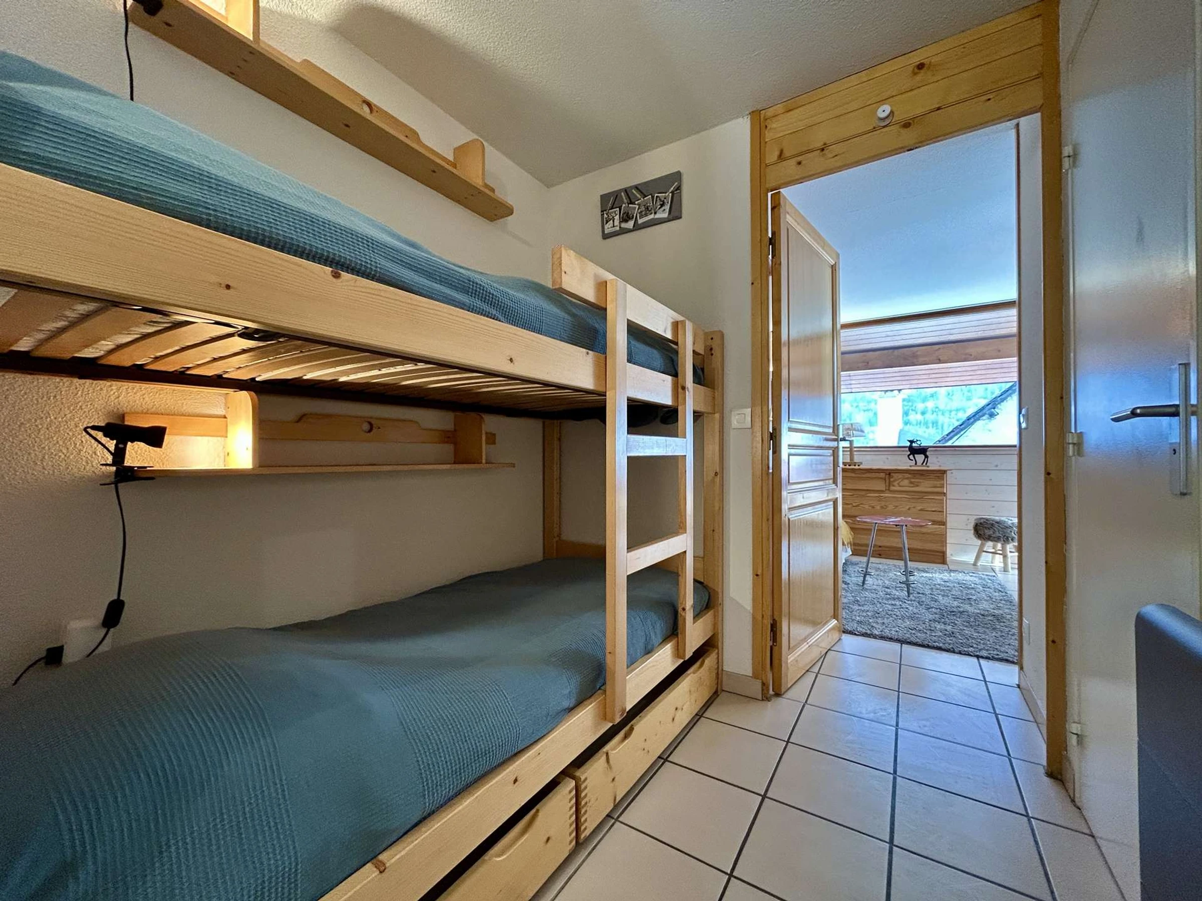 Dieses Apartment mit einem Schlafzimmer verfügt über ein Schlafzimmer mit Doppelbett, ein Wohnzimmer mit Sofa und einen Schlafbereich mit Etagenbetten. Eine voll ausgestattete Küchenzeile (Minibackofen, Elektroherd, Geschirrspüler), ein Badezimmer und ein separates WC sind ebenfalls vorhanden.
