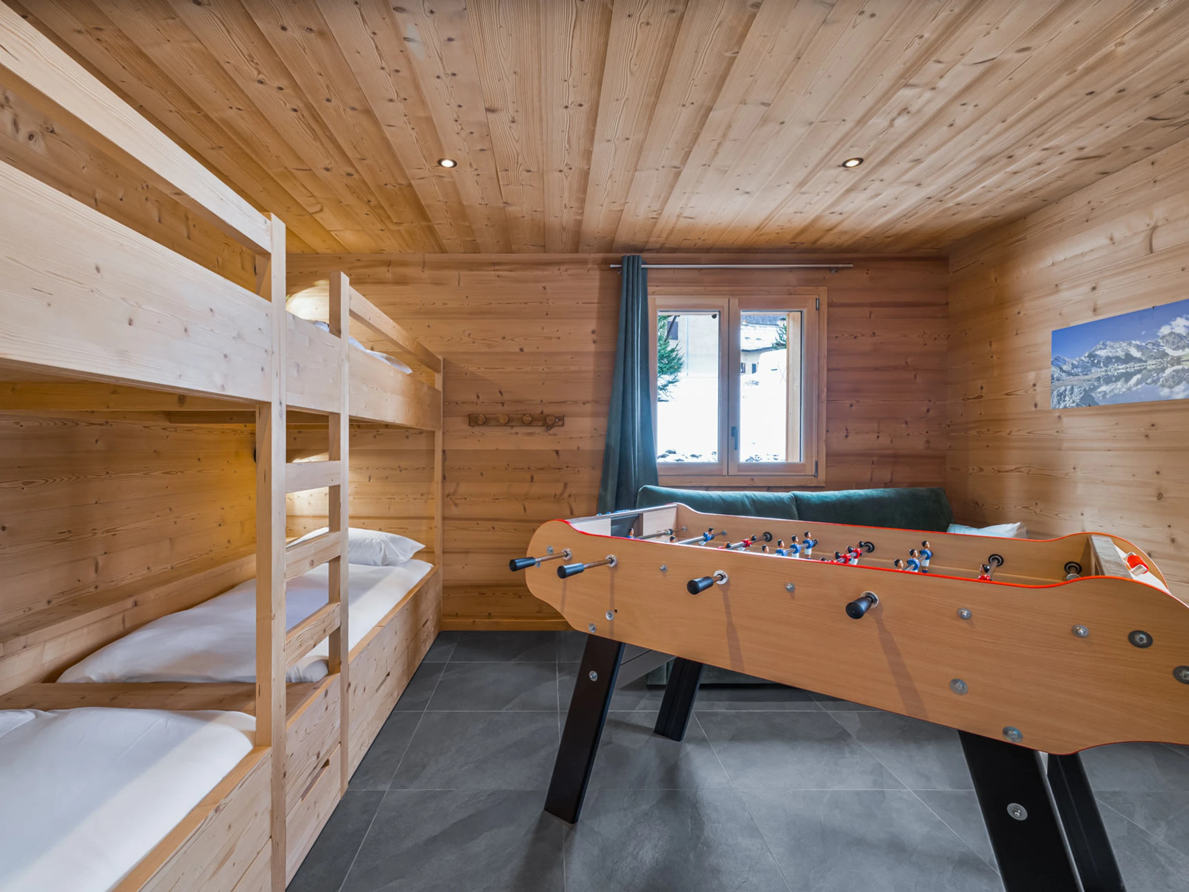 - Schlafzimmer mit 4 Einzelbetten (Etagenbetten), auch als Spielzimmer (Tischfußball, Fernseher, Sofa) nutzbar