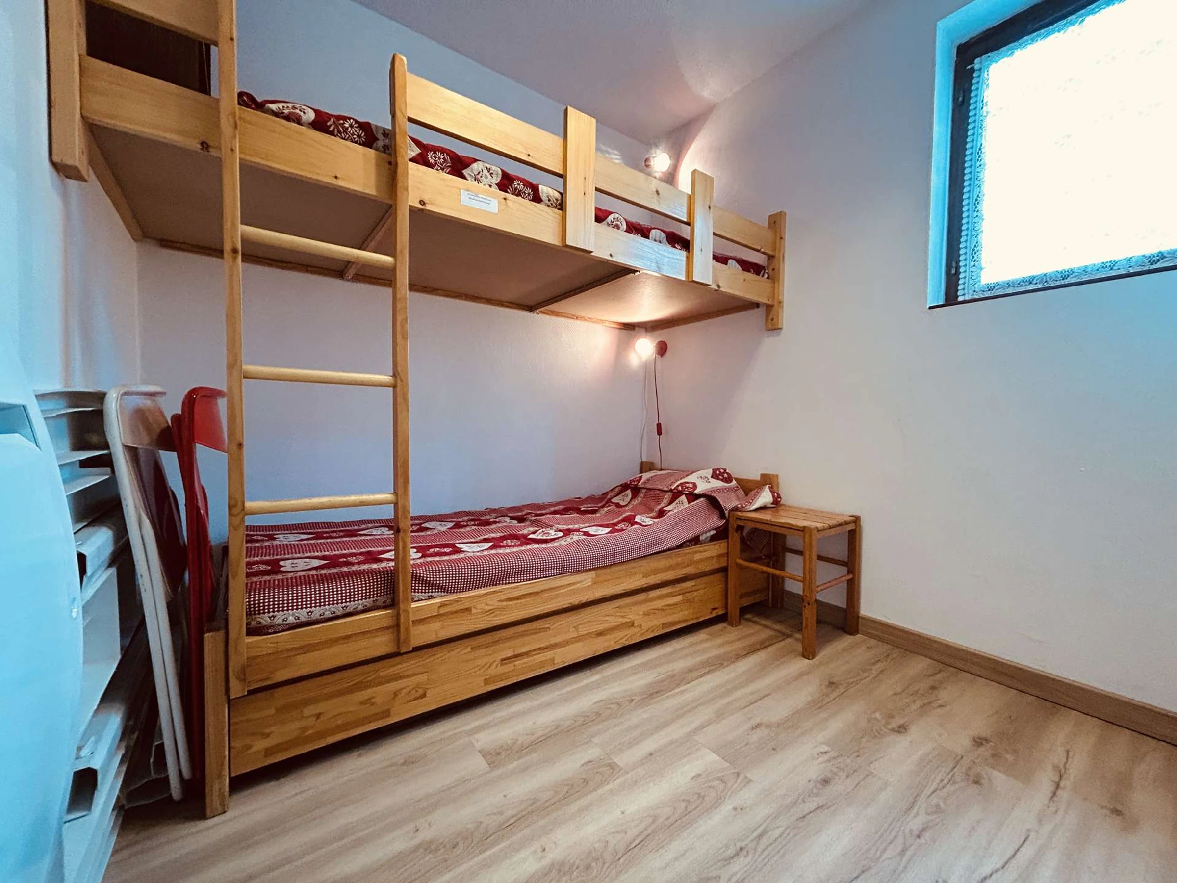 Diese Ferienwohnung in den Bergen verfügt über ein Wohnzimmer mit Zugang zu einer Terrasse und einem kleinen Garten, ein Schlafsofa für 2 Personen und einen Fernseher. Der Küchenbereich verfügt über einen Geschirrspüler, einen Kombi-Backofen und Elektrokochplatten. Es gibt ein Schlafzimmer mit Etagenbett und Fenster sowie einen Schlafbereich im Flur mit Etagenbett. Badezimmer und Toilette sind getrennt.