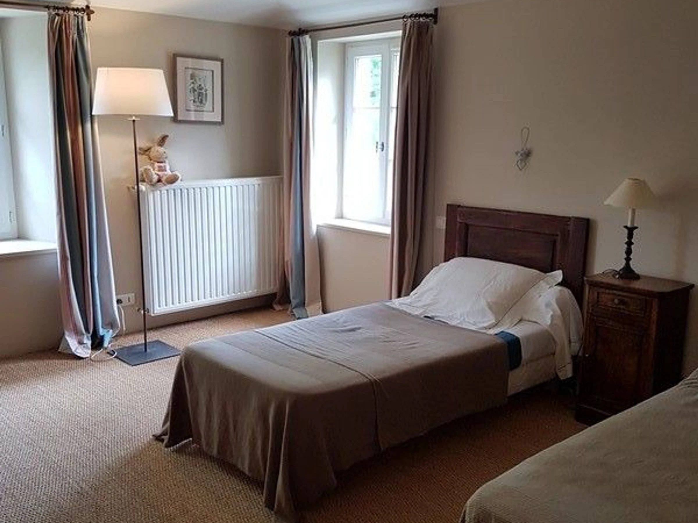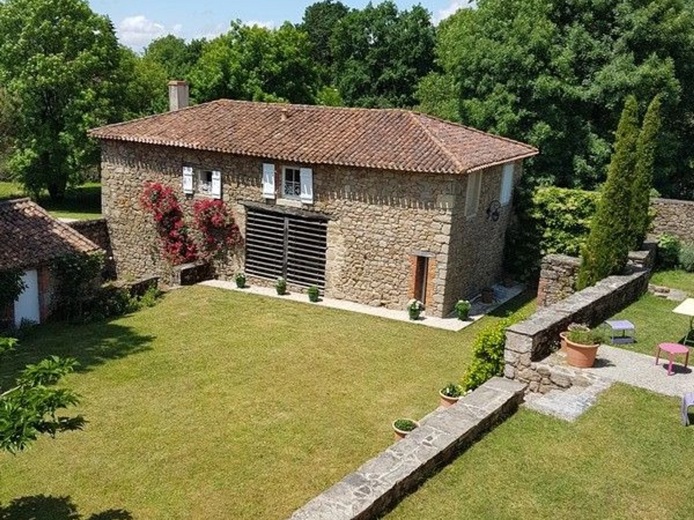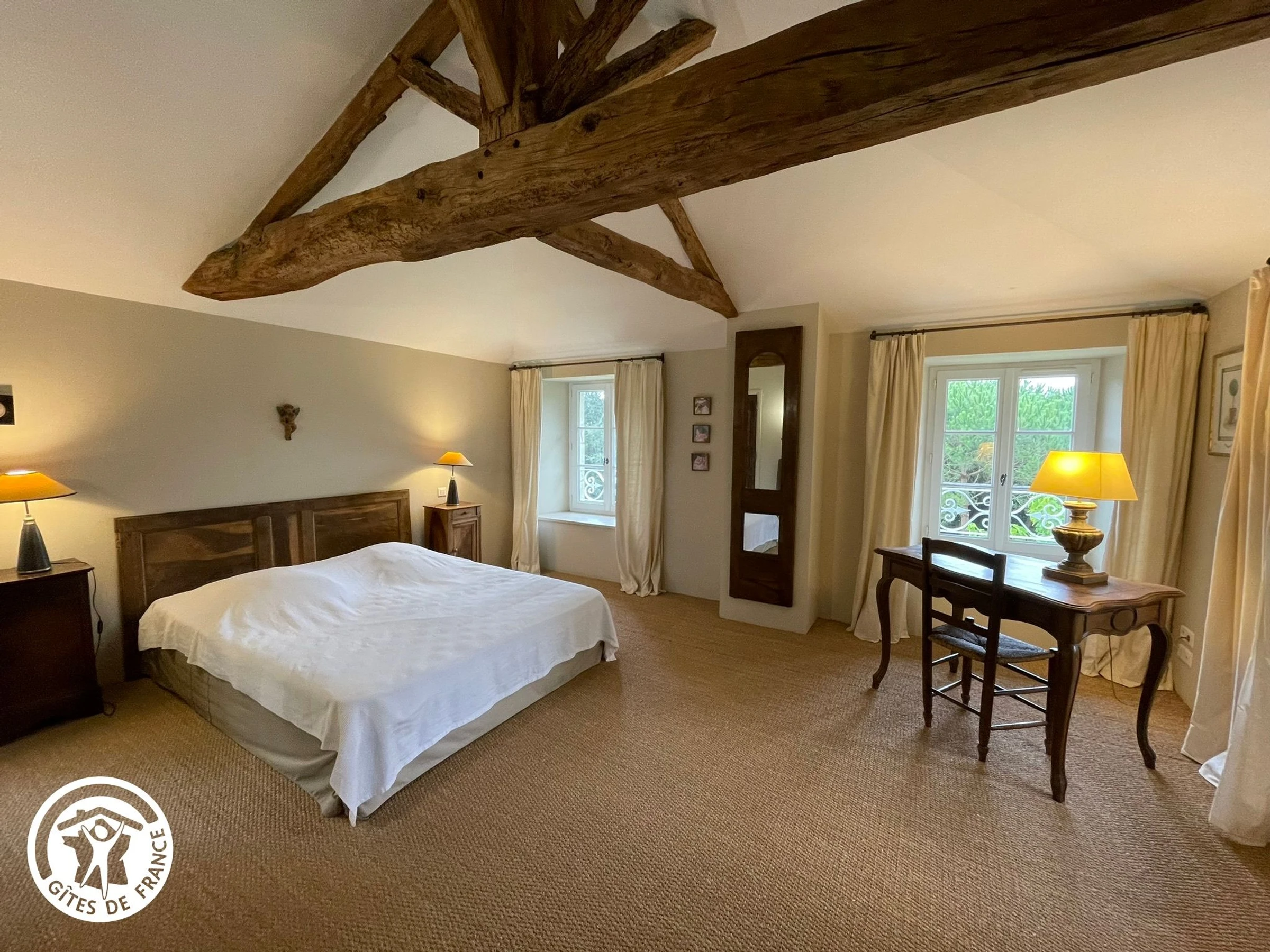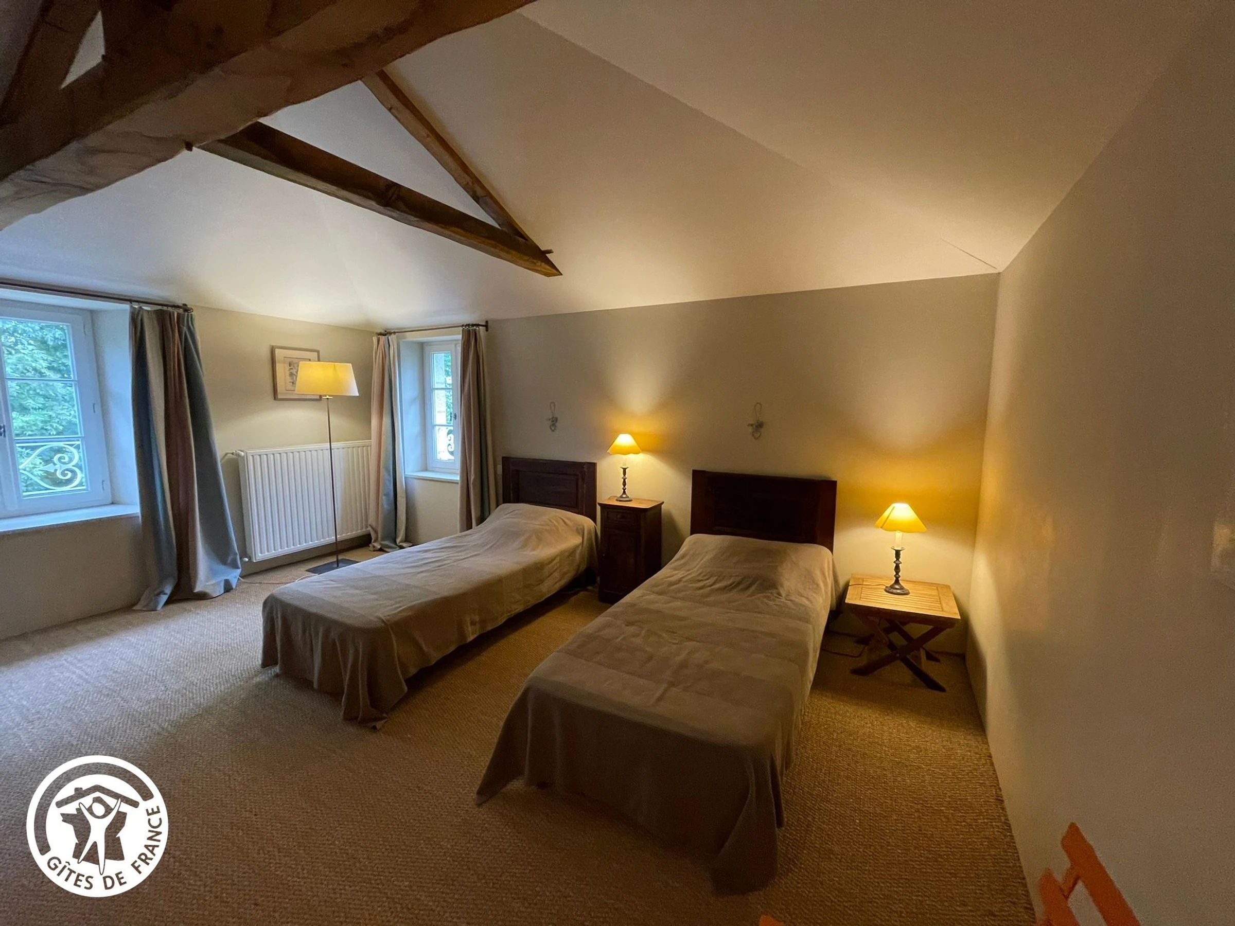 Renoviertes ehemaliges Nebengebäude im Dorf, in der Nähe des Hauses der Eigentümer. Erdgeschoss: Wohnzimmer/Aufenthaltsraum (dekorativer Kamin)/Küche, WC (Waschbecken). Obergeschoss: Schlafzimmer 1 (2 Einzelbetten), WC, Badezimmer, Schlafzimmer 2 (1 Queensize-Bett, Duschraum). WLAN-Zugang. Teilweise abgeschlossenes Grundstück von 5.000 m² mit einem privaten Bereich von 2.000 m², der von einem kleinen Bach begrenzt wird, mit Kiesterrasse (Gartenmöbel, Plancha). Separater Eingang und Garten. Gemeinsamer Swimmingpool (12 x 3,3 m) mit dem Eigentümer, geöffnet von Mitte Juni bis Mitte September. Yon-Tal 2 km entfernt. Optional: Endreinigung: 65 €/Aufenthalt; Einzelbett: 15 €/Aufenthalt; Doppelbett: 20 €/Aufenthalt. Handtuchmiete: 12 €/Person/Aufenthalt.