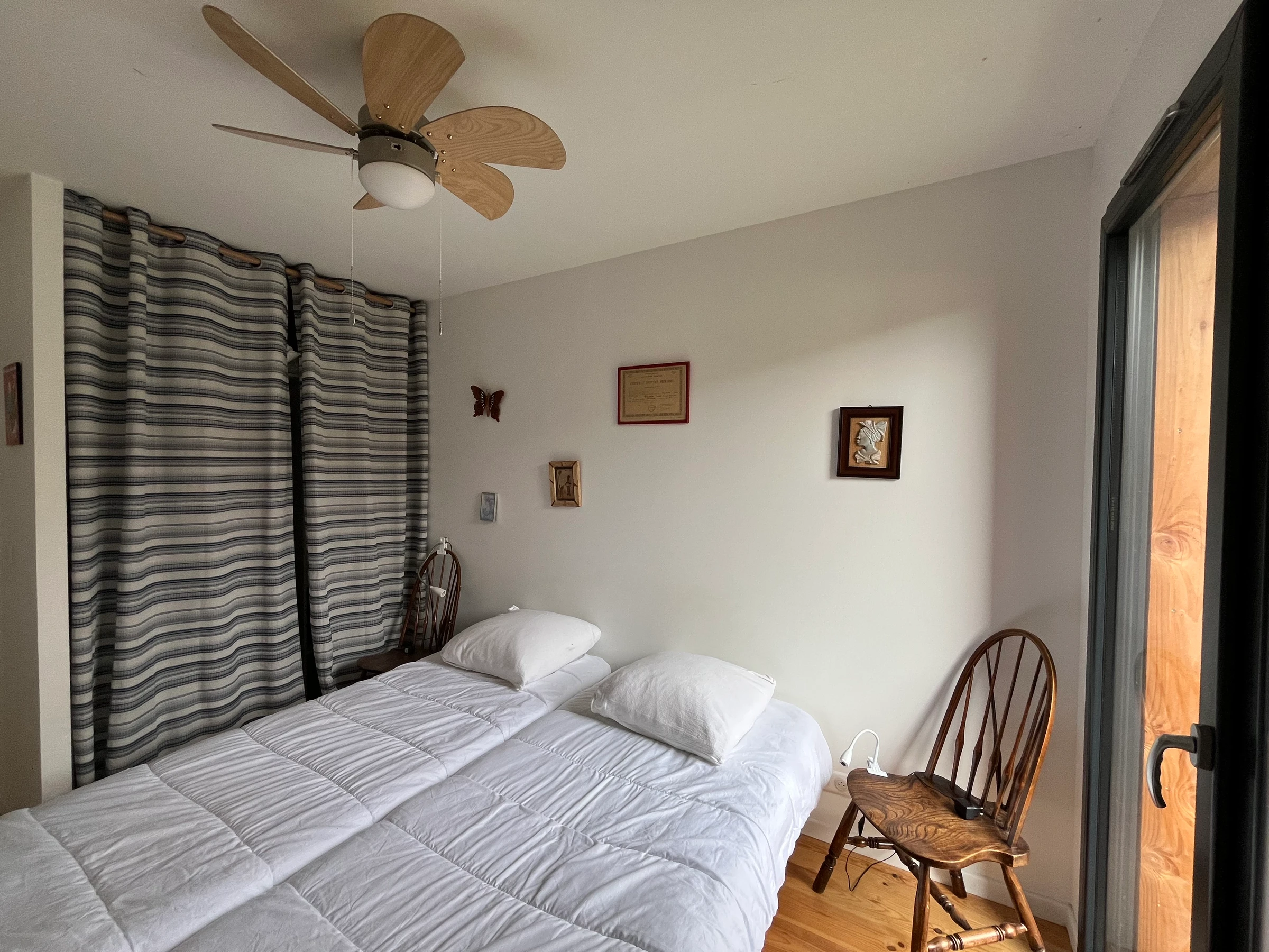 Zum Schlafen bietet das Haus vier Schlafzimmer für bis zu 8 Personen. Drei Schlafzimmer befinden sich im Erdgeschoss. Das erste verfügt über zwei Einzelbetten (80 cm) und ein eigenes Duschbad. Das zweite Schlafzimmer ist ebenfalls mit zwei Einzelbetten (80 cm) ausgestattet. Das dritte Schlafzimmer verfügt über zwei Einzelbetten (80 cm). Ein letztes Schlafzimmer befindet sich auf einer Galerieebene (ohne Rollläden, nur mit Verdunkelungsvorhängen) und bietet mit zwei 90 cm breiten Betten zusätzlichen Platz.