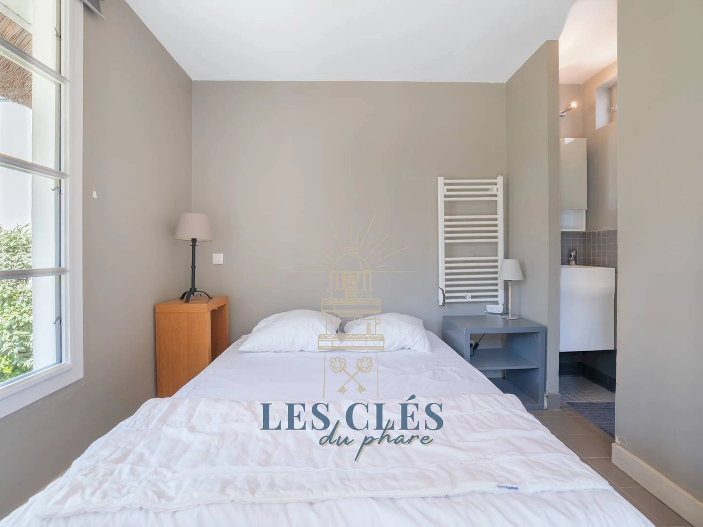 1 Schlafzimmer mit Doppelbett (140 x 200 cm) mit Kleiderschrank und Zugang zur Terrasse.