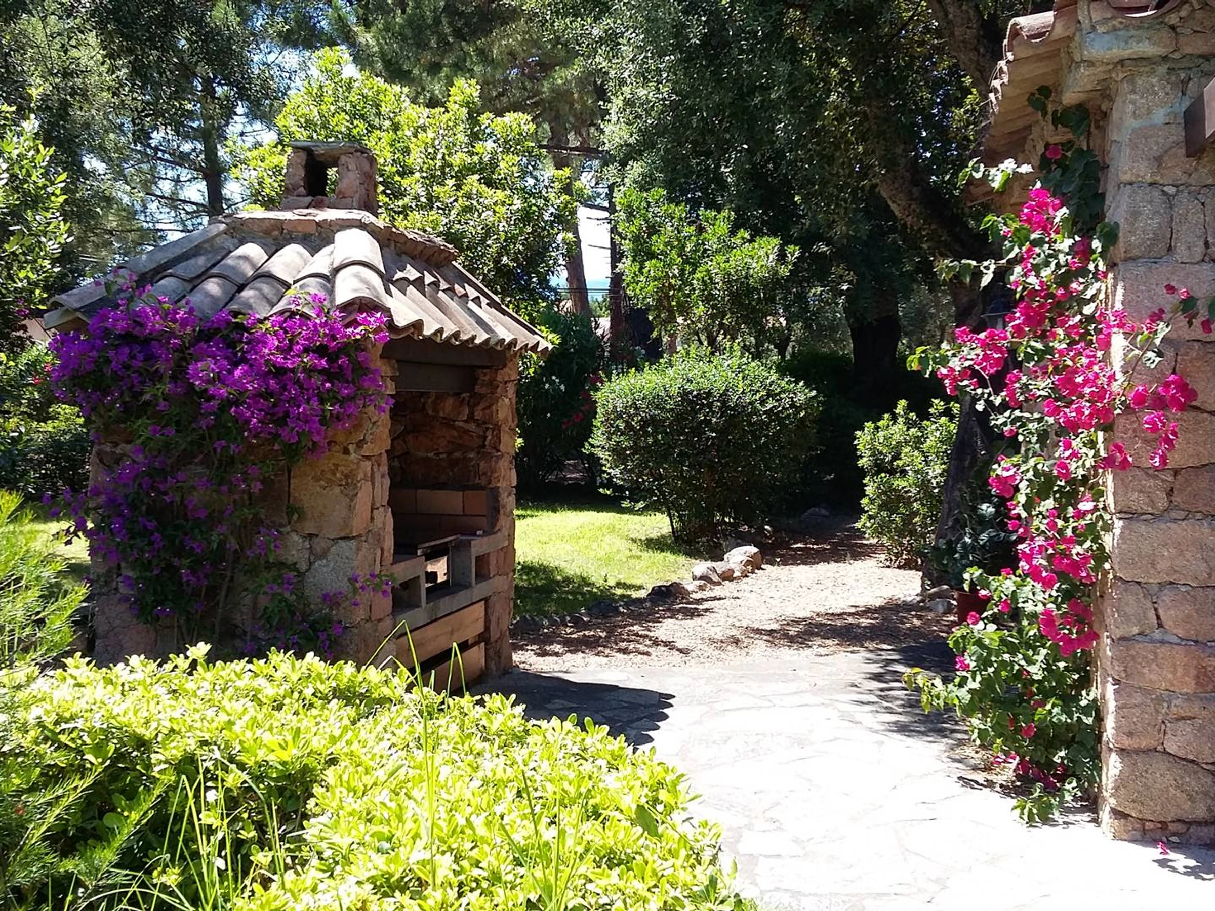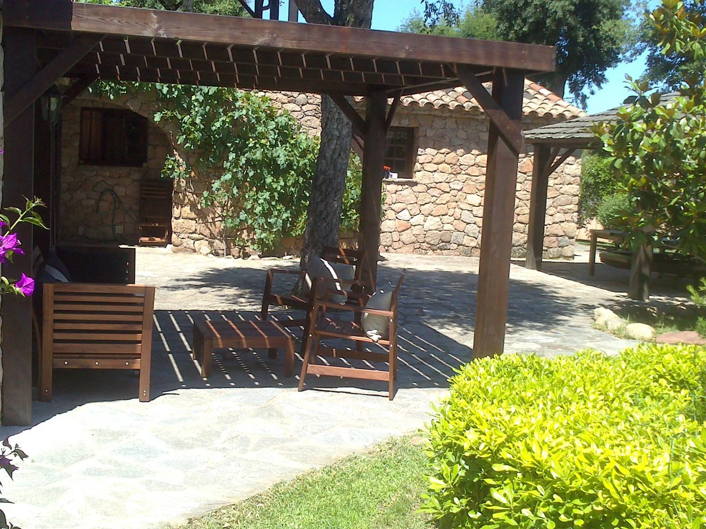 Überdachte, möblierte Terrasse, Gartenmöbel, Sitzbänke,Plancha.