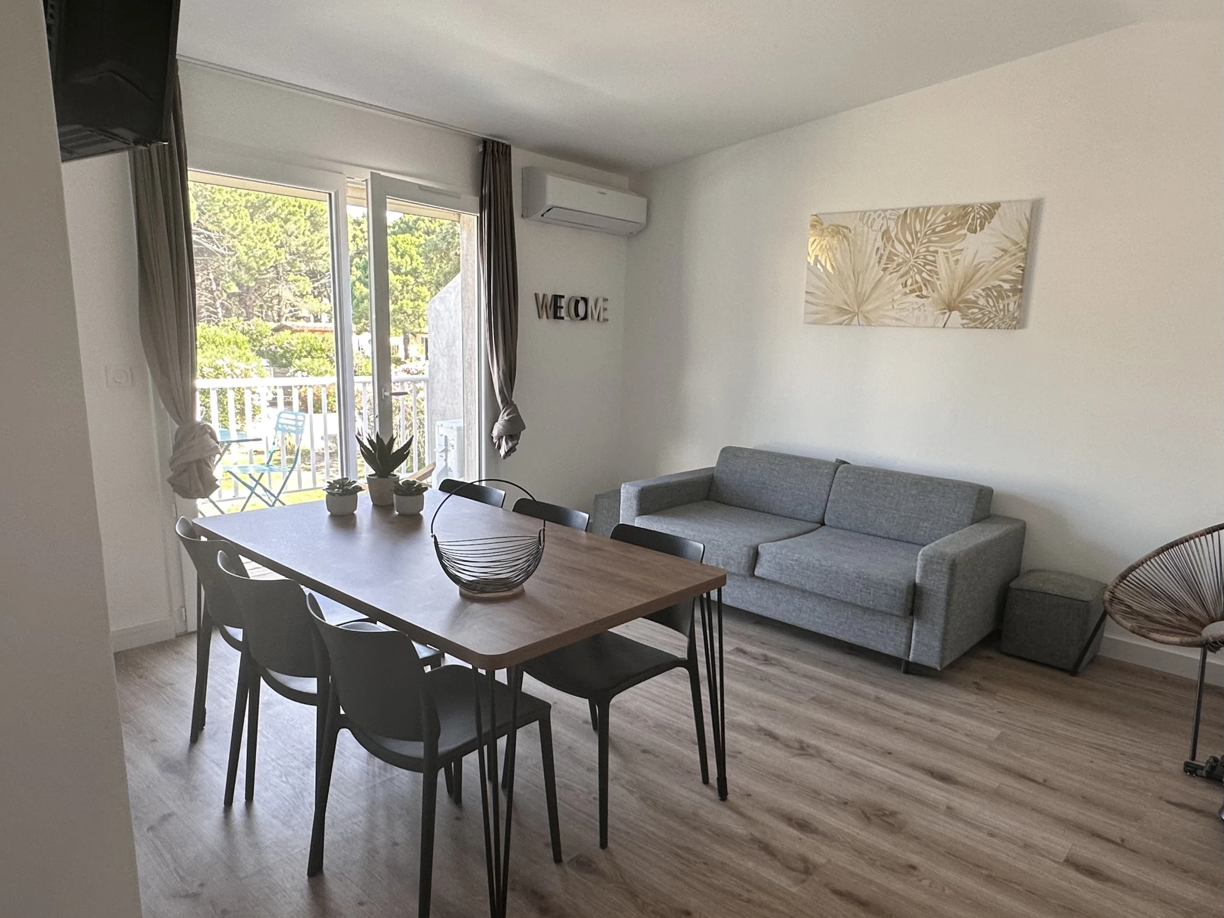 Die Unterkunft verfügt über gartenmöbel, 16 m² terrasse, haartrockner, elektroheizung, klimaanlage, swimming-pool gemeinschaftlicher swimming-pool, parkplatz im freien in in grundstücksnähe, 1 Fernseher.