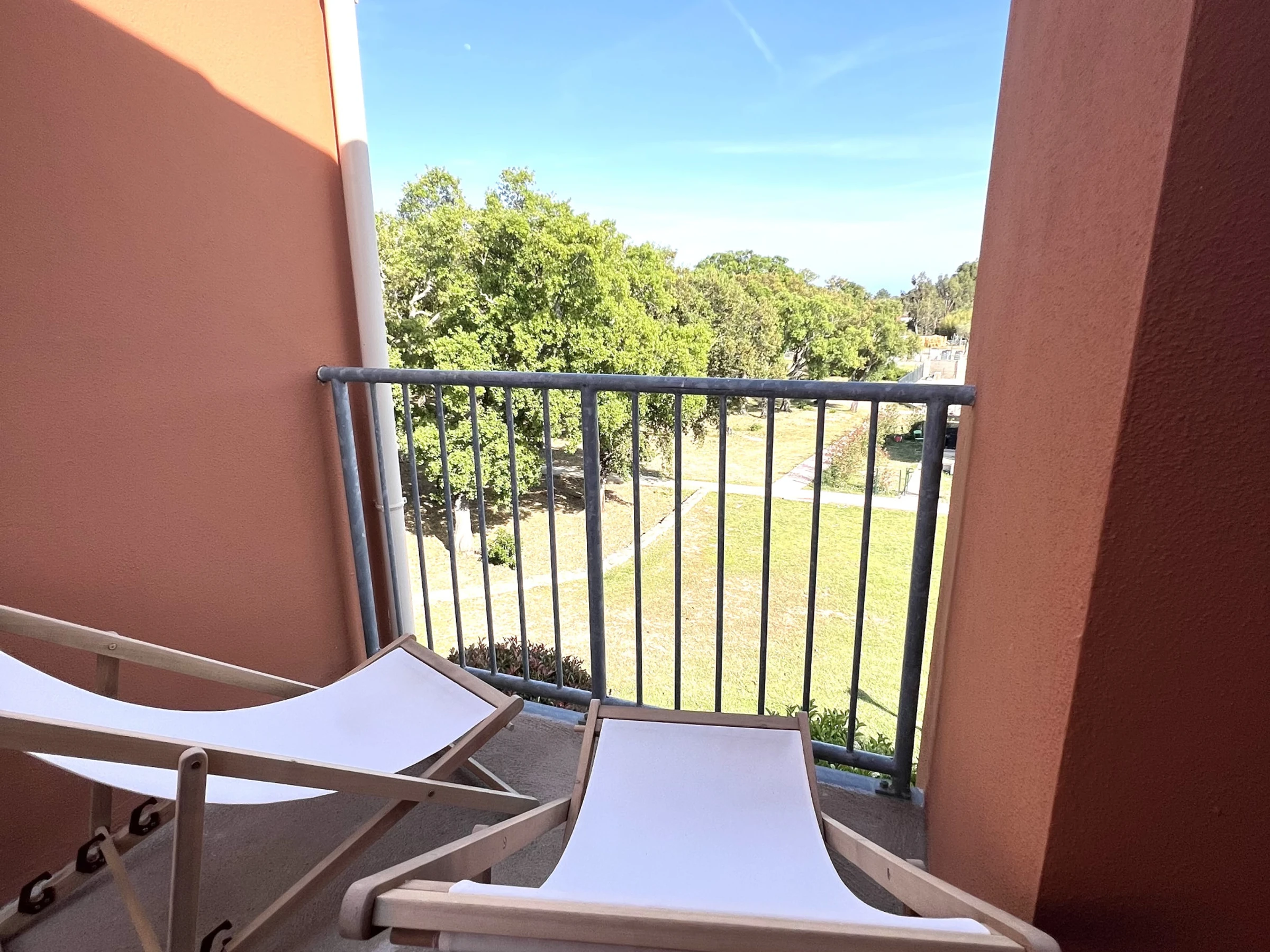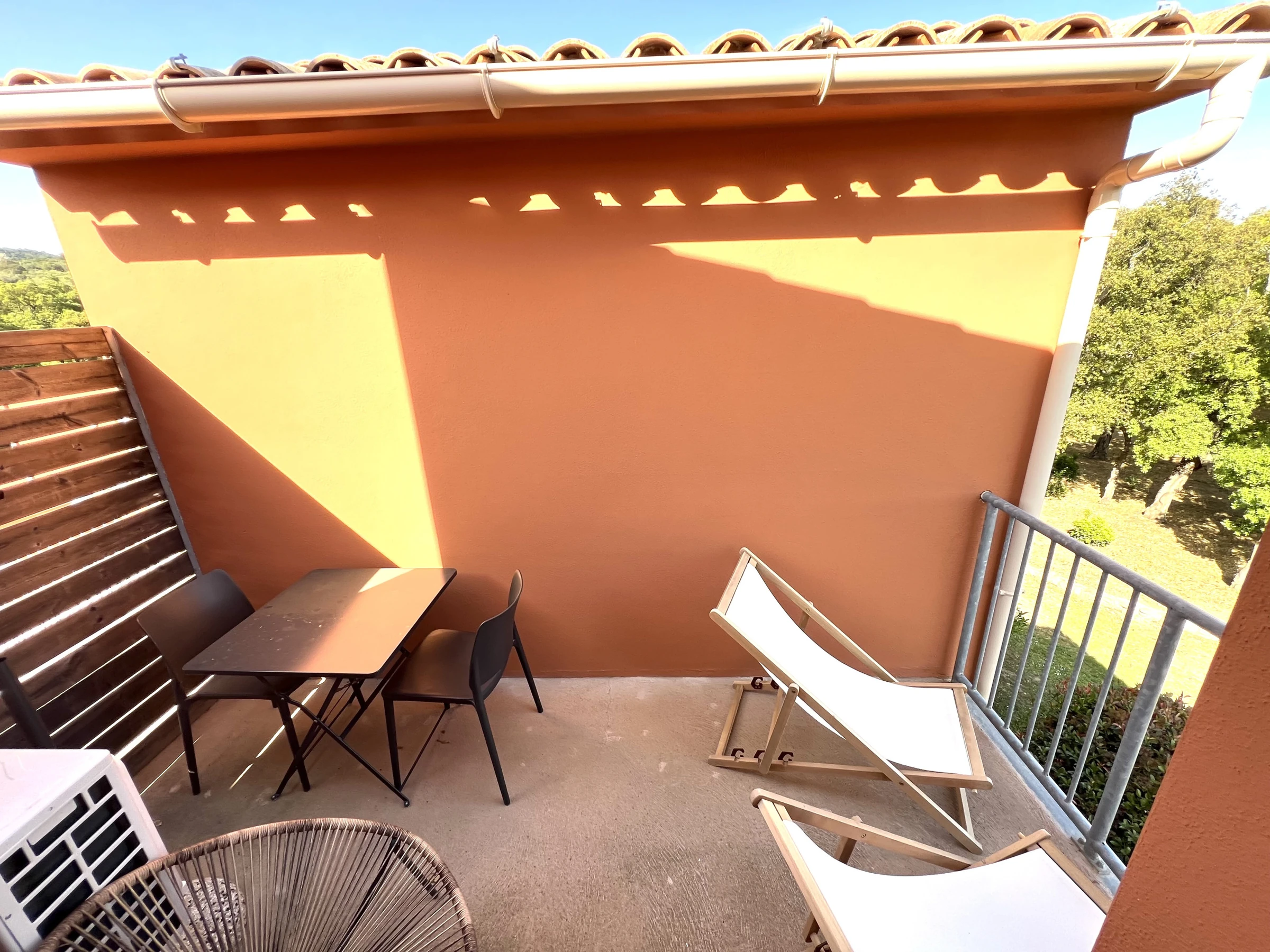 Die Unterkunft verfügt über gartenmöbel, 7 m² terrasse, internet (WLAN), haartrockner, elektroheizung, klimaanlage, swimming-pool gemeinschaftlicher swimming-pool, parkplatz im freien in in grundstücksnähe, 1 Fernseher.