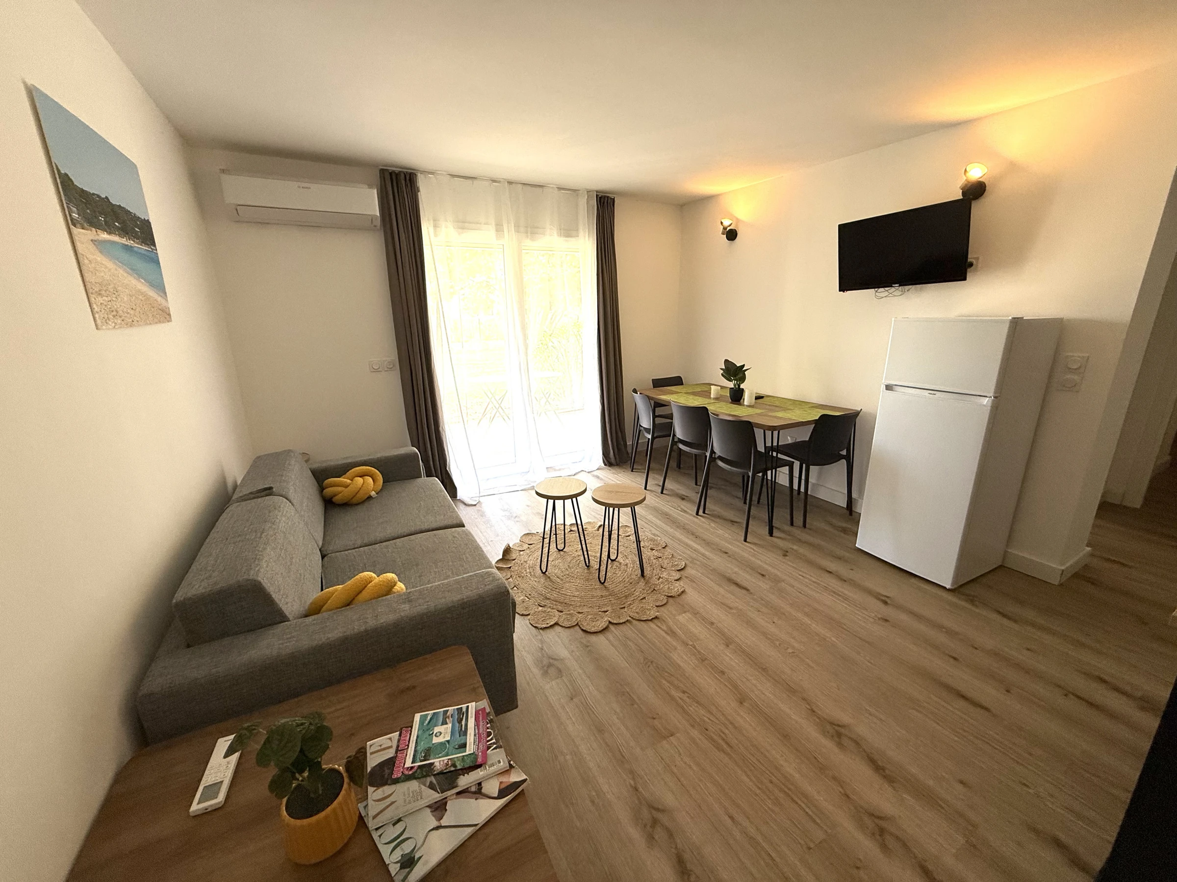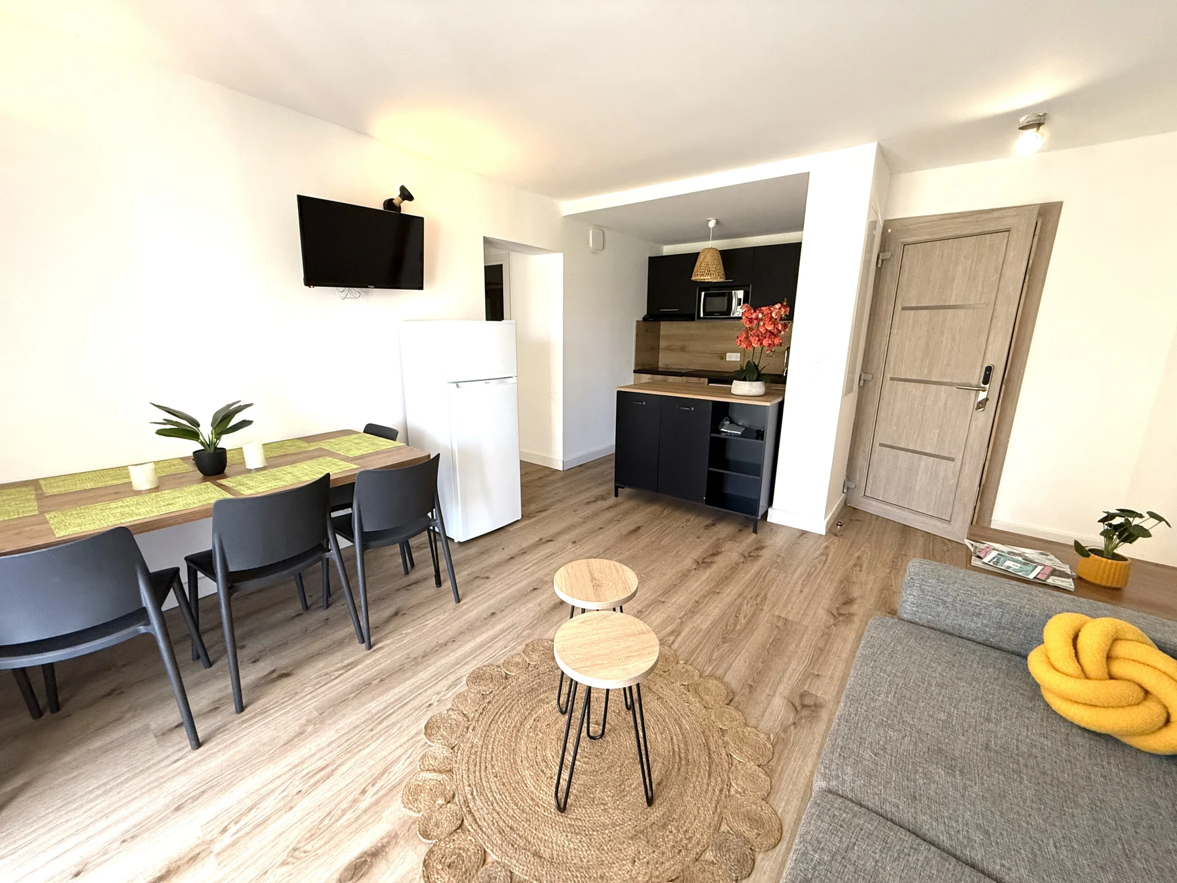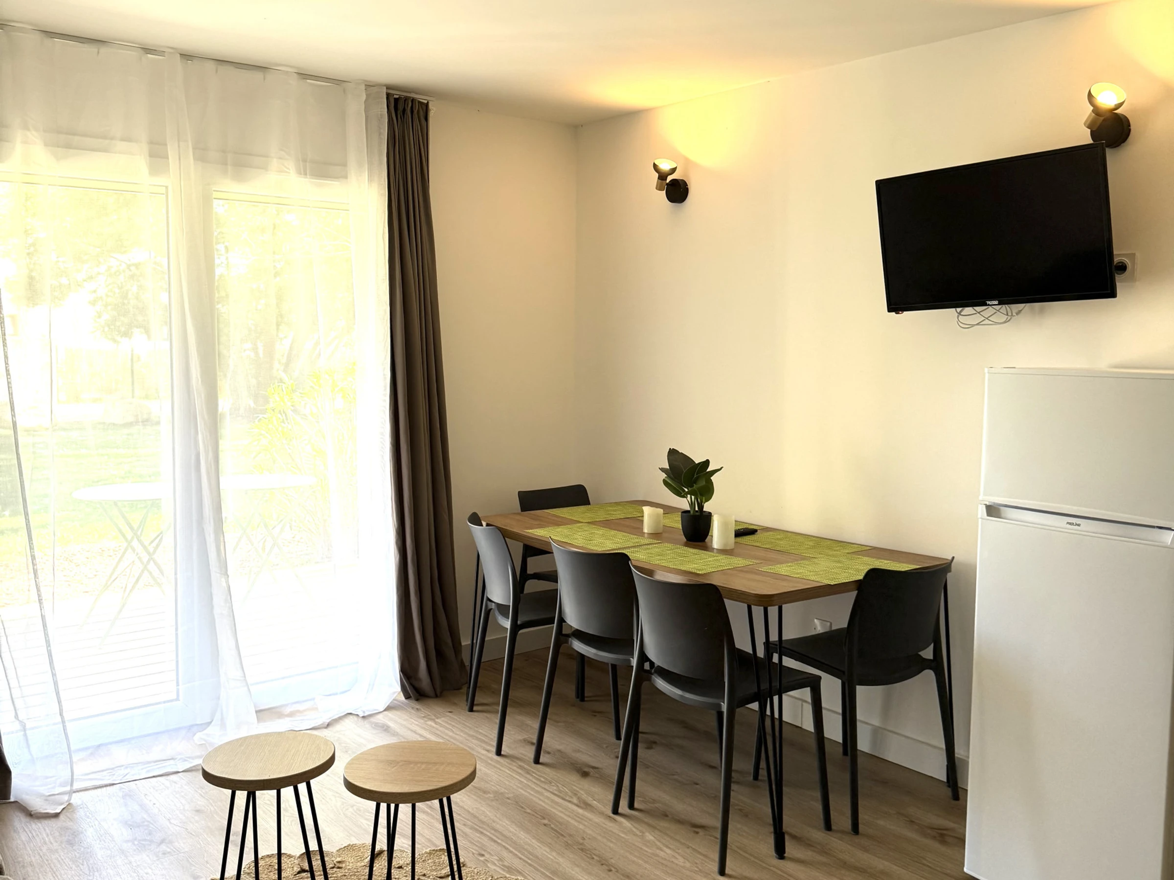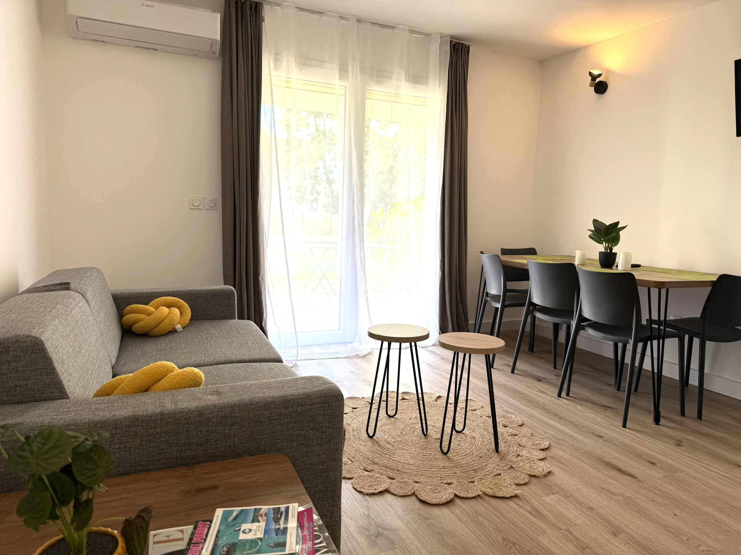 Die Unterkunft verfügt über gartenmöbel, 16 m² terrasse, internet (WLAN), haartrockner, elektroheizung, klimaanlage, swimming-pool gemeinschaftlicher swimming-pool, parkplatz im freien in in grundstücksnähe, 1 Fernseher.