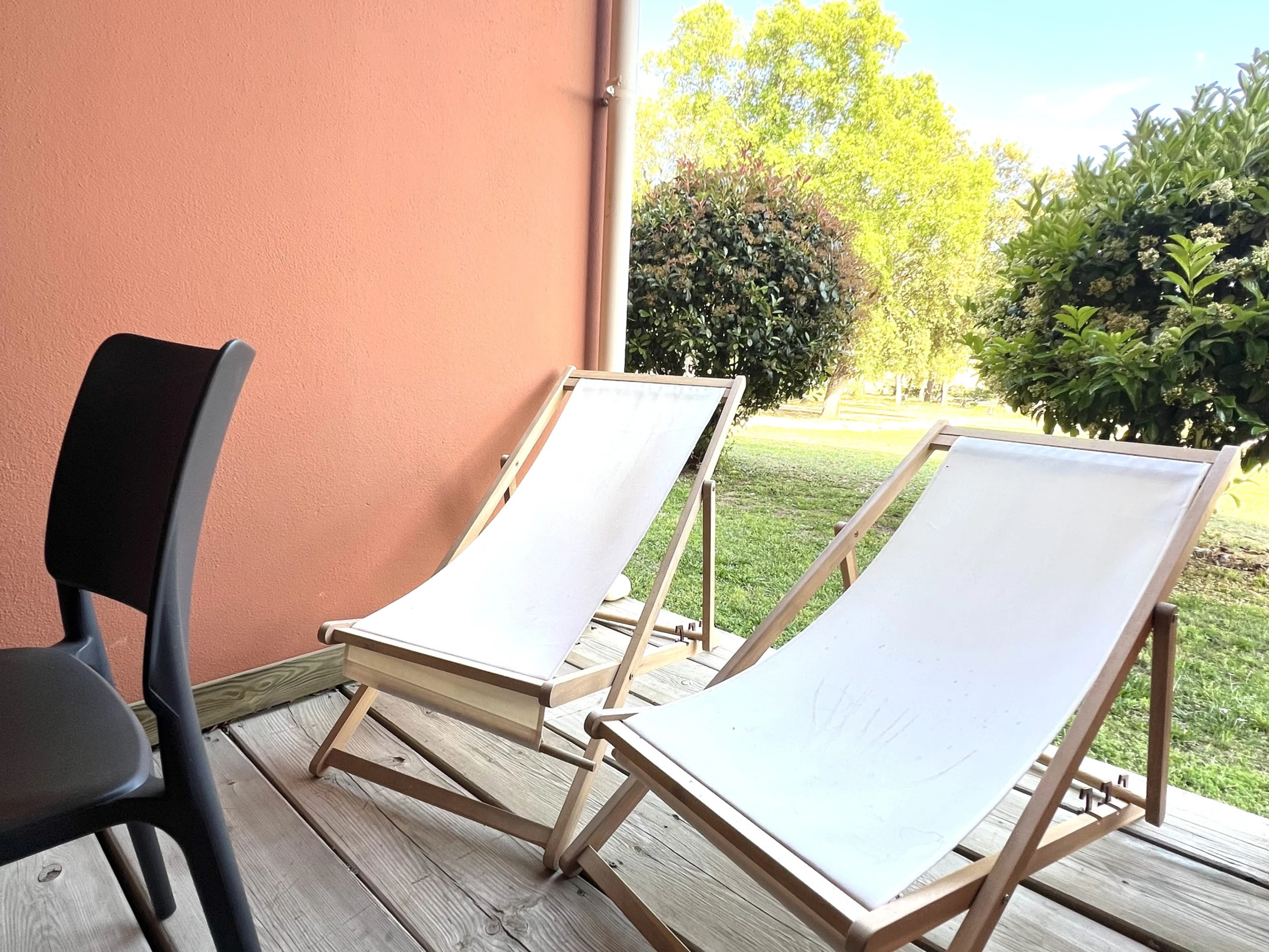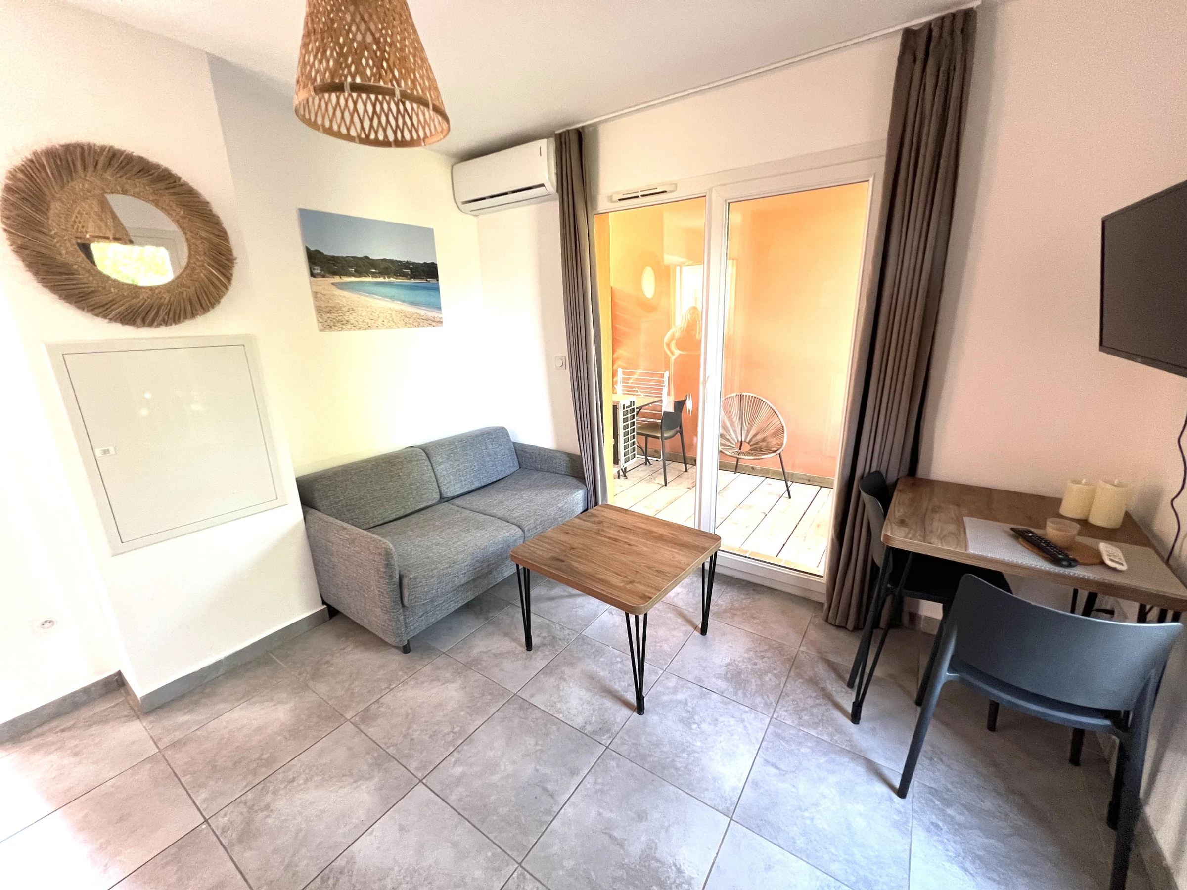 Die Unterkunft verfügt über gartenmöbel, umzäuntes grundstück, 7 m² terrasse, internet (WLAN), haartrockner, elektroheizung, klimaanlage, swimming-pool gemeinschaftlicher swimming-pool, parkplatz im freien in in grundstücksnähe, 1 Fernseher.