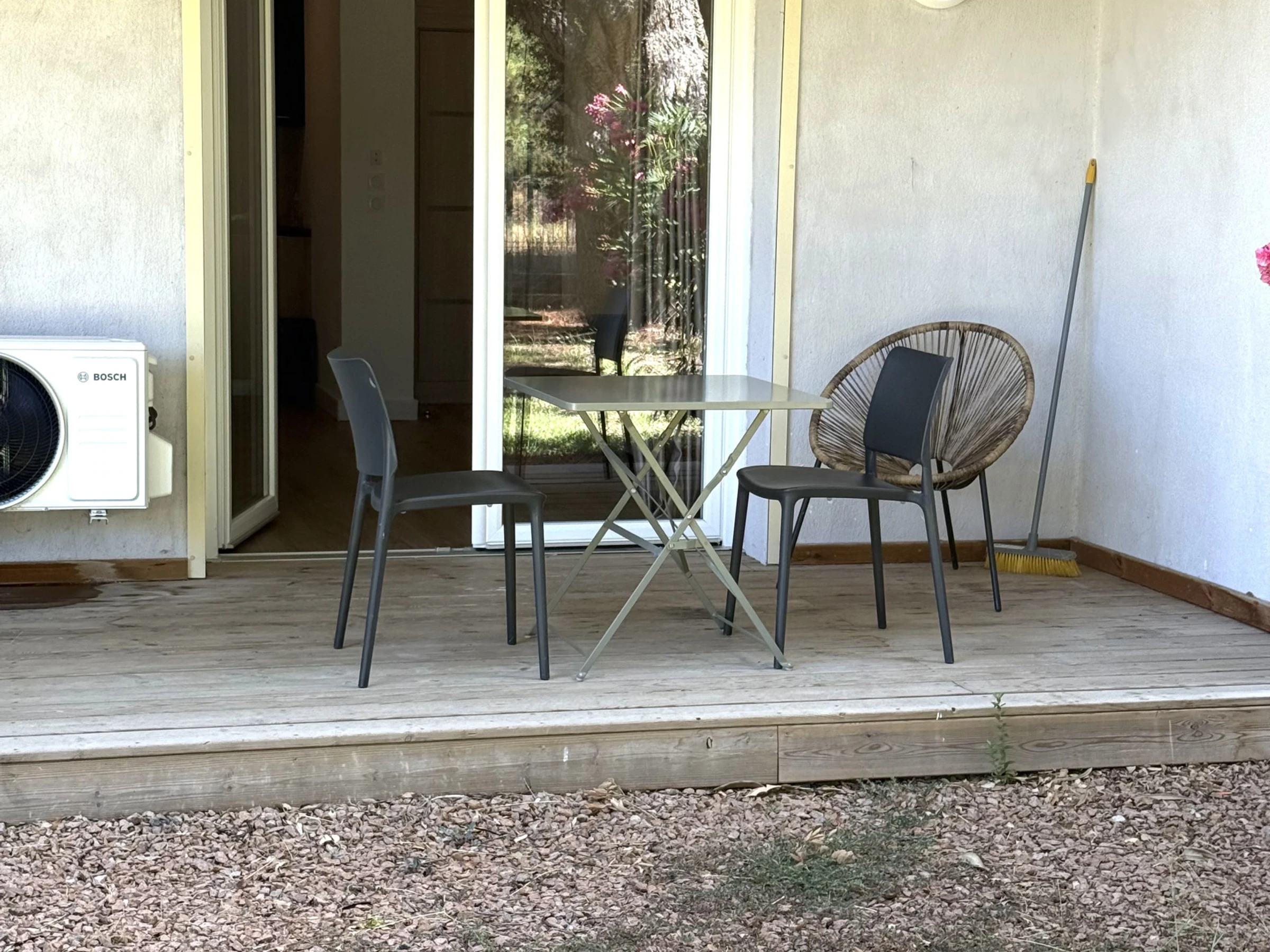 Die Unterkunft verfügt über gartenmöbel, 16 m² terrasse, internet (WLAN), haartrockner, elektroheizung, klimaanlage, swimming-pool gemeinschaftlicher swimming-pool, parkplatz im freien in in grundstücksnähe, 1 Fernseher.