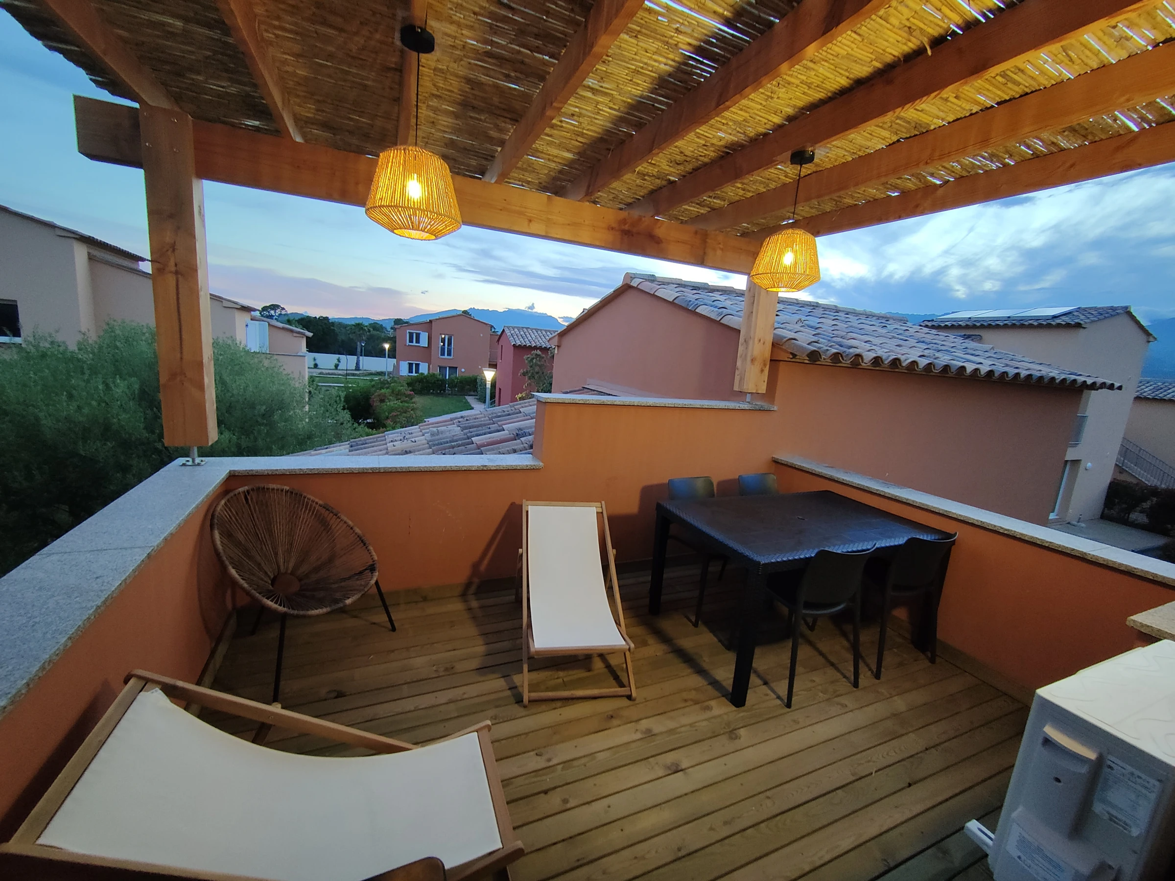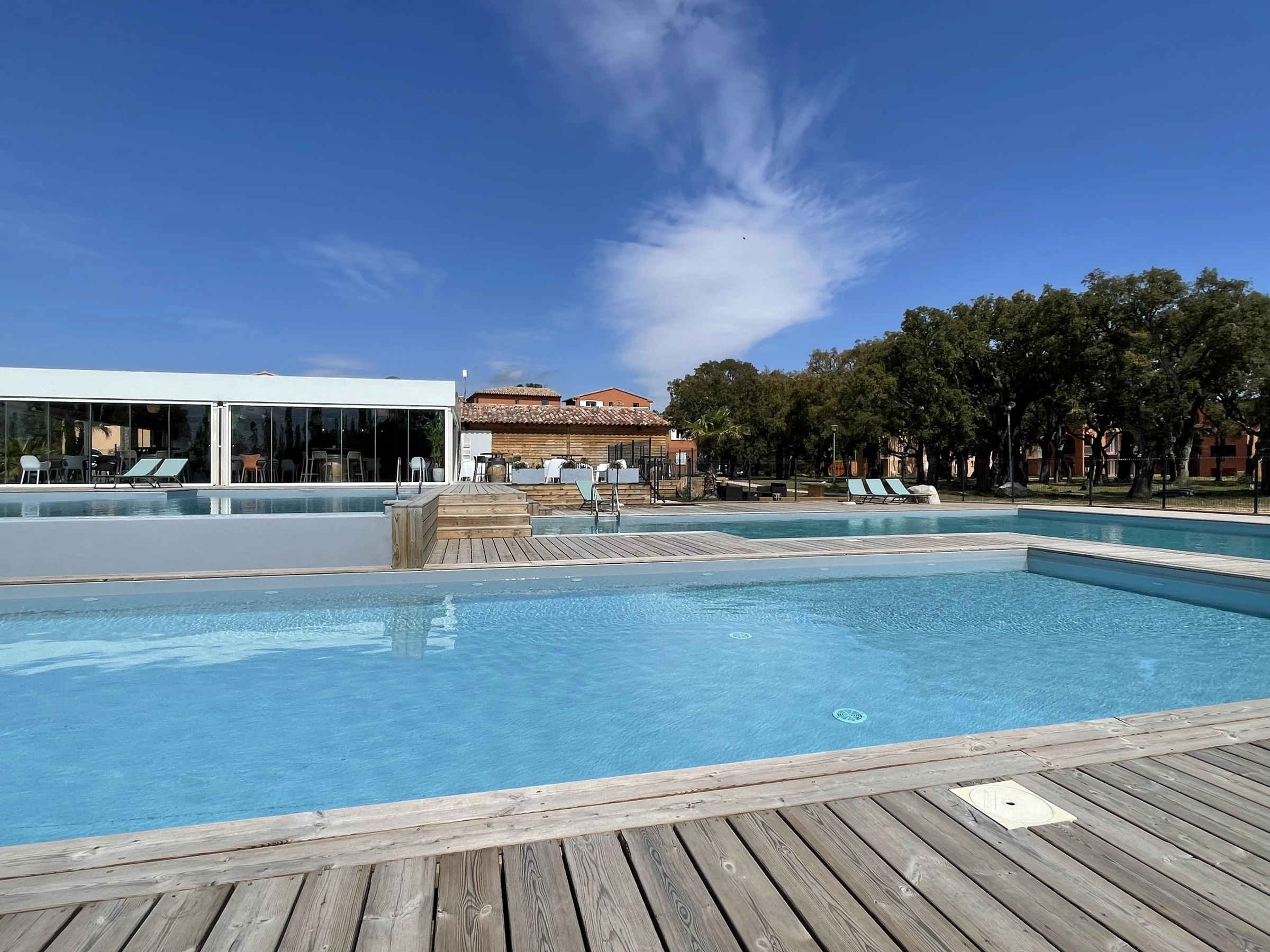 Die Unterkunft verfügt über gartenmöbel, 14 m² terrasse, internet (WLAN), haartrockner, elektroheizung, klimaanlage, swimming-pool gemeinschaftlicher swimming-pool, parkplatz im freien in in grundstücksnähe, 1 Fernseher.
