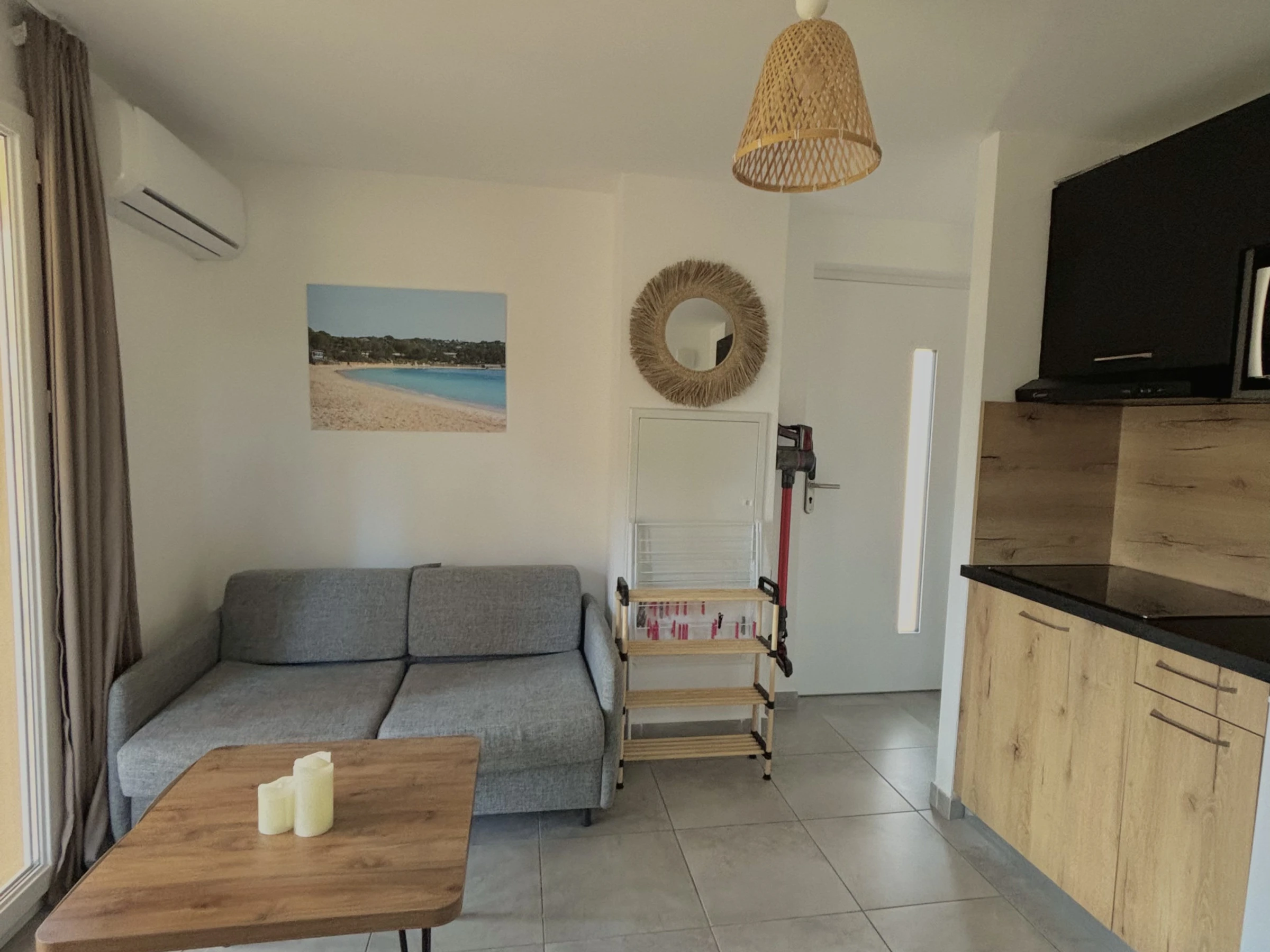 Die Unterkunft verfügt über gartenmöbel, umzäuntes grundstück, 7 m² terrasse, internet (WLAN), haartrockner, elektroheizung, klimaanlage, swimming-pool gemeinschaftlicher swimming-pool, parkplatz im freien in in grundstücksnähe, 1 Fernseher.