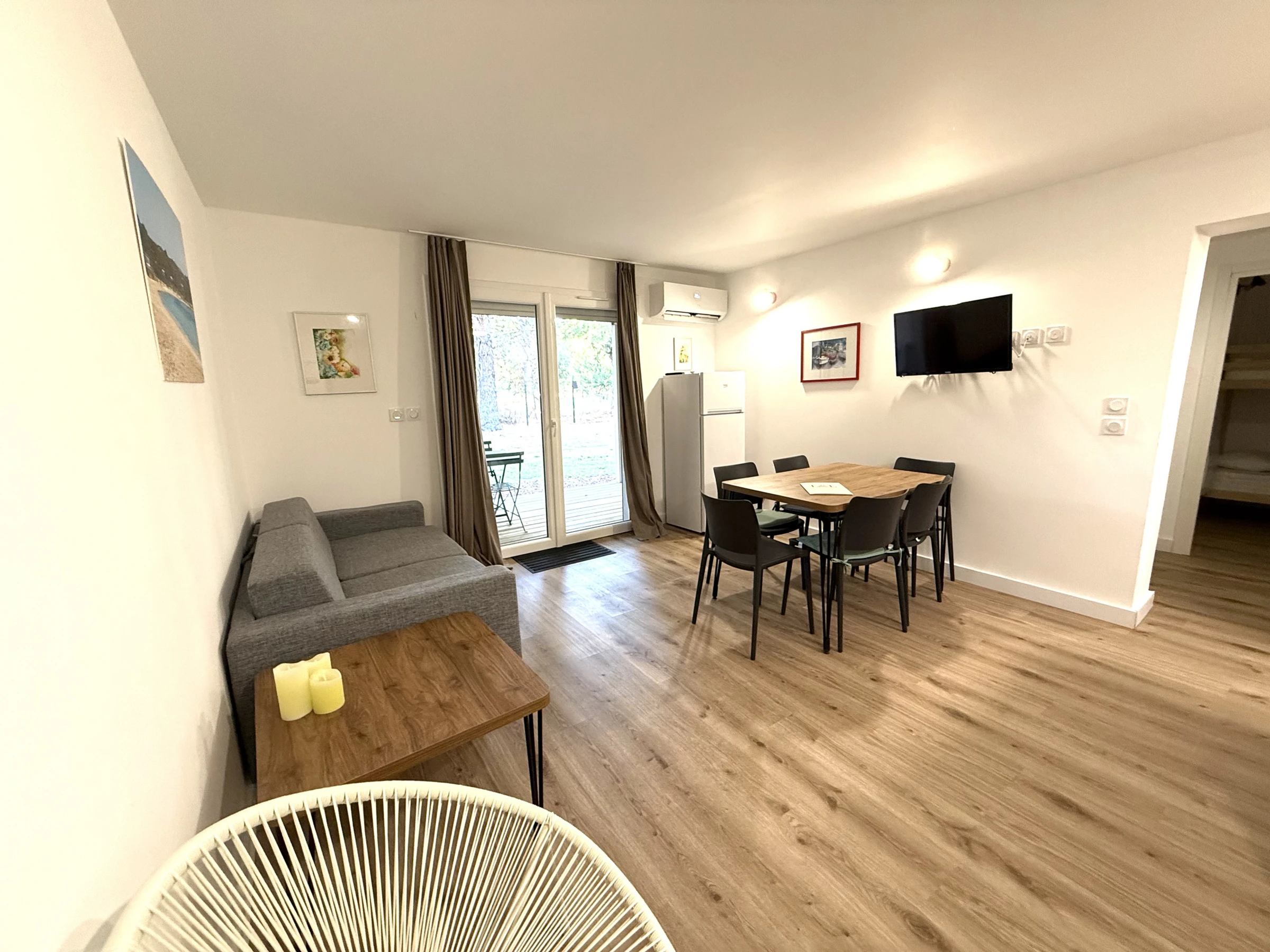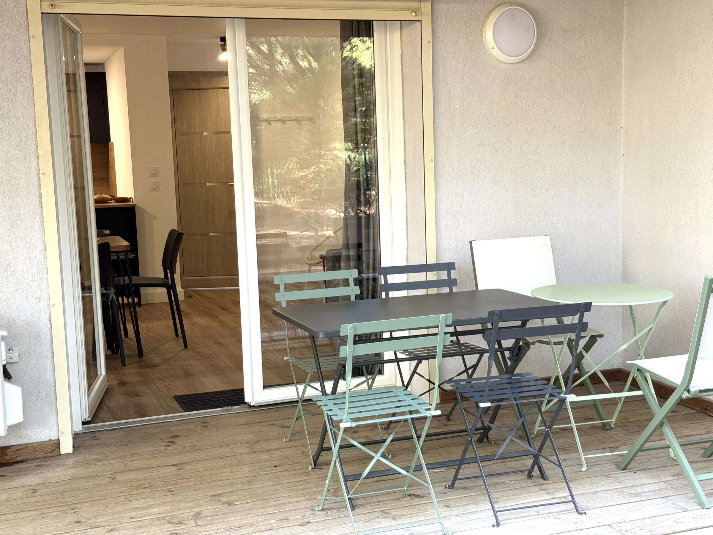 Die Unterkunft verfügt über gartenmöbel, 16 m² terrasse, waschmaschine, internet (WLAN), haartrockner, elektroheizung, klimaanlage, swimming-pool gemeinschaftlicher swimming-pool, parkplatz im freien in in grundstücksnähe, 1 Fernseher.