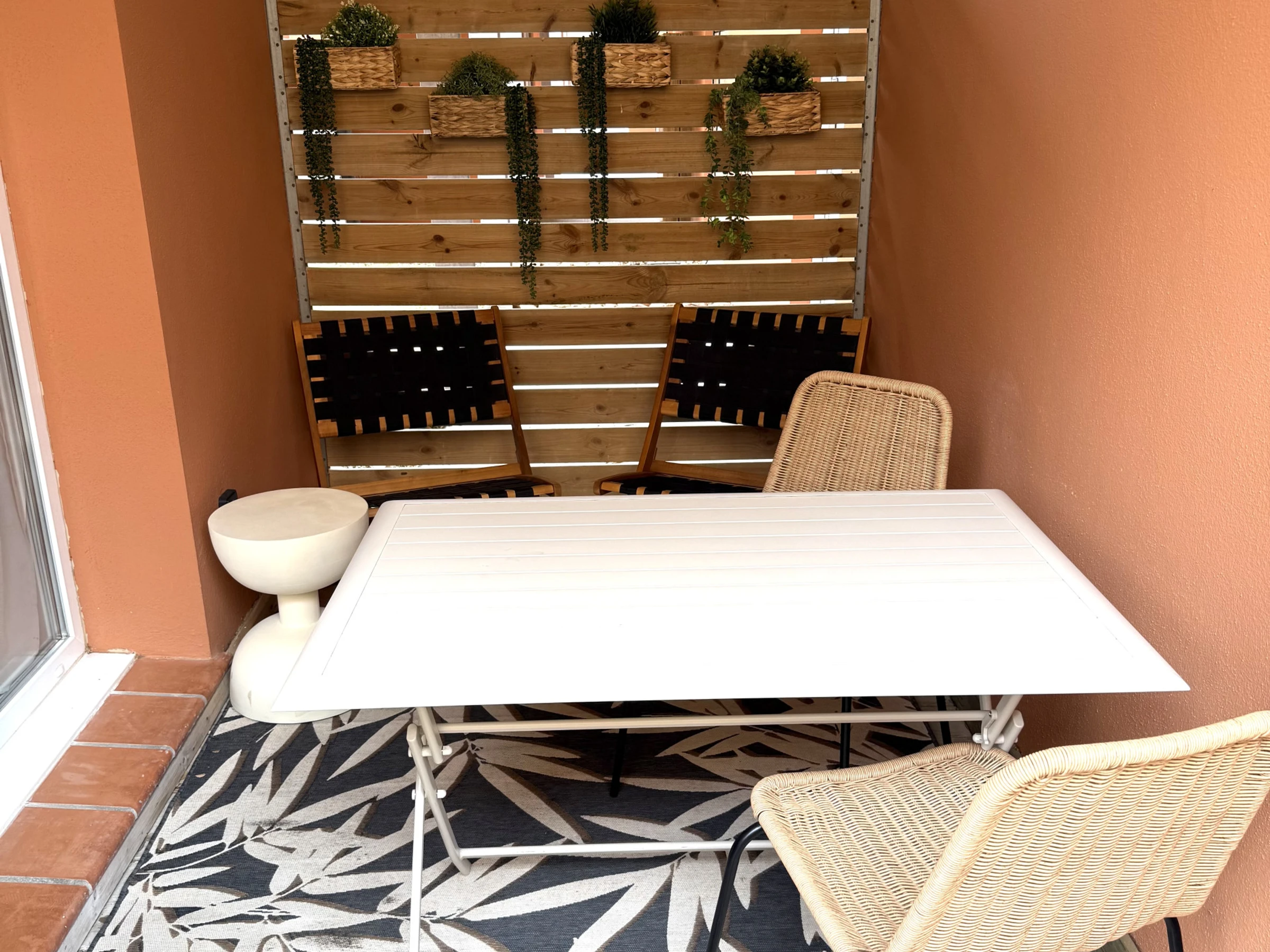 Die Unterkunft verfügt über gartenmöbel, umzäuntes grundstück, 7 m² terrasse, internet (WLAN), haartrockner, elektroheizung, klimaanlage, swimming-pool gemeinschaftlicher swimming-pool, klimatisierter pool gemeinschaftlicher swimming-pool, parkplatz im freien in in grundstücksnähe, 1 Fernseher.