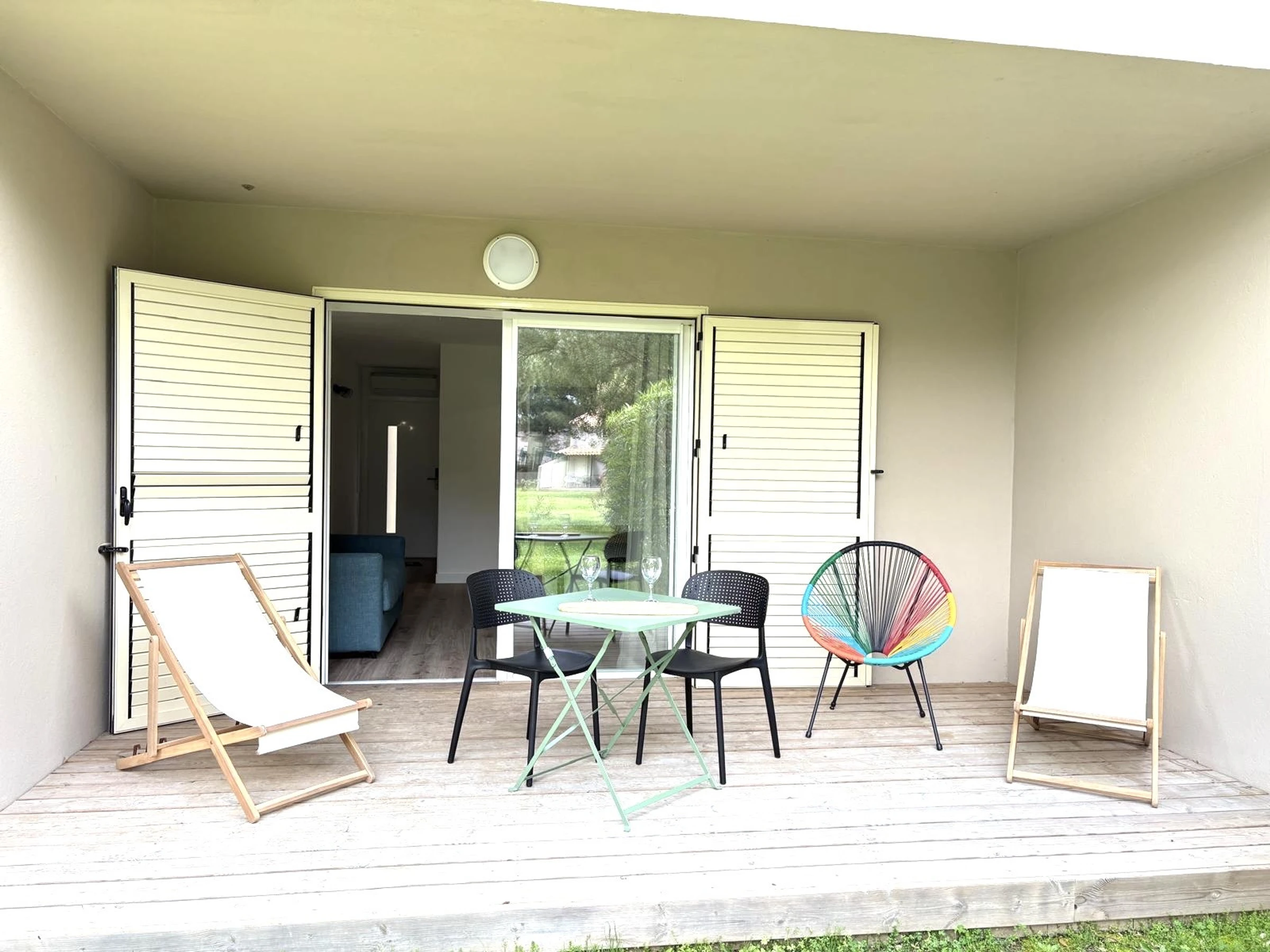 Die Unterkunft verfügt über gartenmöbel, internet (WLAN), haartrockner, balkon, elektroheizung, klimaanlage, swimming-pool gemeinschaftlicher swimming-pool, parkplatz im freien in in grundstücksnähe, TV, sat-tv (Sprachen: Französisch).