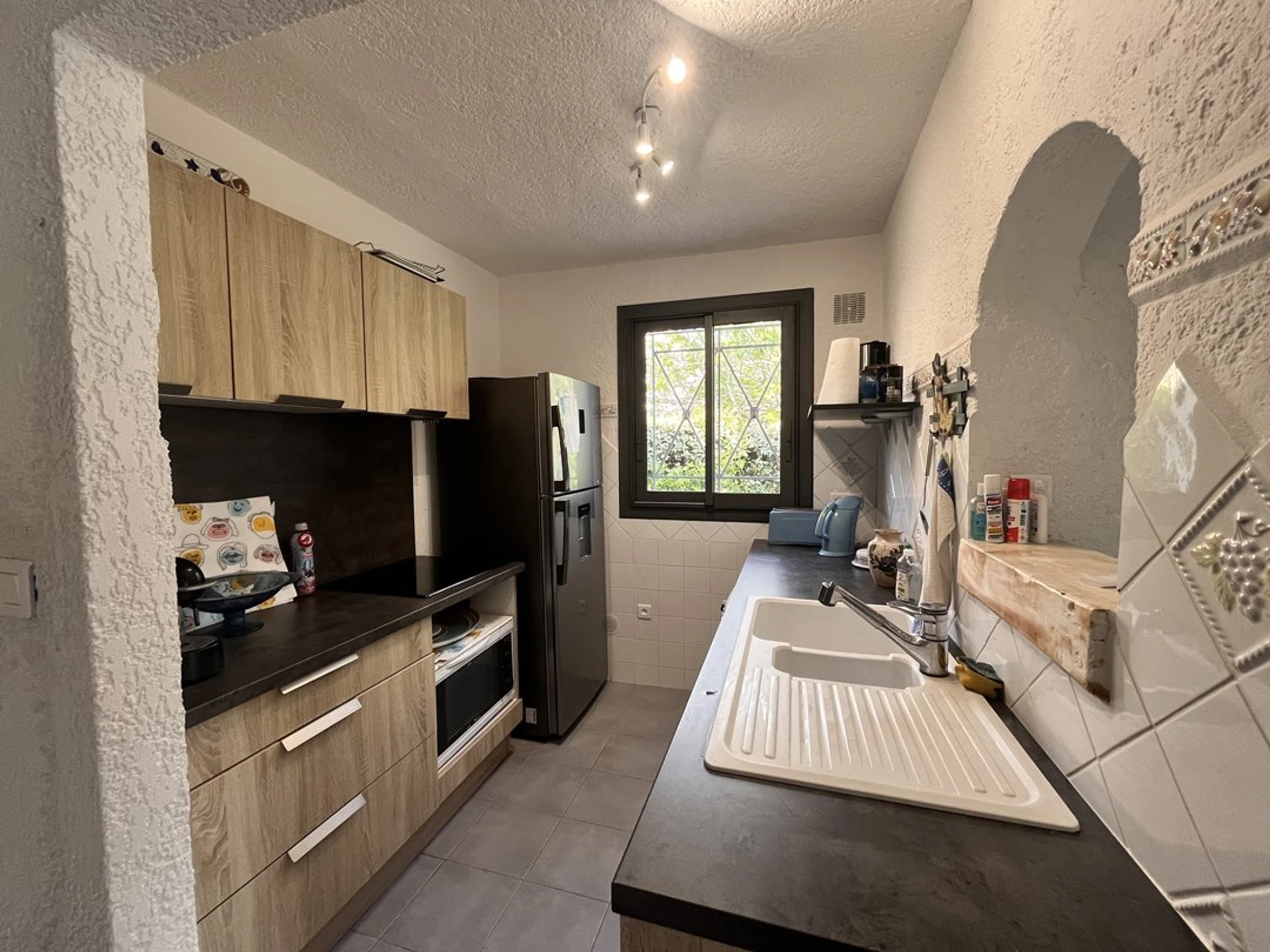 Voll ausgestattete Küche: Geschirrspüler, Waschmaschine, Kühlschrank mit Gefrierfach, Wasserkocher, Mikrowelle, Kaffeemaschine ..