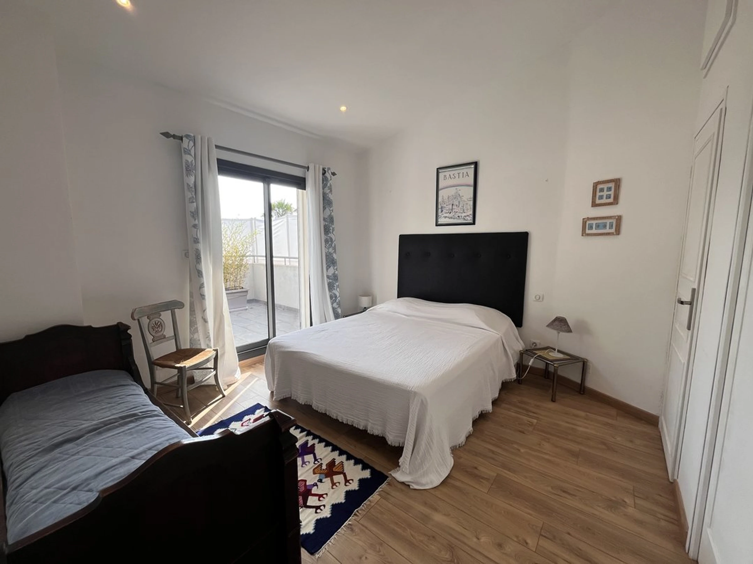 Schlafzimmer 2: Klimaanlage: 1 Doppelbett (140x190), 1 korsisches Bett, Lagerung.