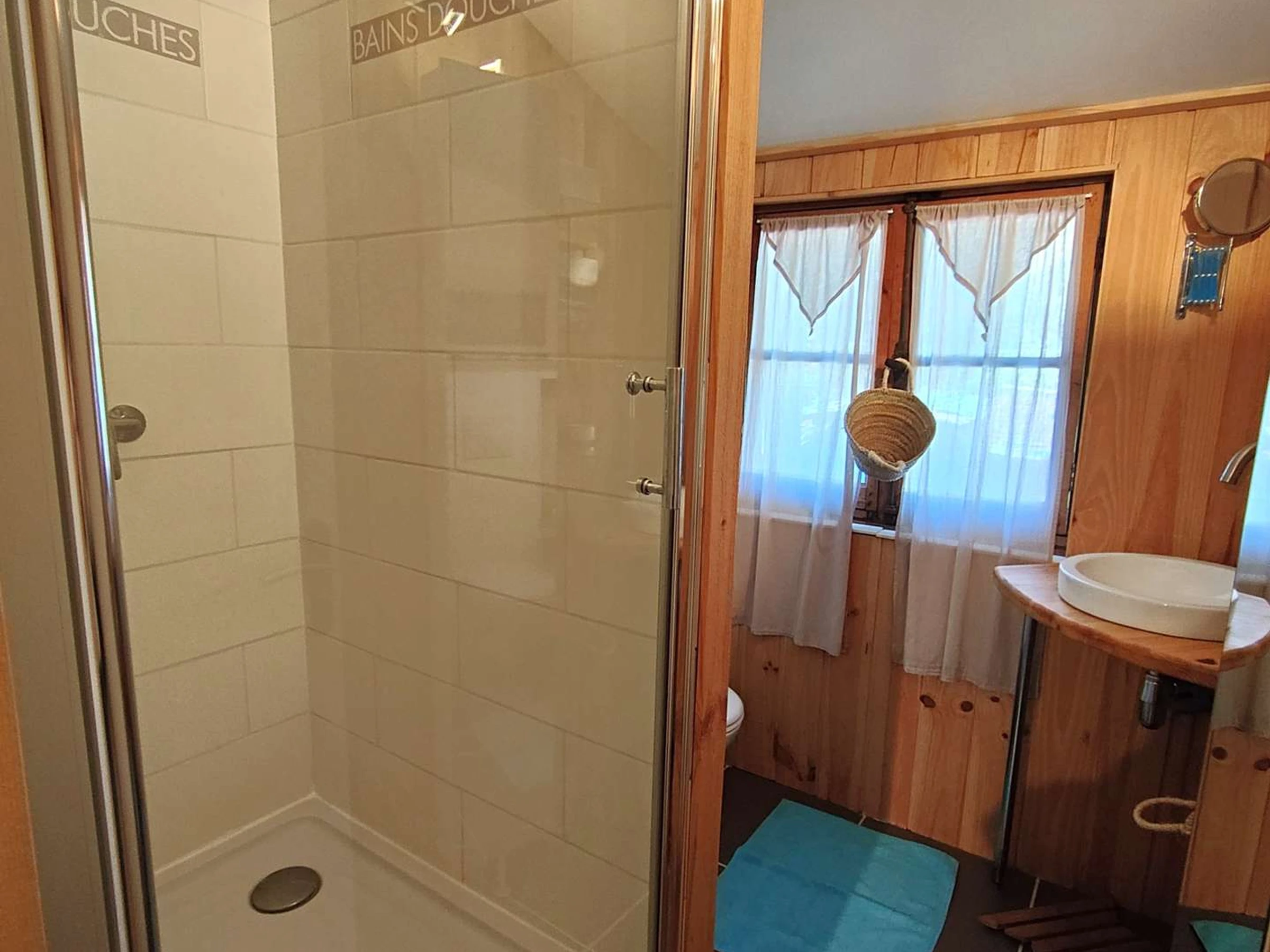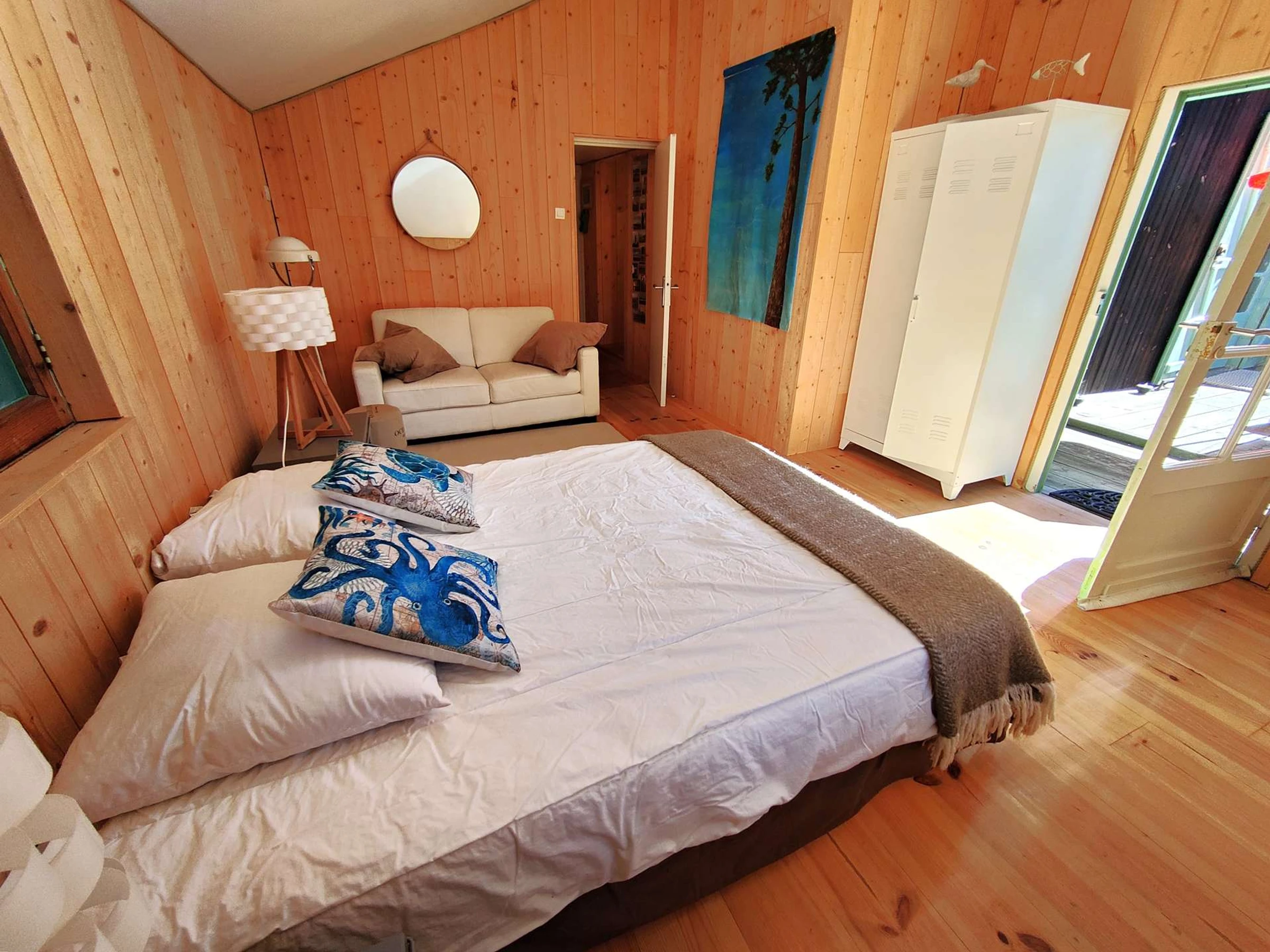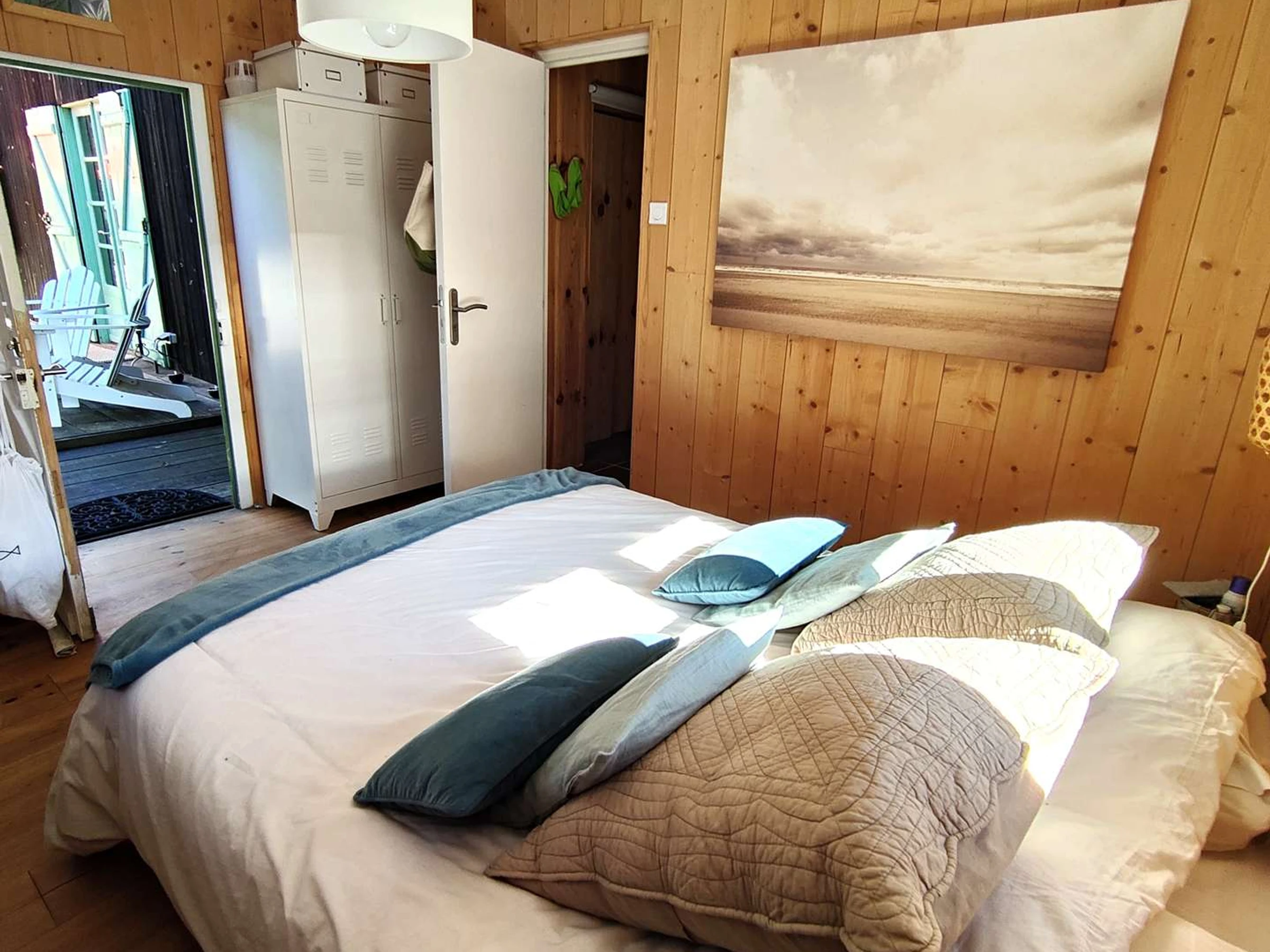 Zum Abschluss des Chalets gibt es ein Badezimmer mit Zerhackertoilette sowie eine separate Garage mit Waschmaschine, zweitem Kühlschrank und Gefrierschrank. Der großzügige, umzäunte Garten (1.100 m²) ist ideal für gesellige Stunden mit Familie oder Freunden. Entspannen Sie am Gasgrill, auf den Gartenmöbeln oder in den Hängematten im Schatten der Pinien.