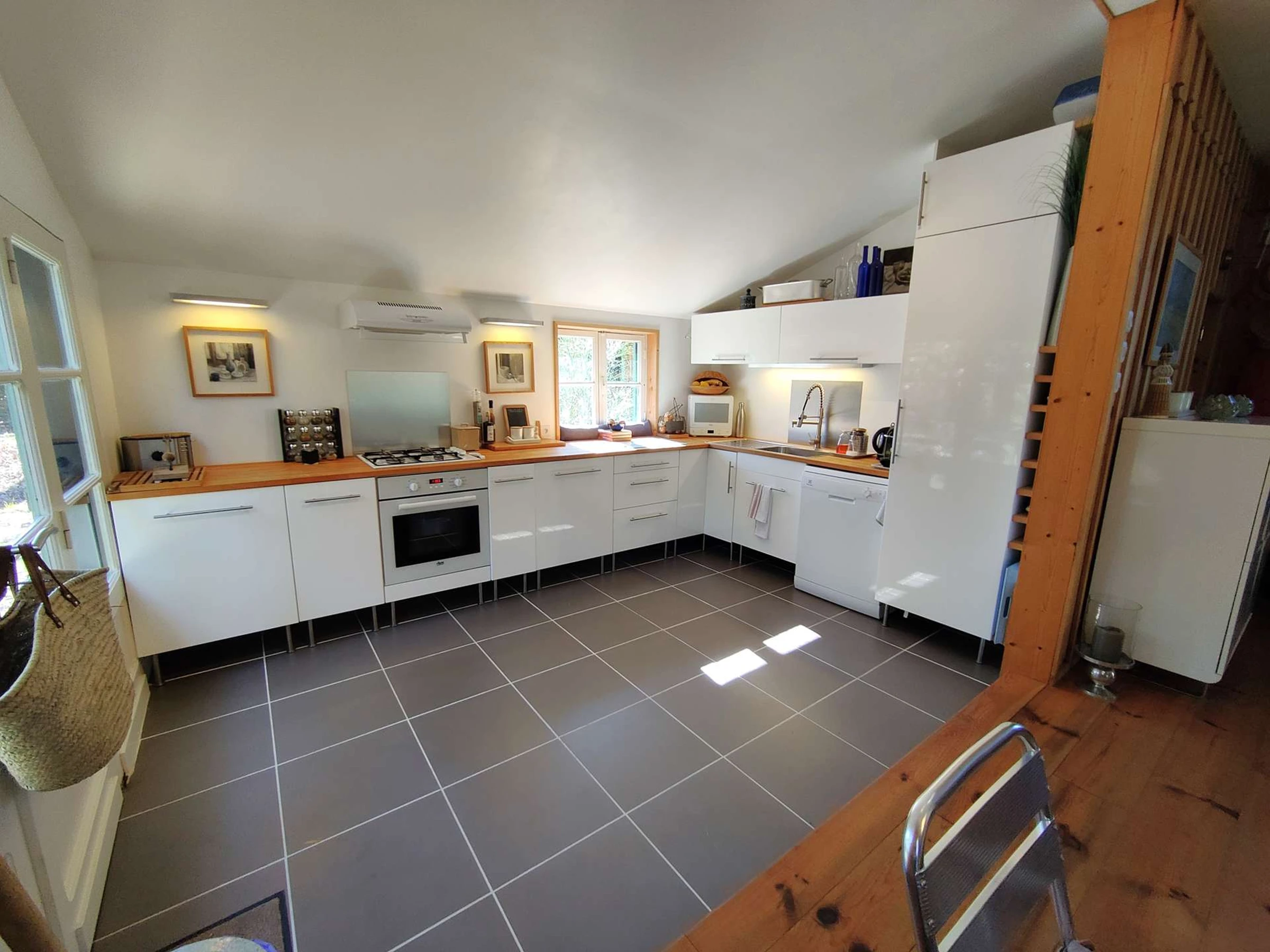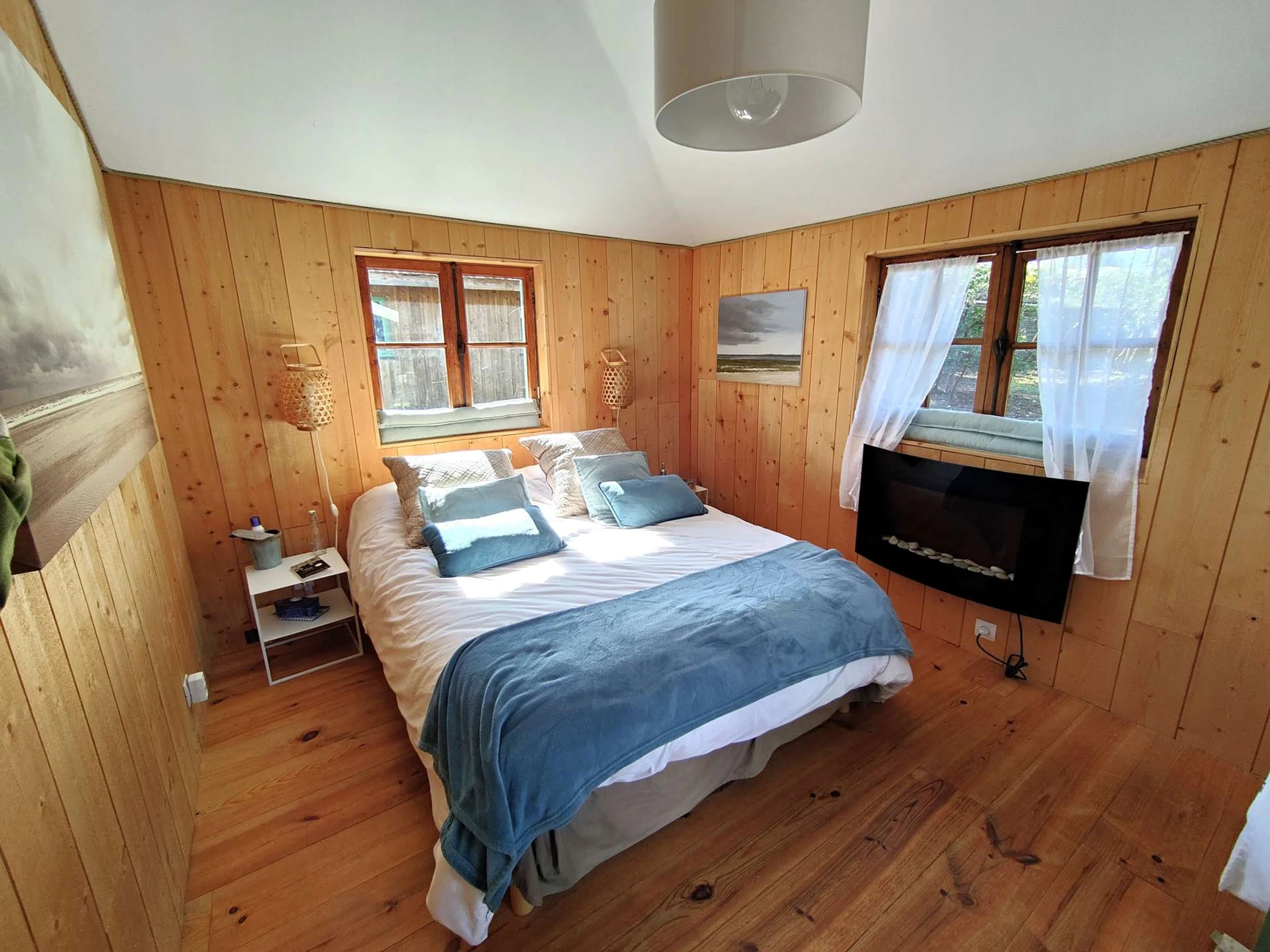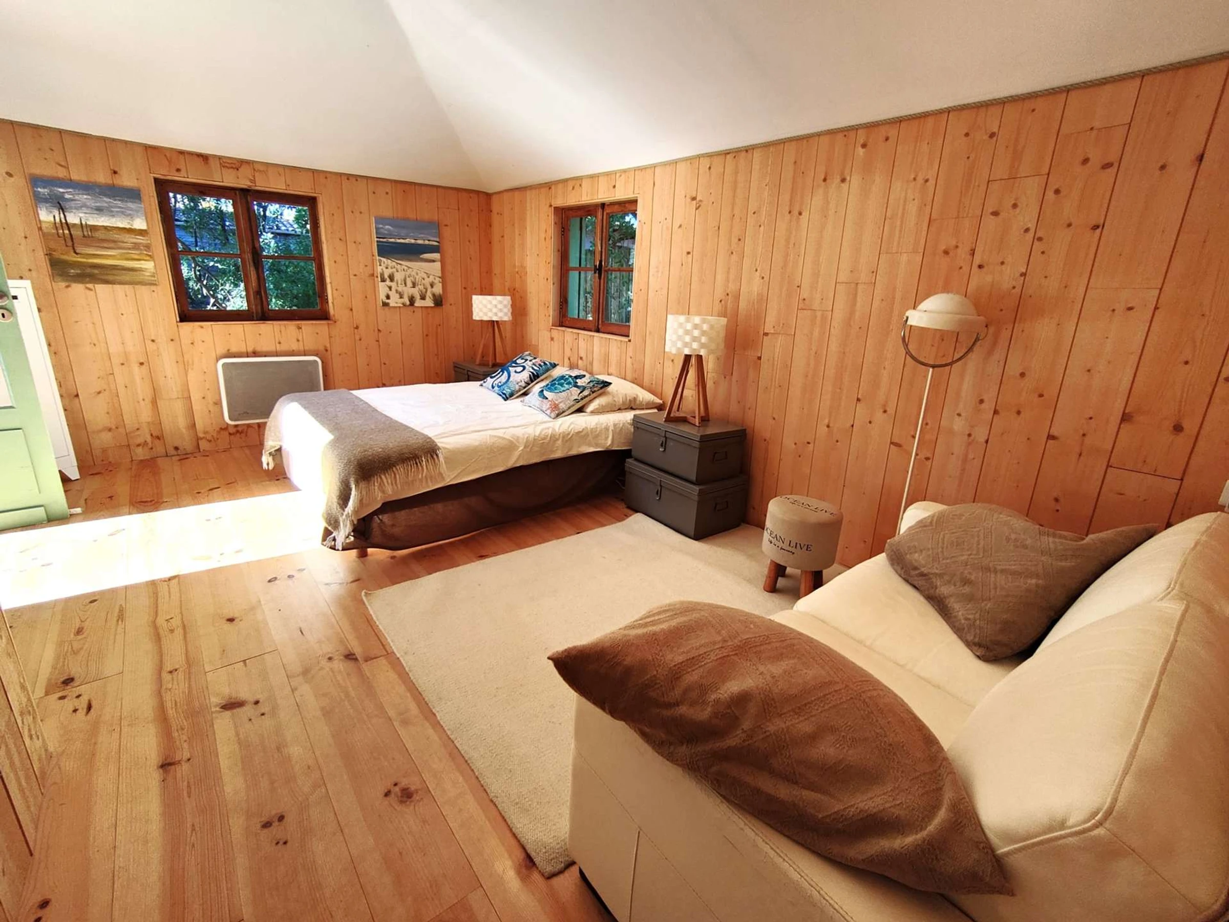 Zum Abschluss des Chalets gibt es ein Badezimmer mit Zerhackertoilette sowie eine separate Garage mit Waschmaschine, zweitem Kühlschrank und Gefrierschrank. Der großzügige, umzäunte Garten (1.100 m²) ist ideal für gesellige Stunden mit Familie oder Freunden. Entspannen Sie am Gasgrill, auf den Gartenmöbeln oder in den Hängematten im Schatten der Pinien.