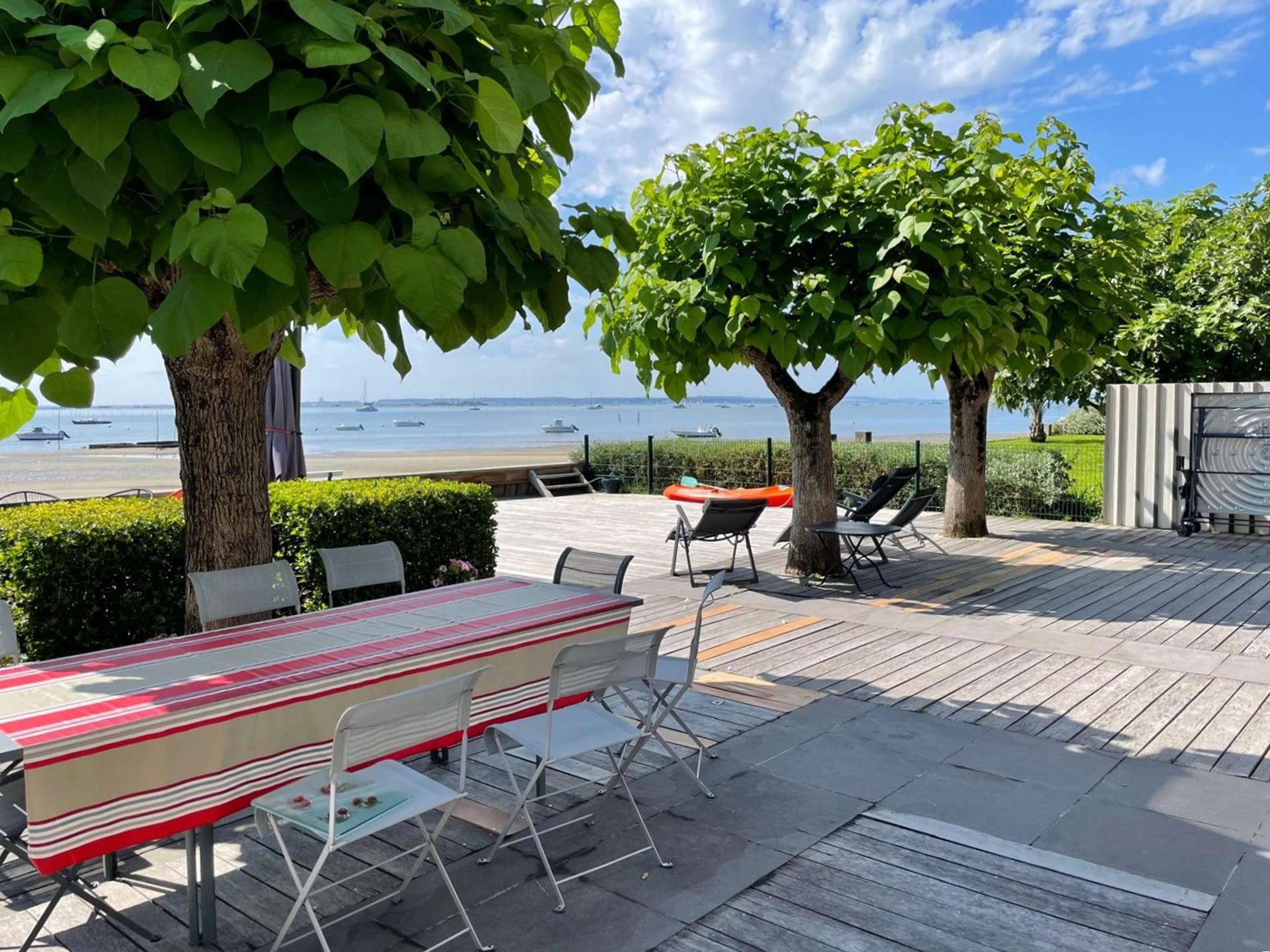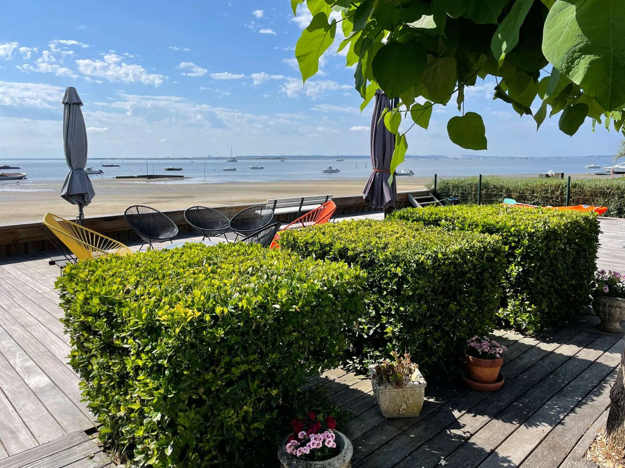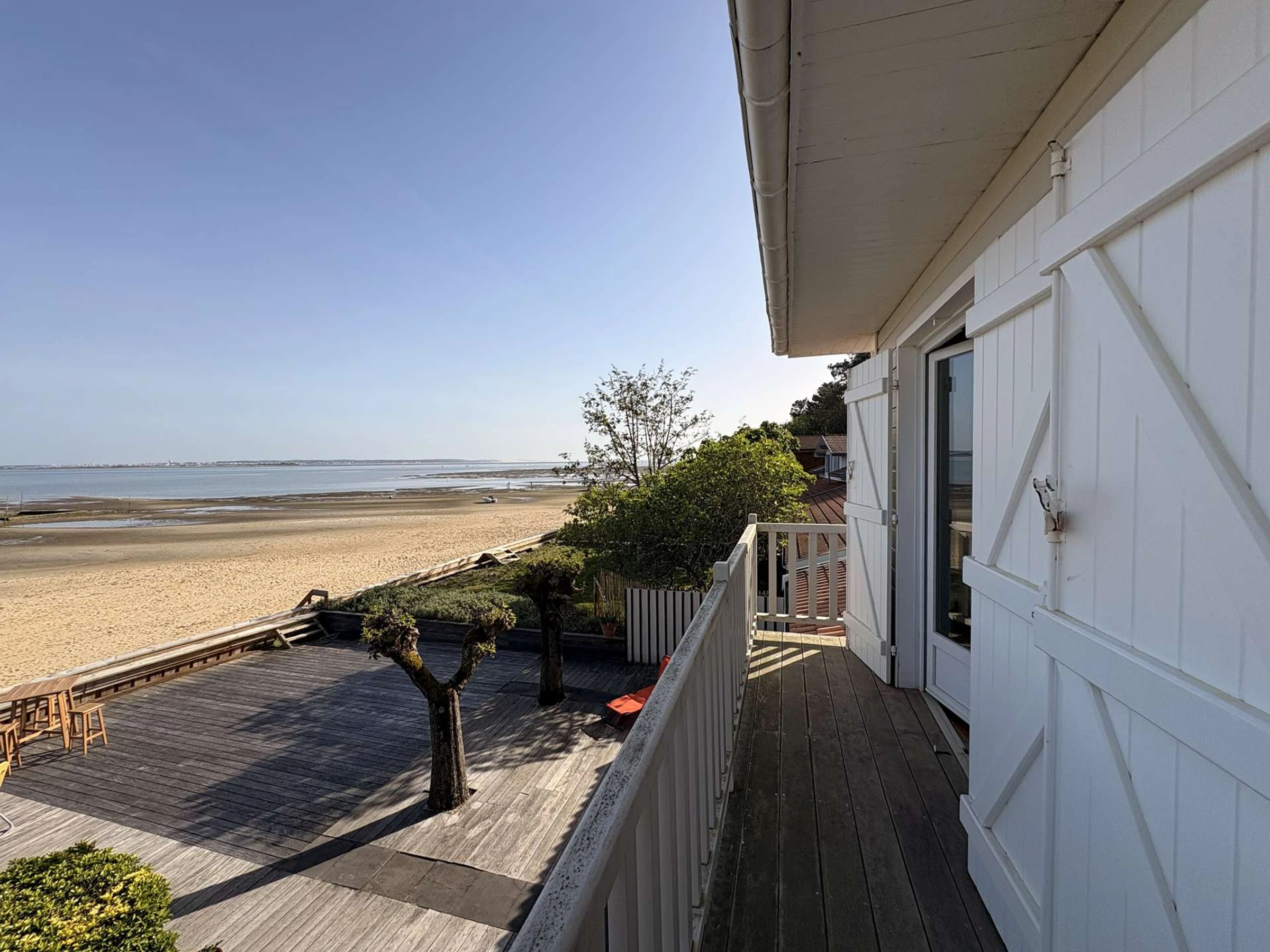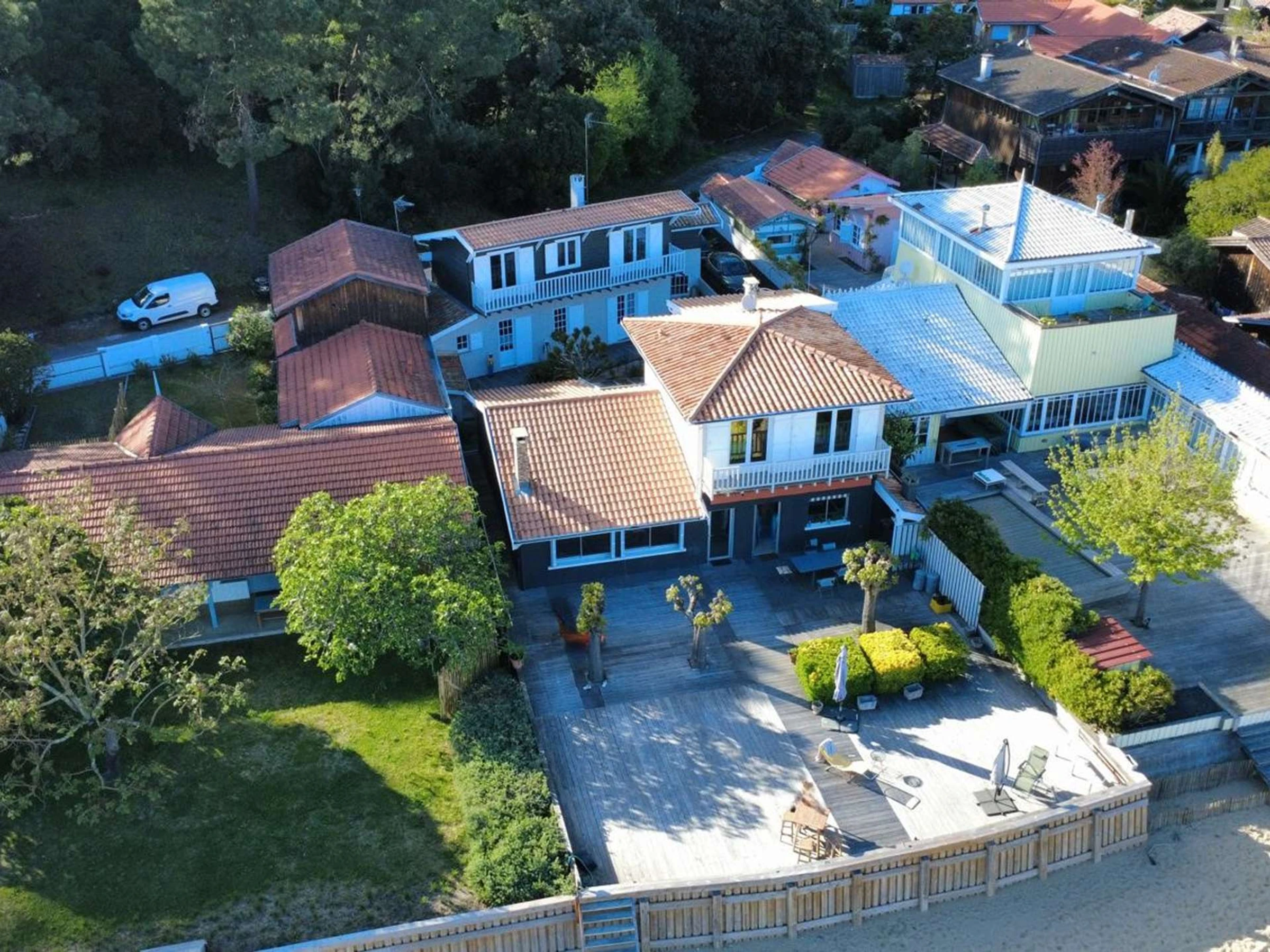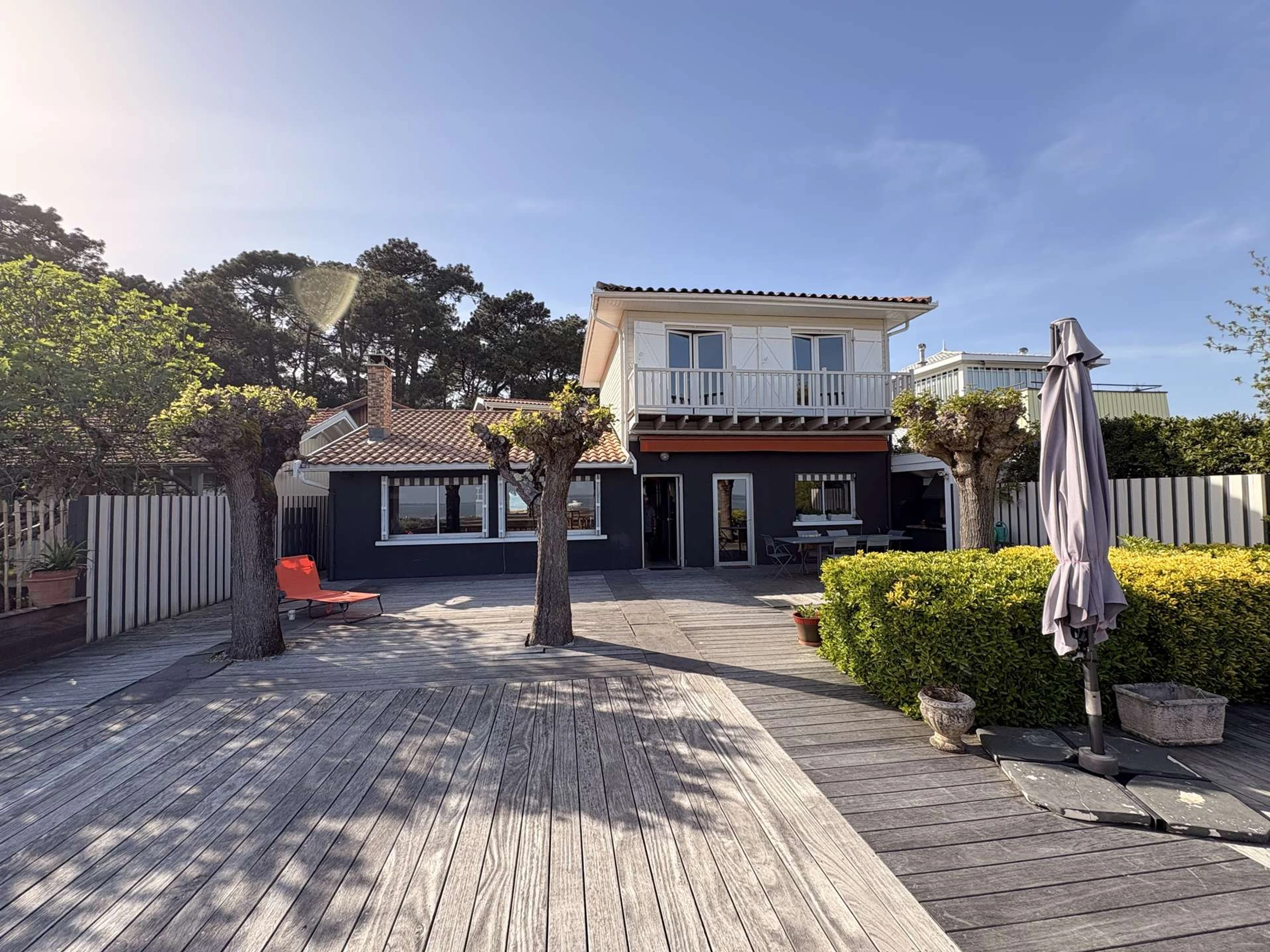 Auf einem 587 m² großen Grundstück bieten die Villen verschiedene Außenbereiche, darunter eine große Terrasse mit atemberaubendem Blick auf die Bucht von Arcachon. Nach einem erlebnisreichen Tag können Sie sich auf den Gartenmöbeln oder Sonnenliegen entspannen und mit Familie und Freunden auf dem Plancha-Grill speisen.