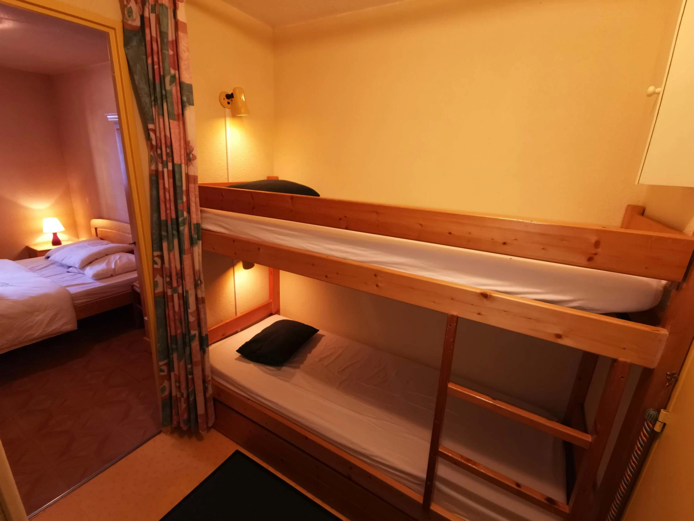 - Ein Schlafzimmer mit 1 140 cm breiten Bett für 2 Personen und 2 Etagenbetten in der Kabine.