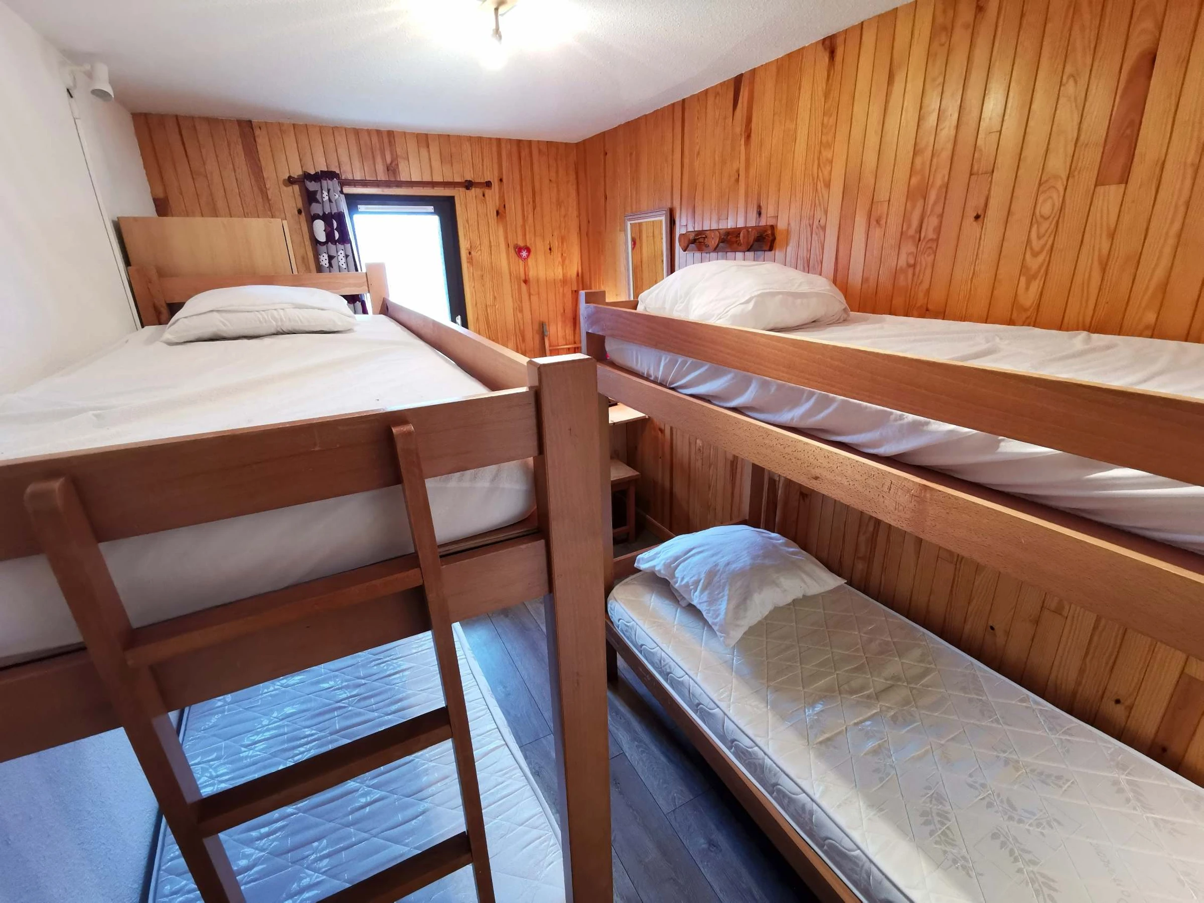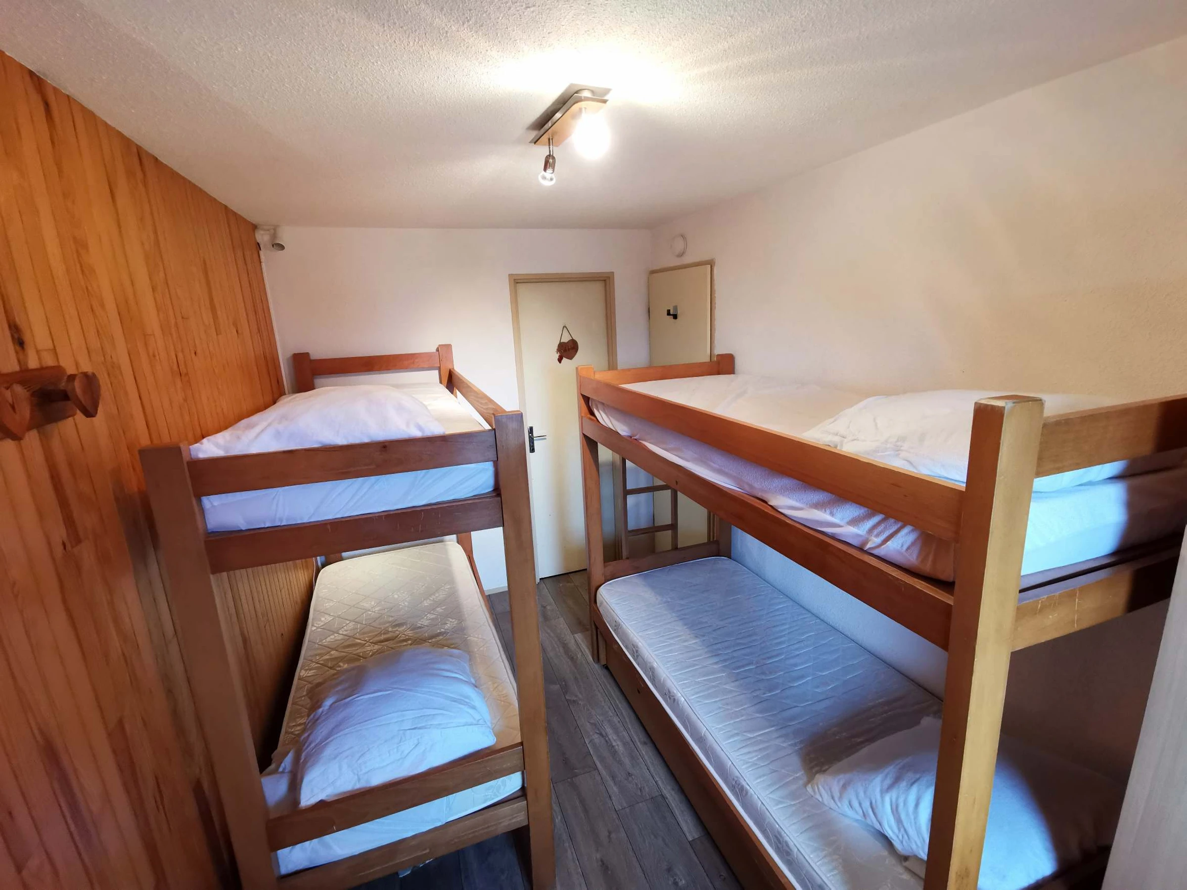 - Wohnzimmer: 1 Doppelschlafsofa (140 cm). Schlafzimmer: 2 Etagenbetten (90 cm).