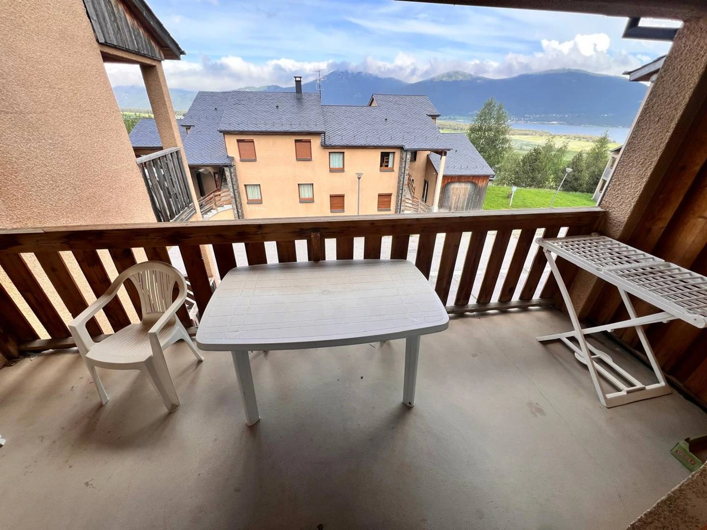 Einen Balkon mit herrlichem Blick auf die Bergkette und teilweisem Blick auf den Matemale-See.