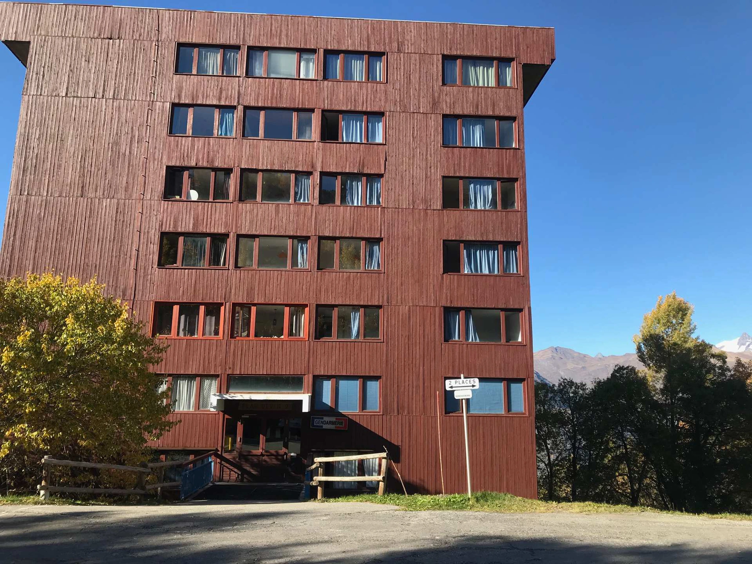 Die 69 m² große Wohnung befindet sich im 9. Stock eines Hauses mit Aufzug, direkt neben der Bushaltestelle und ca. 500 m von den Pisten, Geschäften und Restaurants entfernt.