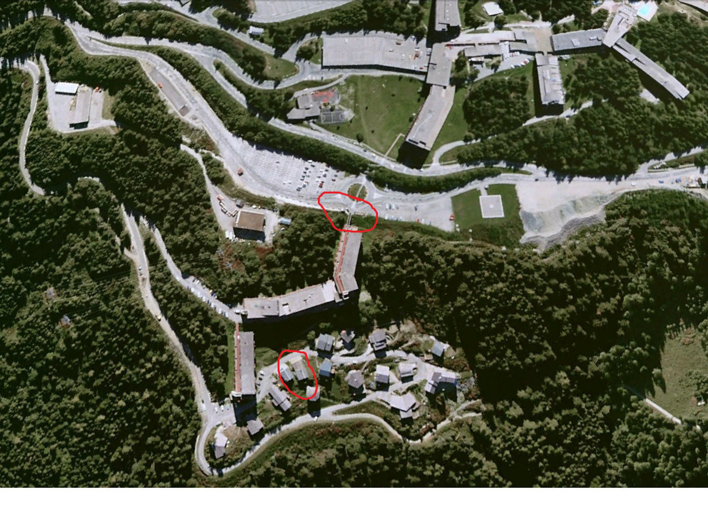 Zugang zum Resort: mit dem Auto oder zu Fuß mit den Aufzügen der Residenzen Prainan, Chardons, Croisette und Pierra Menta