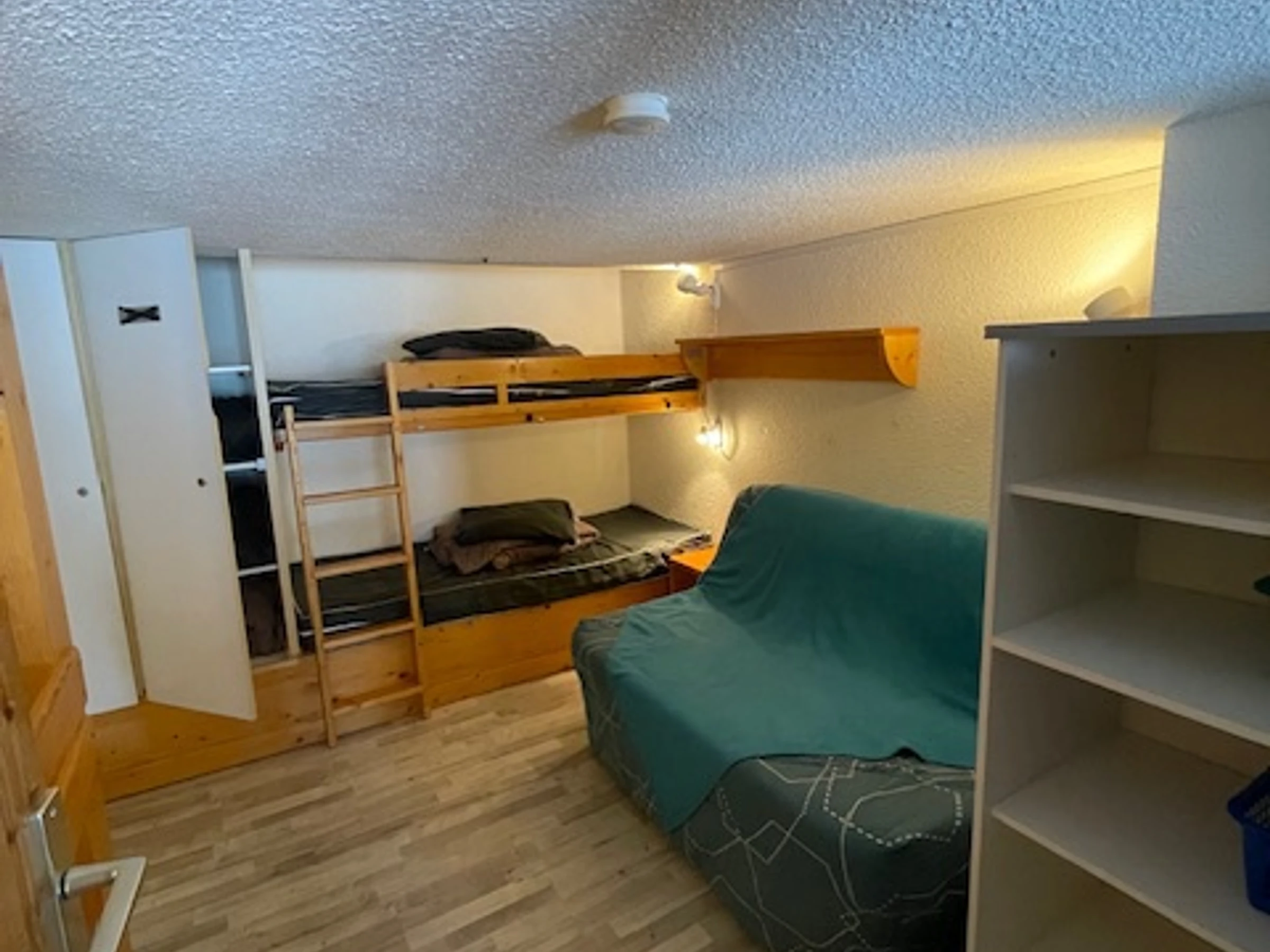 In der ruhigen Gegend von Charmettoger, in der Residenz am Fuße der Piste Aiguille Grive 1, befindet sich dieses 30 m² große Studio-Apartment im 5. Stock mit Nordost-Balkon für 4–5 Personen.
