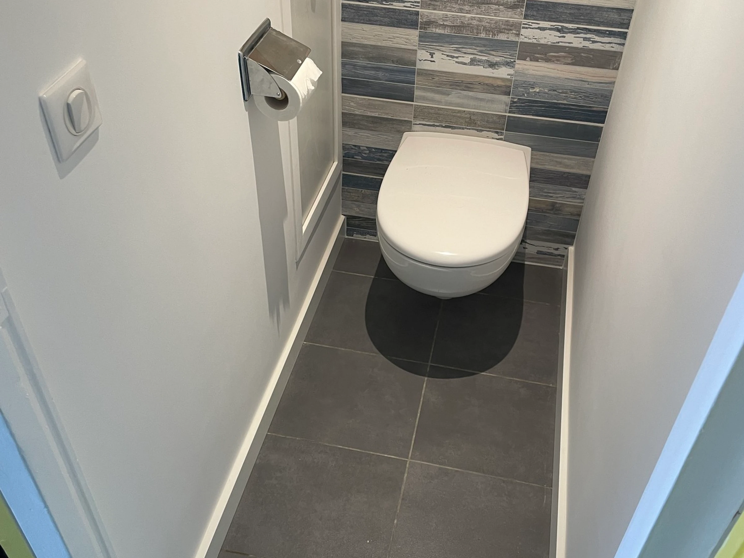 Das Badezimmer hat eine ebenerdige Dusche, das WC ist separat.
