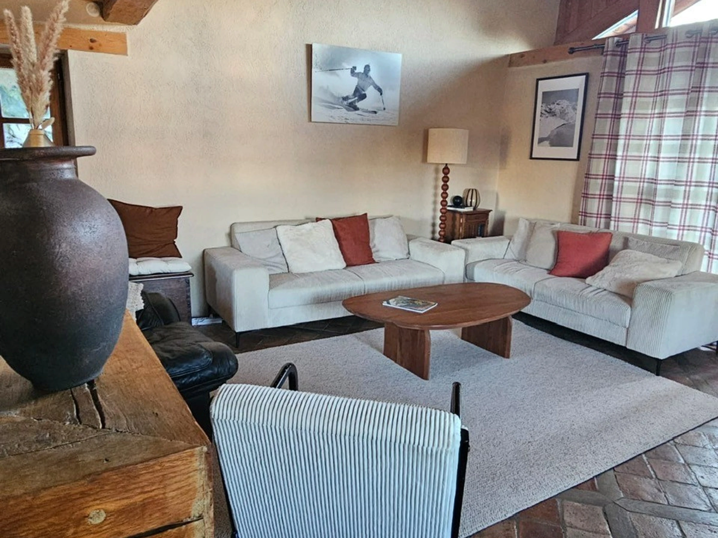 Einzigartiges Chalet (80 m²) für 6 Personen in Charvet, in der Nähe der Pisten und Geschäfte von Arc 1800. Südwestlage mit großer Terrasse und Blick ins Tal.