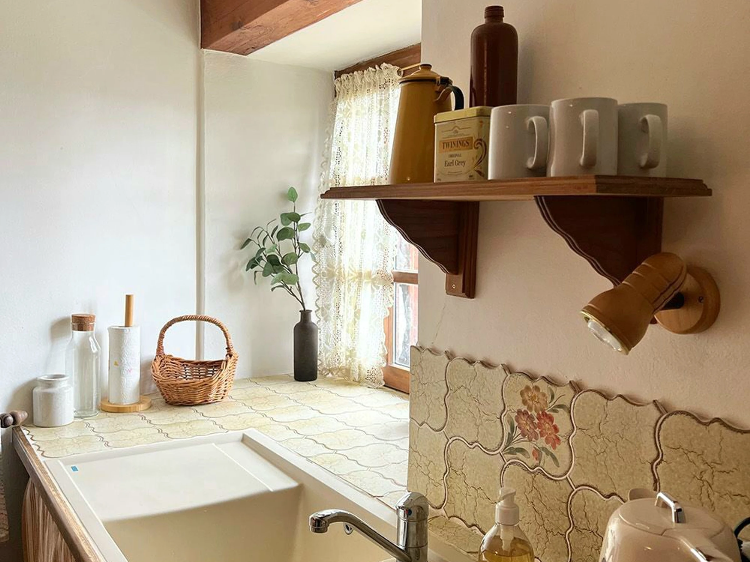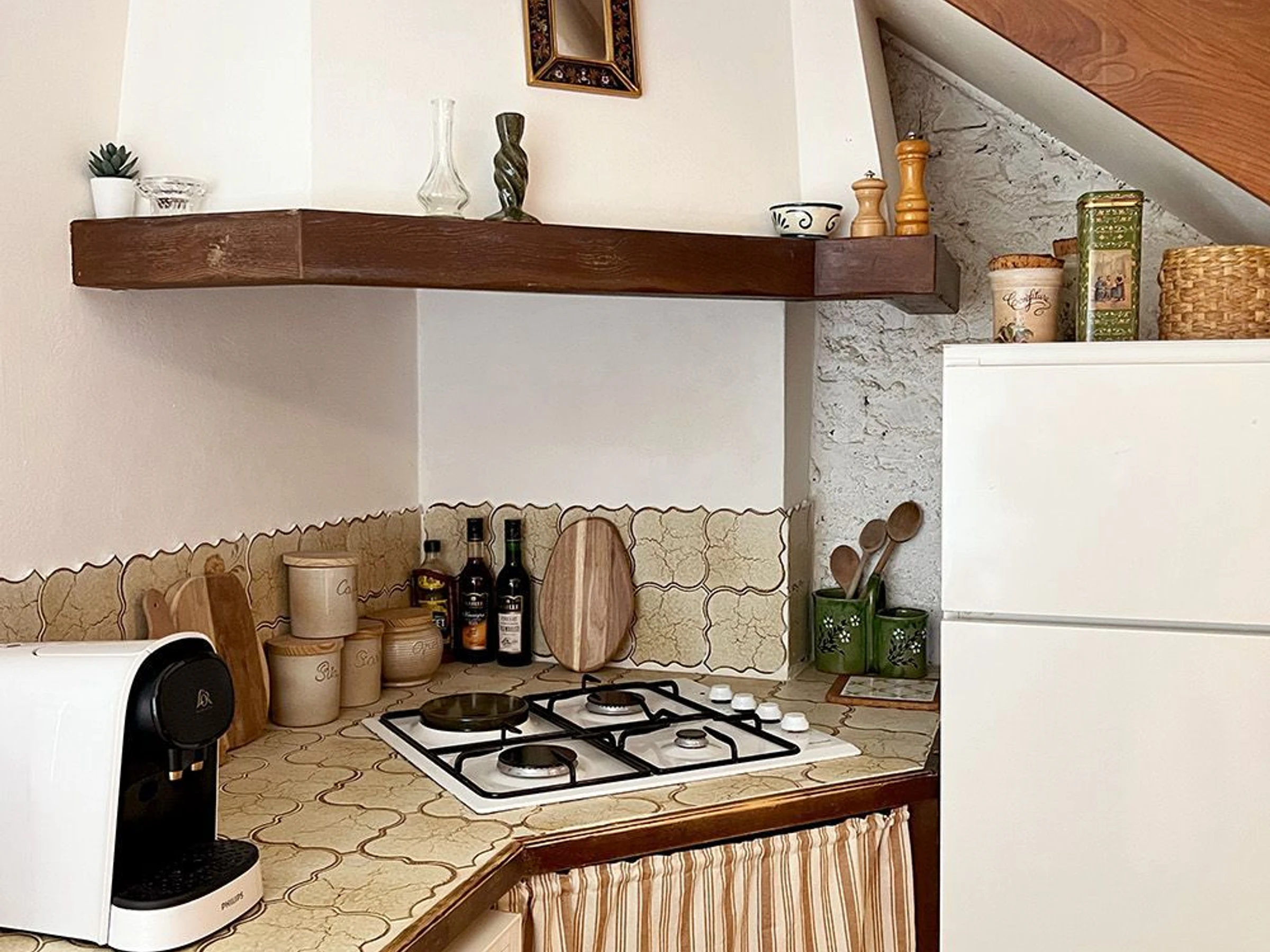 Die Küche ist ausgestattet mit: 3 Gaskochfeldern und 1 Elektrokochfeld, Geschirrspüler, Mikrowellen-Backofen-Kombination, Kühlschrank mit Gefrierfach, Kaffeemaschine, Wasserkocher und Toaster.