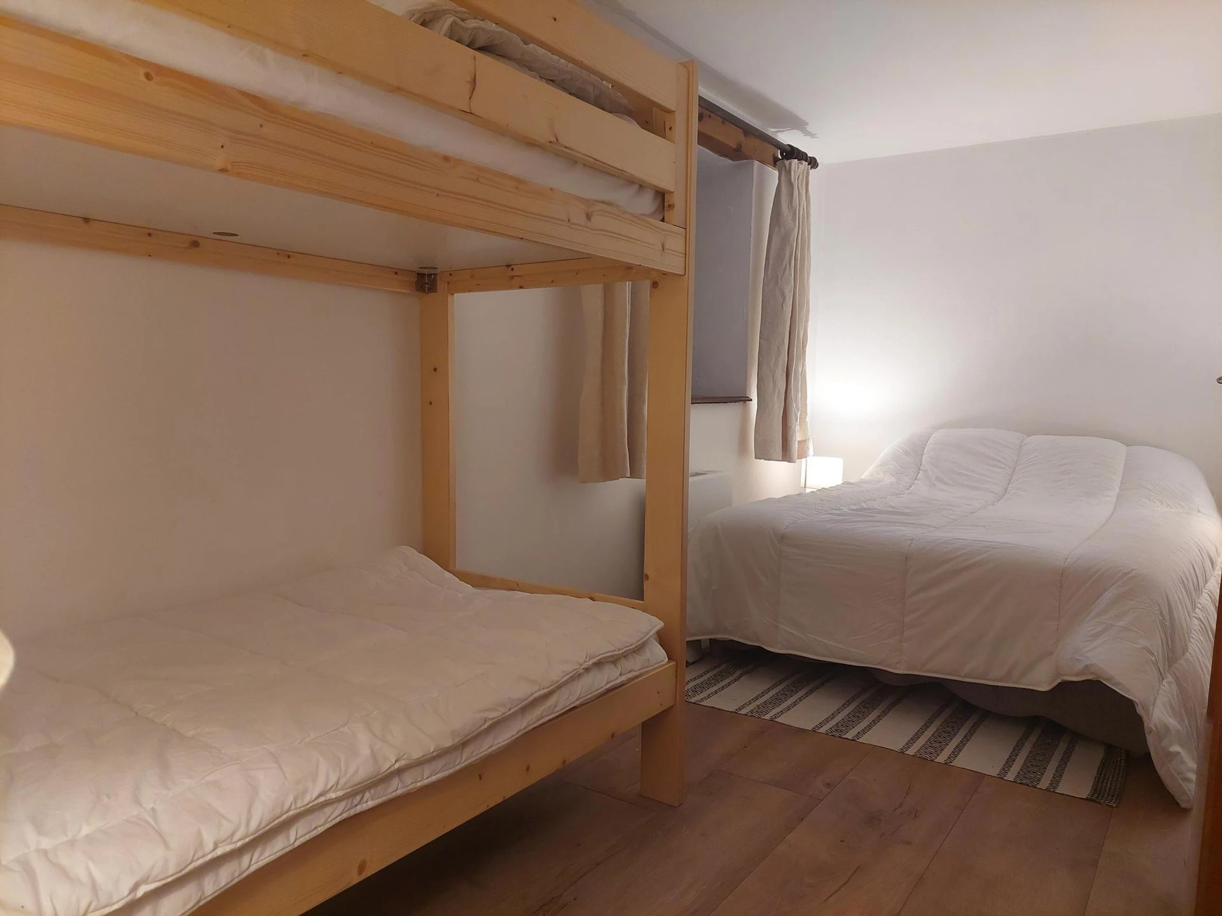 Schlafzimmer 2 mit 1 Doppelbett (140 cm) und 2 Etagenbetten (80 cm)