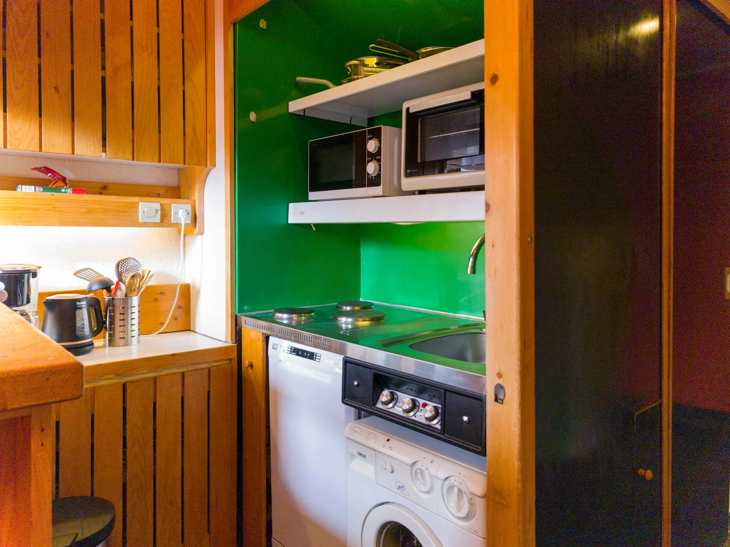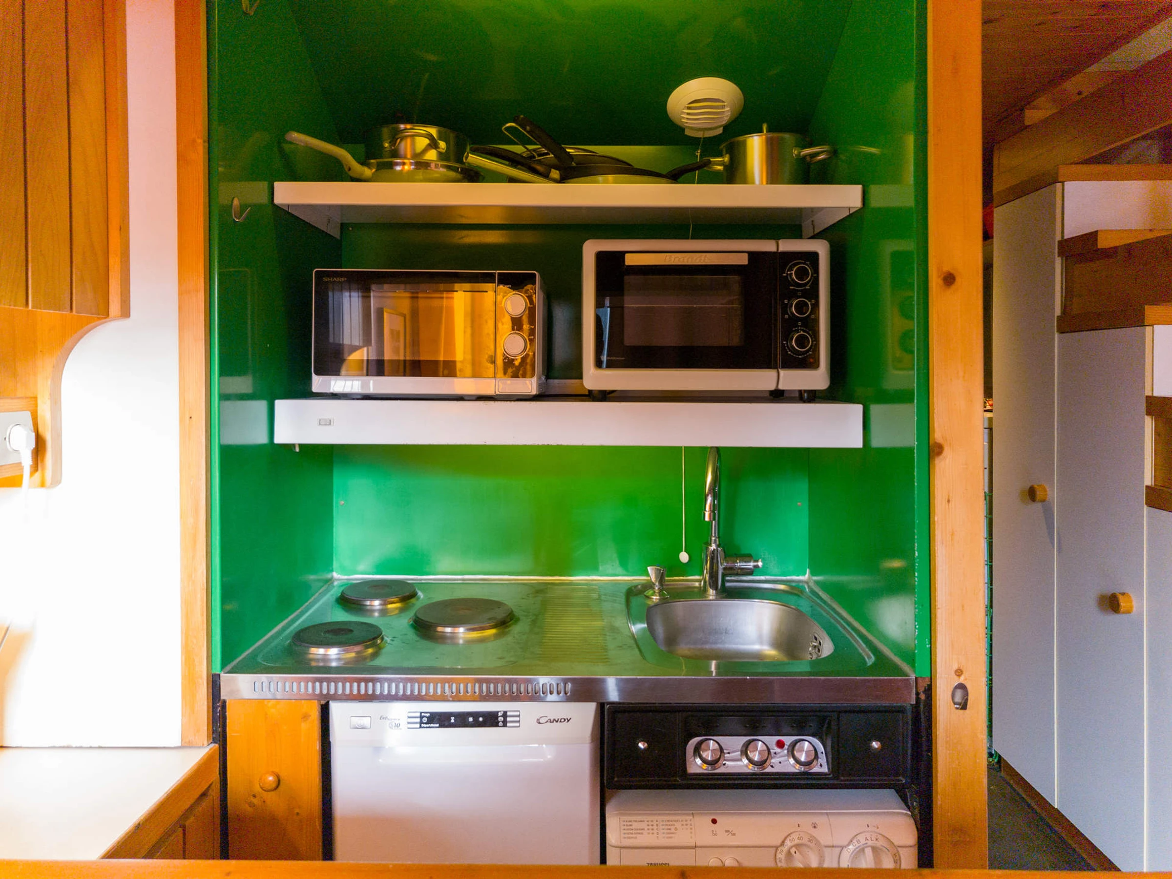 Die 33 m² große Wohnung bietet Platz für bis zu 5 Gäste und befindet sich im 6. Stock der Residenz Aiguille Grive 1 (mit Aufzug).
