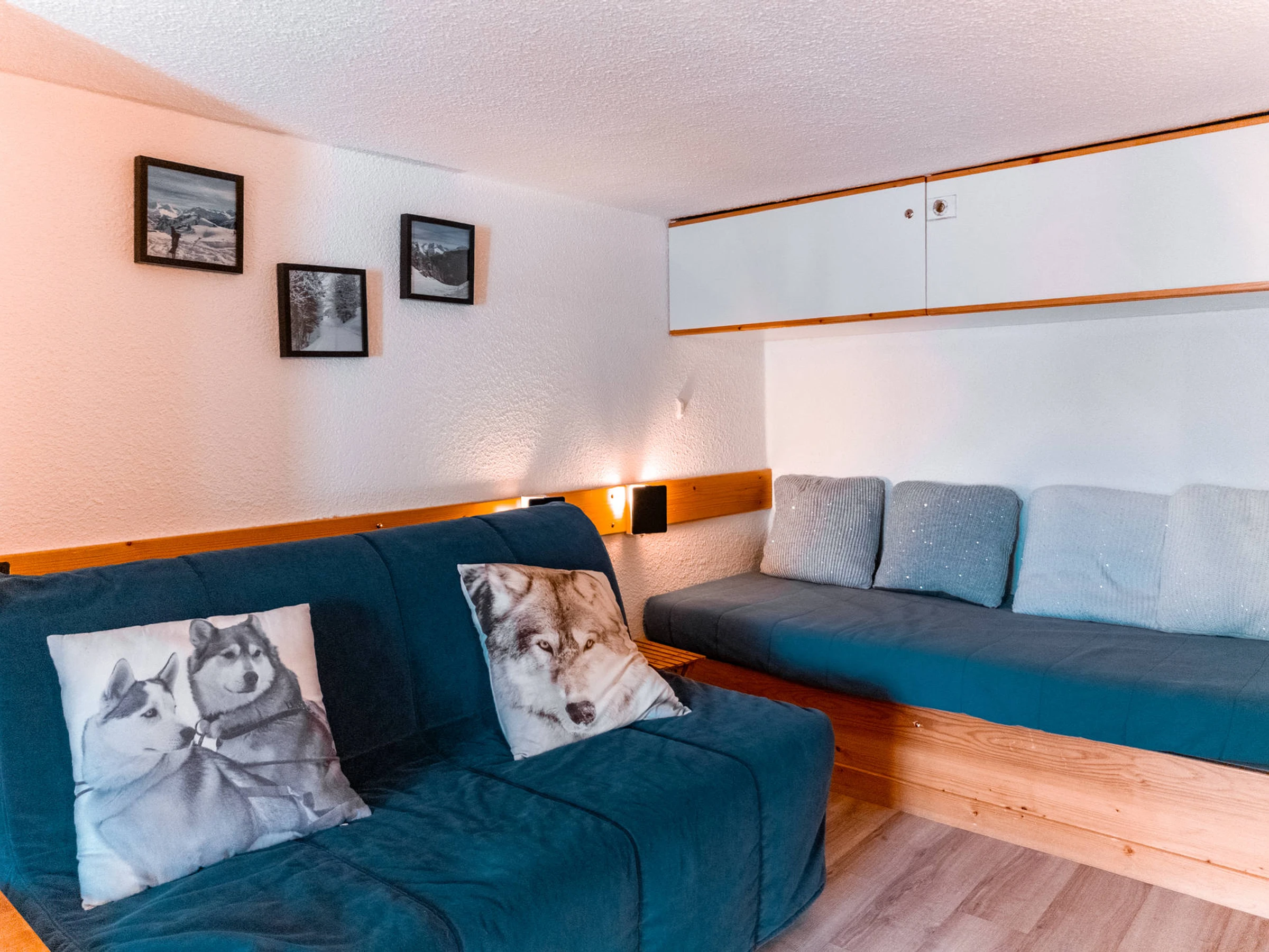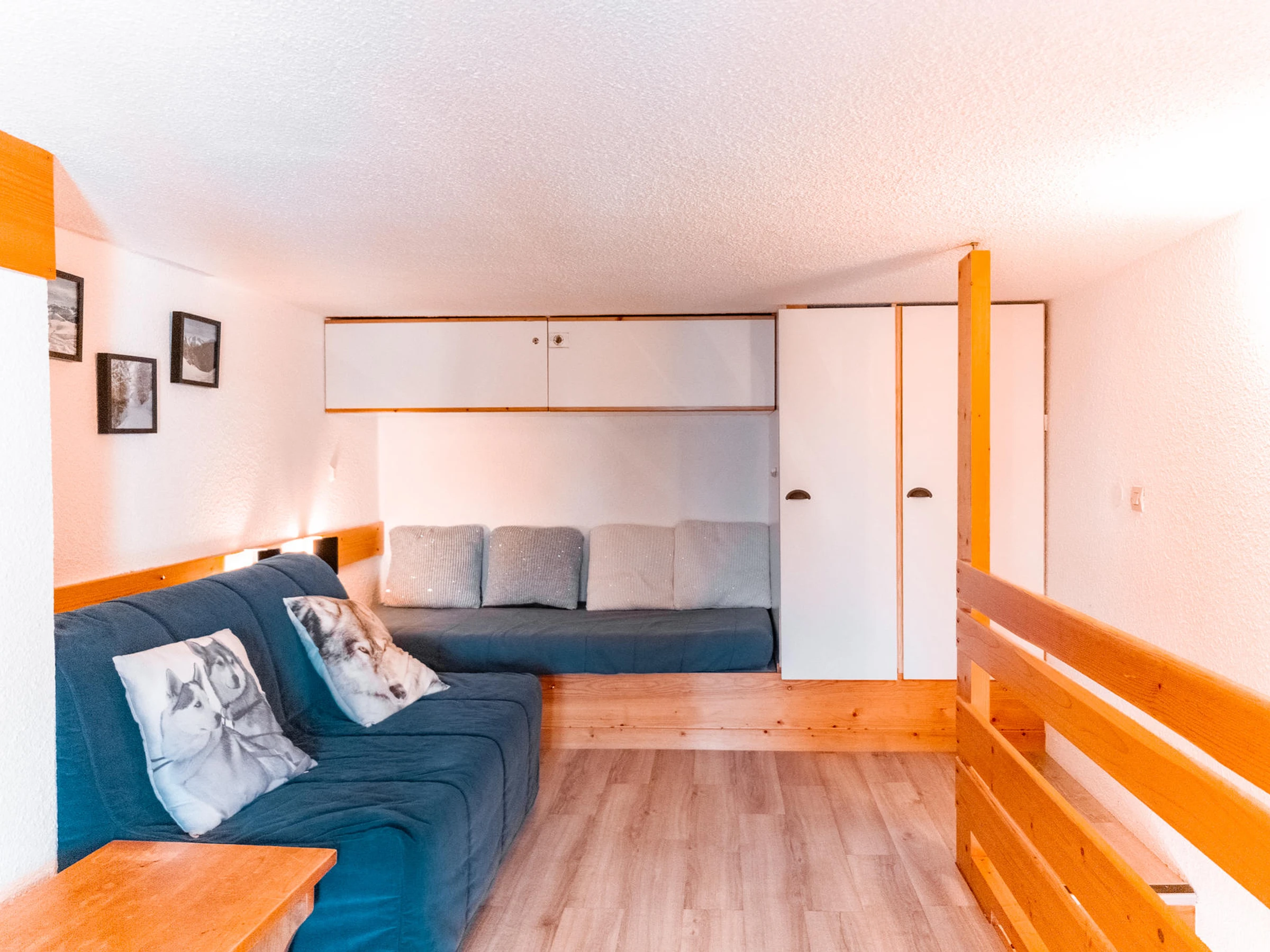 Buchen Sie für Ihren Skiurlaub oder Ihren Sommeraufenthalt in Arc 1800 diese 2-Zimmer-Wohnung mit Galerie und Südbalkon mit Blick auf das Tal und die Berge.