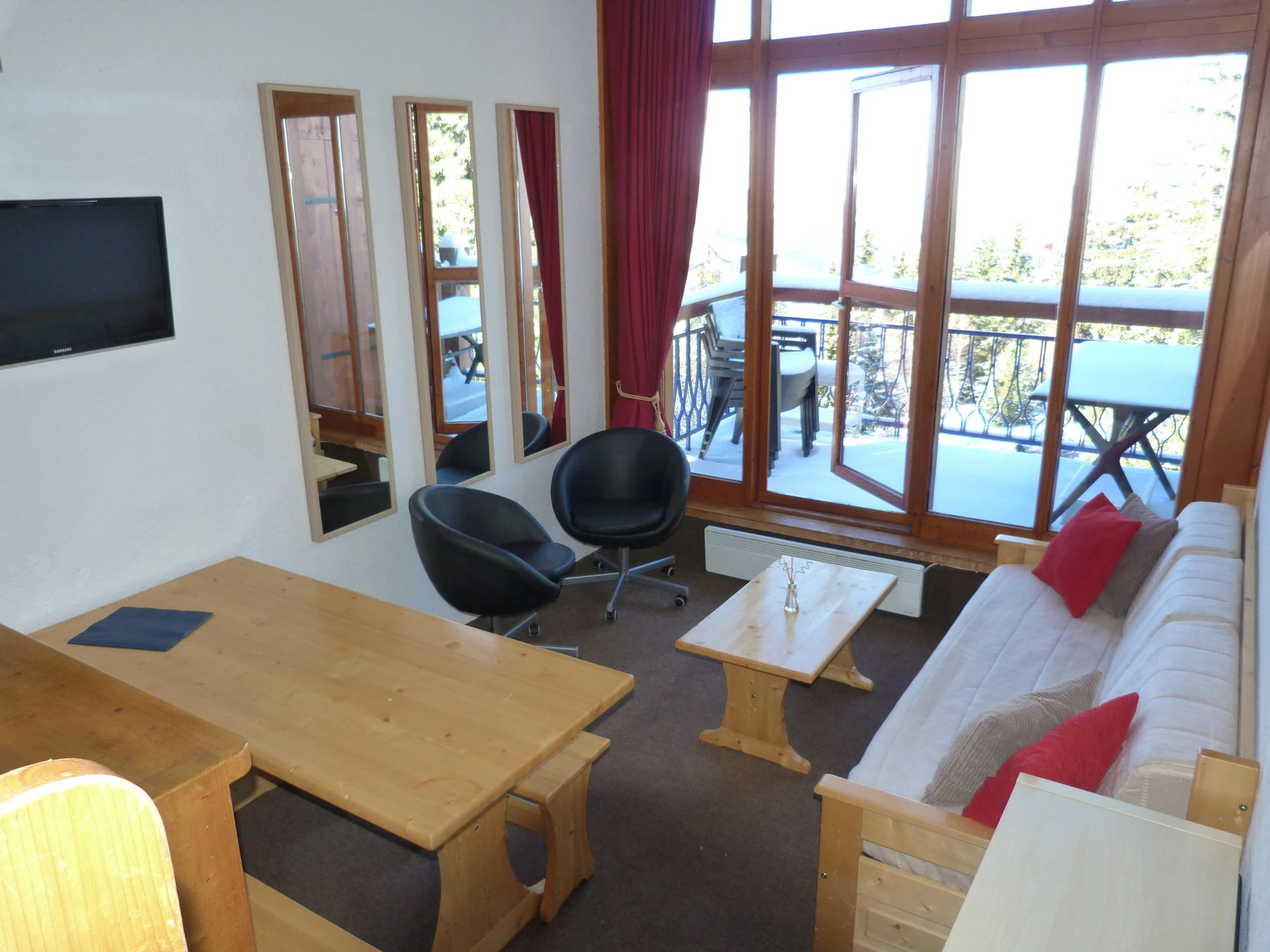 Buchen Sie für Ihren Skiurlaub oder Ihren Sommeraufenthalt in Les Arcs 1800 diese Maisonette-Wohnung mit 3 Zimmern und Nordwestbalkon.