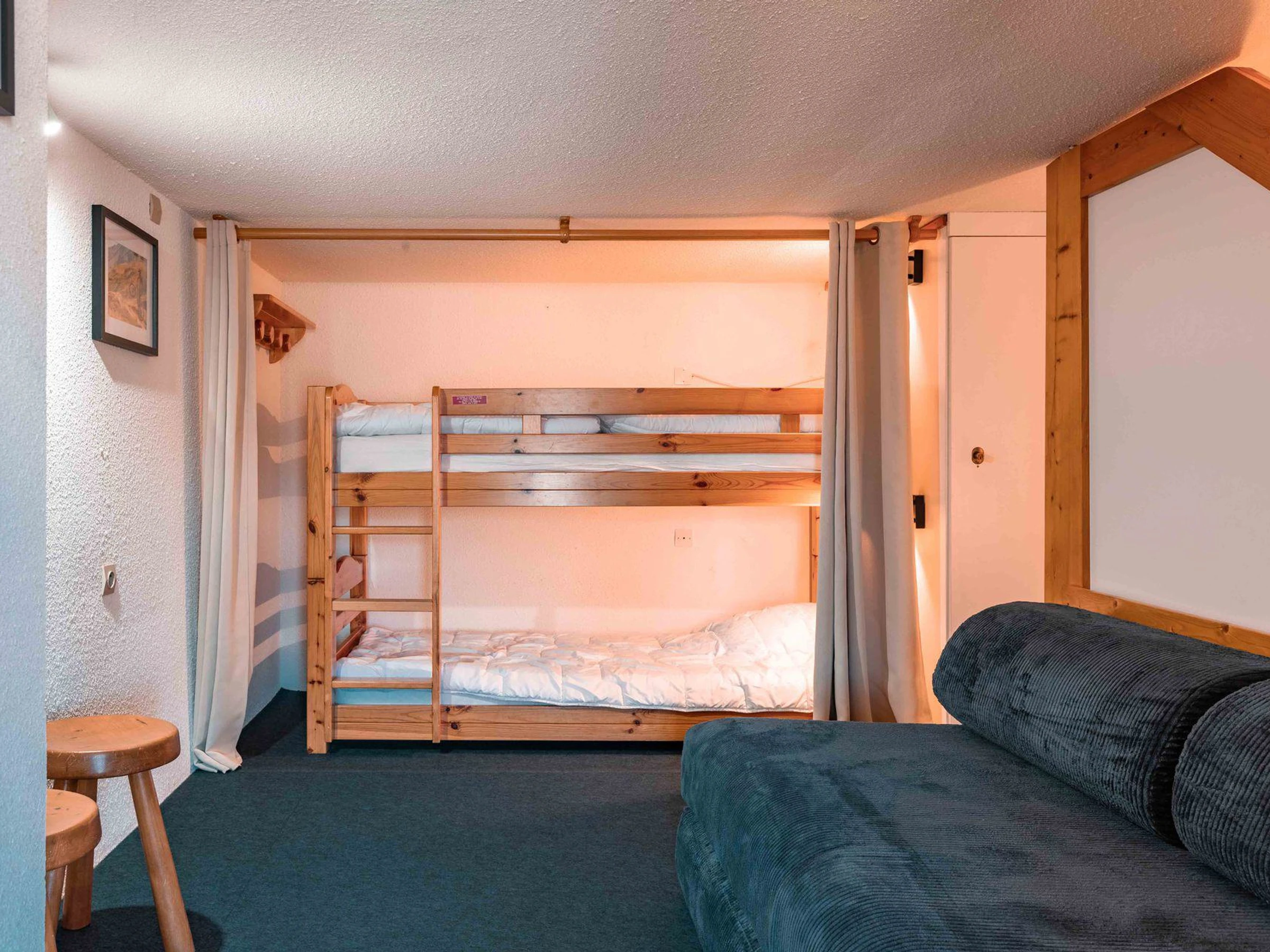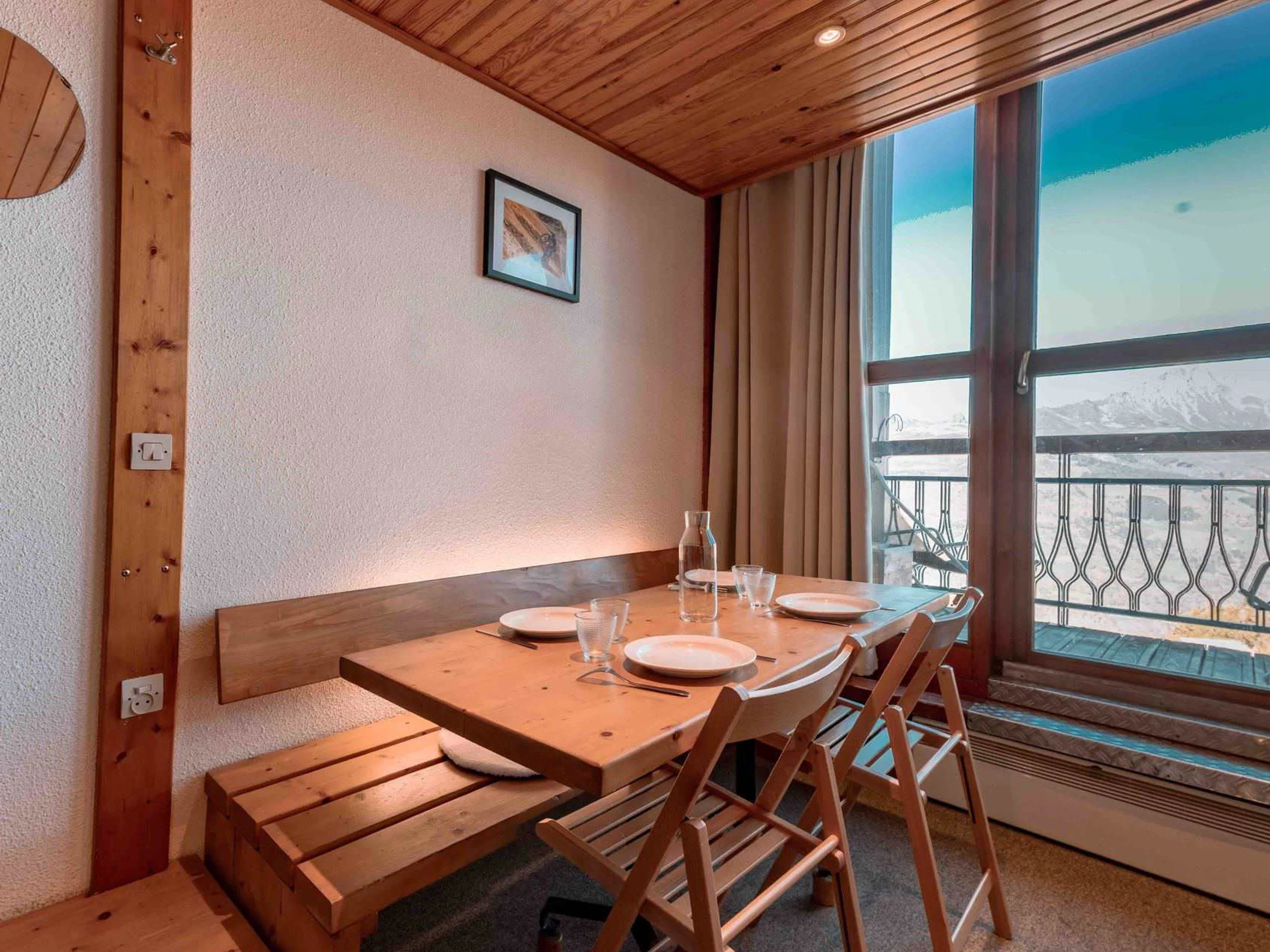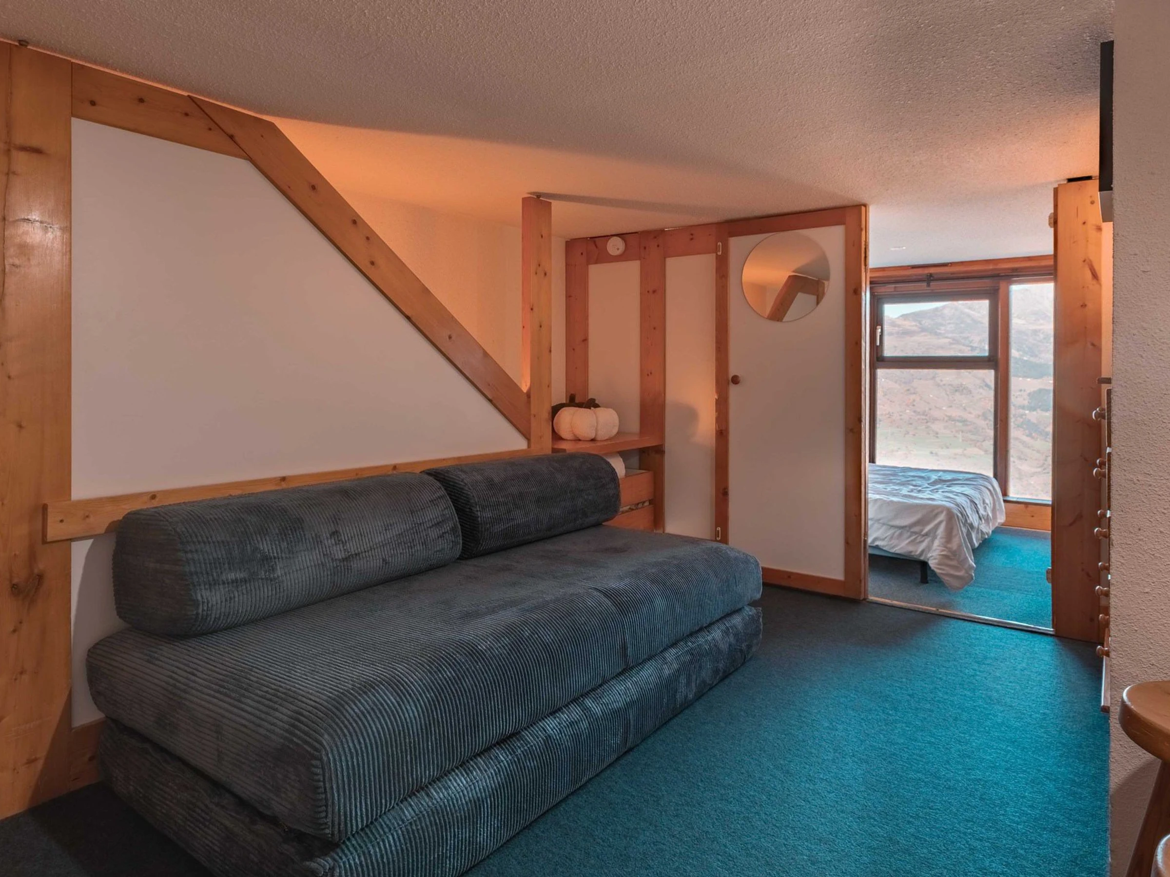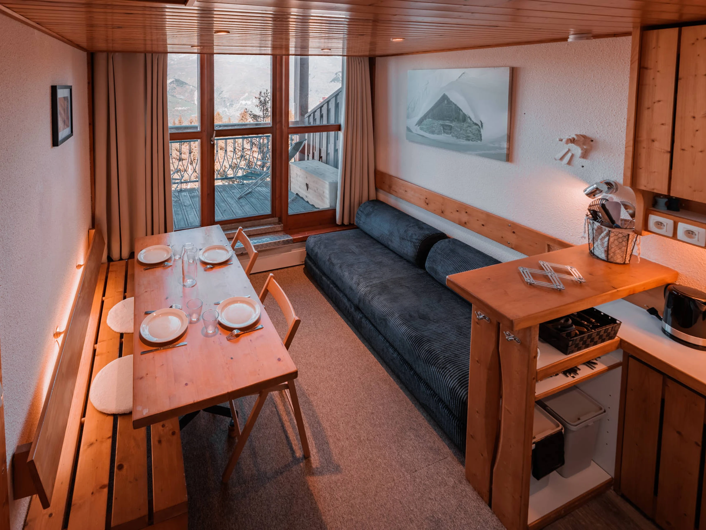 Buchen Sie für Ihren Ski- oder Sommerurlaub in Les Arcs 1800 diese komplett renovierte 2-Zimmer-Maisonette-Wohnung mit Nordwestbalkon und Talblick.
