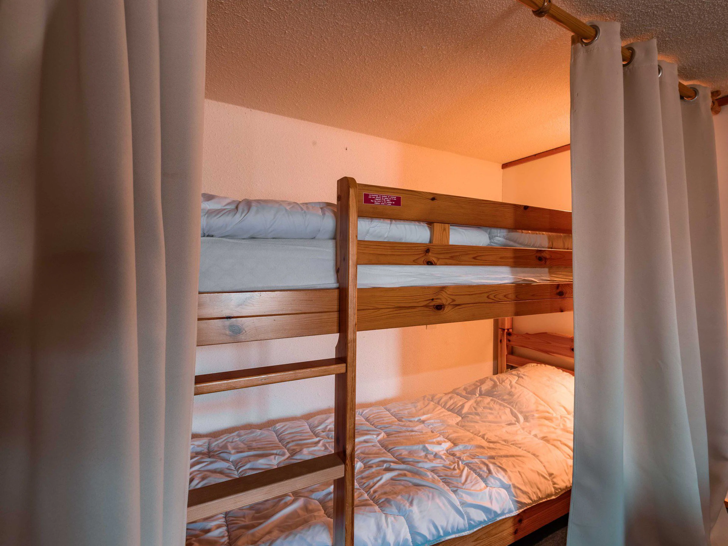 Im Obergeschoss befindet sich ein separates Schlafzimmer mit einem 140 cm breiten Doppelbett. Außerdem gibt es ein Etagenbett und ein Einzelbett.