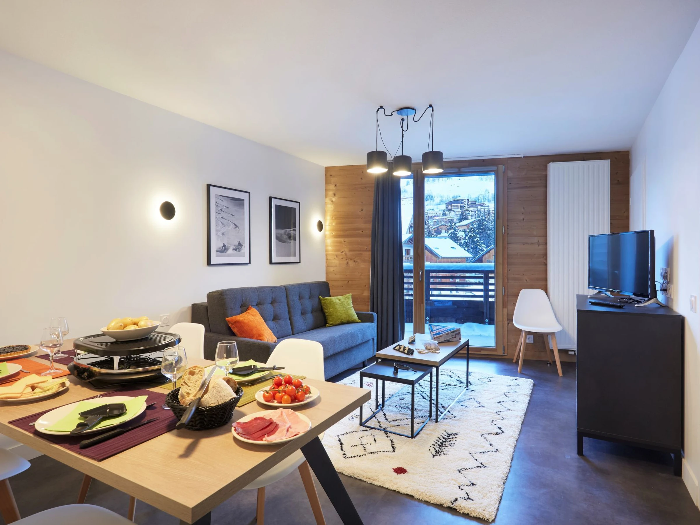 "Le Hameau", 4-Zimmer-Wohnung 75 m2. Wohn-/Schlafzimmer mit 1 Doppeldiwanbett (140 cm, Länge 190 cm), Esstisch und TV (Flachbildschirm). Ausgang zum Balkon, zur Terrasse. 2 Zimmer, jedes Zimmer mit 1 franz. Bett (140 cm, Länge 190 cm). 1 Zimmer mit 2 Betten (90 cm, Länge 190 cm). Schlafnische mit 1 x 2 Etagenbetten (80 cm, Länge 190 cm). Kochnische (Geschirrspüler, 4 Glaskeramikherd Platten, Toaster, Wasserkocher, Mikrowelle, elektrische Kaffeemaschine). Bad, Dusche, 2 sep. WC's. E-Heizung. Kleiner Balkon oder kleine Terrasse. Balkonmöbel. Zur Verfügung: Bügeleisen, Kinderhochstuhl, Babybett. Internet (Wireless LAN, gratis). Bitte beachten: Nichtraucher-Unterkunft. Rauchmelder. Beim Mietobjekt handelt es sich um ein Typenhaus bzw. Um eine Typenwohnung.