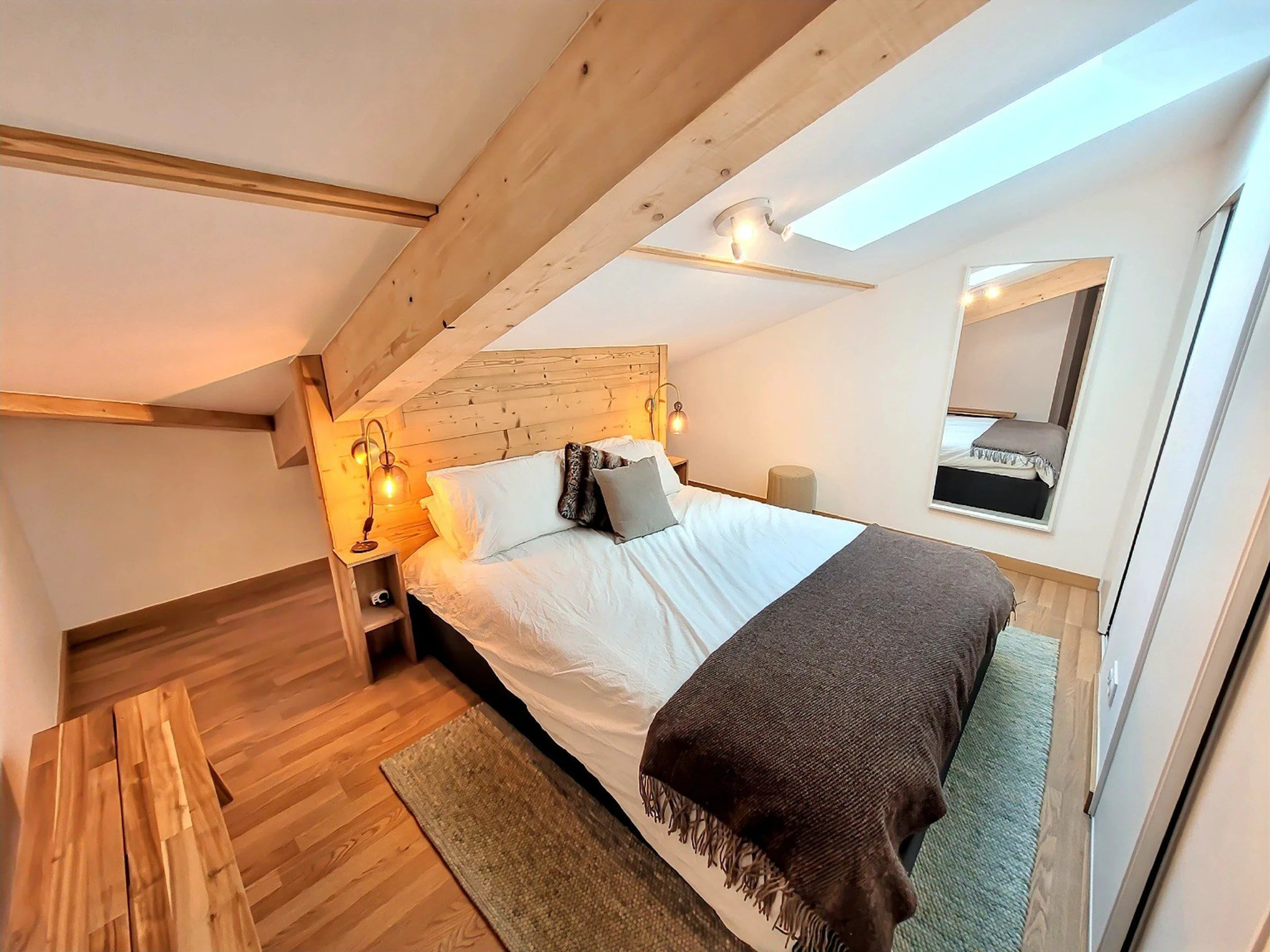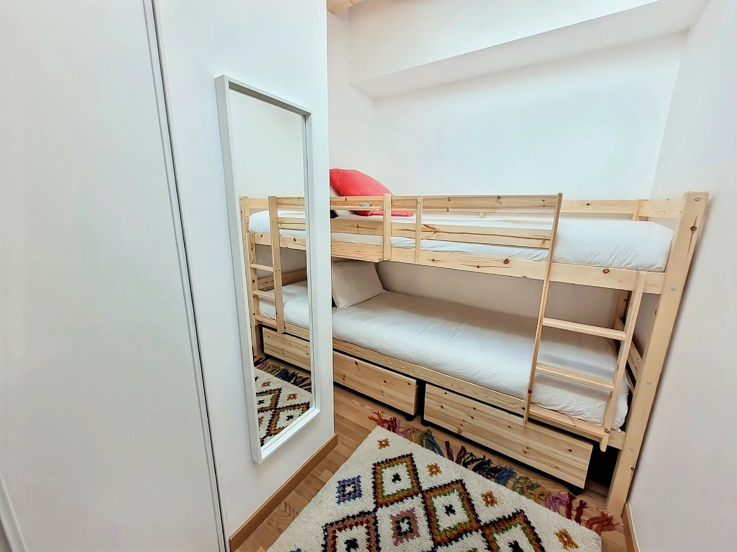 - Etagenbettzimmer mit zwei Etagenbetten (90 x 200 cm) und einem Schrank (Dachfenster)