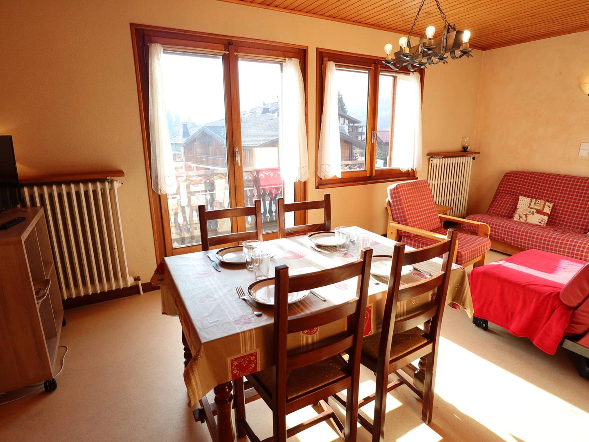 Vermietung Les Gets: Helle, komfortable Zweizimmerwohnung (34 m²) für bis zu 4 Personen im zweiten Stock der Residenz „LES BRUYERES“, Westlage. 200 m von den nächsten Geschäften, 450 m von den Pisten, 450 m von der Chavannes-Seilbahn und 600 m von der ESF-Skischule entfernt. Gemeinsamer Waschraum mit Waschmaschine. Gemeinsamer Skiraum. Privater Außenparkplatz für 1 Auto.